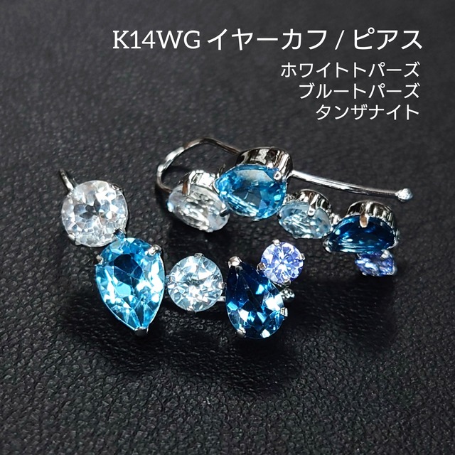 K14WG イヤーカフ/ピアス White Topaz Blue Topaz Tanzanite