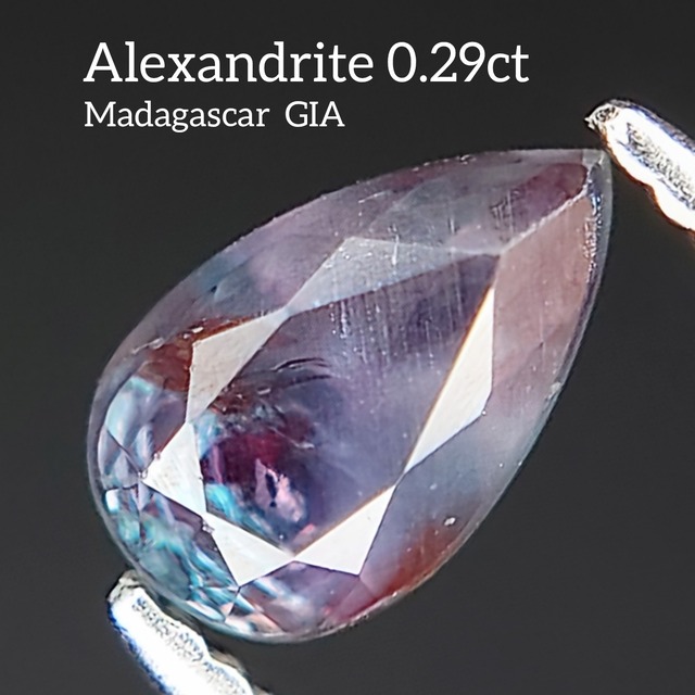 神秘的なカラーチェンジが魅力の、マダガスカル産アレキサンドライト☆☆☆ 光源によって表情が劇的に変化し、グリーン味を帯びたブルーからパープルへと移ろう、美しい色変わりを楽しめる一石です。 カットは上品な印象を与えるペアシェイプ。 0.29ctという扱いやすいサイズ感ながら、しっかりと存在感があり、リングやペンダントなどジュエリーへの仕立てもおすすめです。 さらにこちらはGIAのオリジンレポート付き。 希少石の中でも人気の高いアレキサンドライトを、安心感とともにお迎えいただけます。 宝石名:アレキサンドライト (天然クリソベリル) 重量:0.29ct 形状:ペアシェイプ 産地:マダガスカル(GIA記載) カラー:Greenish Blue changing to Purple 透明度:Transparent カット:Brilliant Cut / Modified Brilliant Cut 付属:GIA Gemological Report(Origin Report)