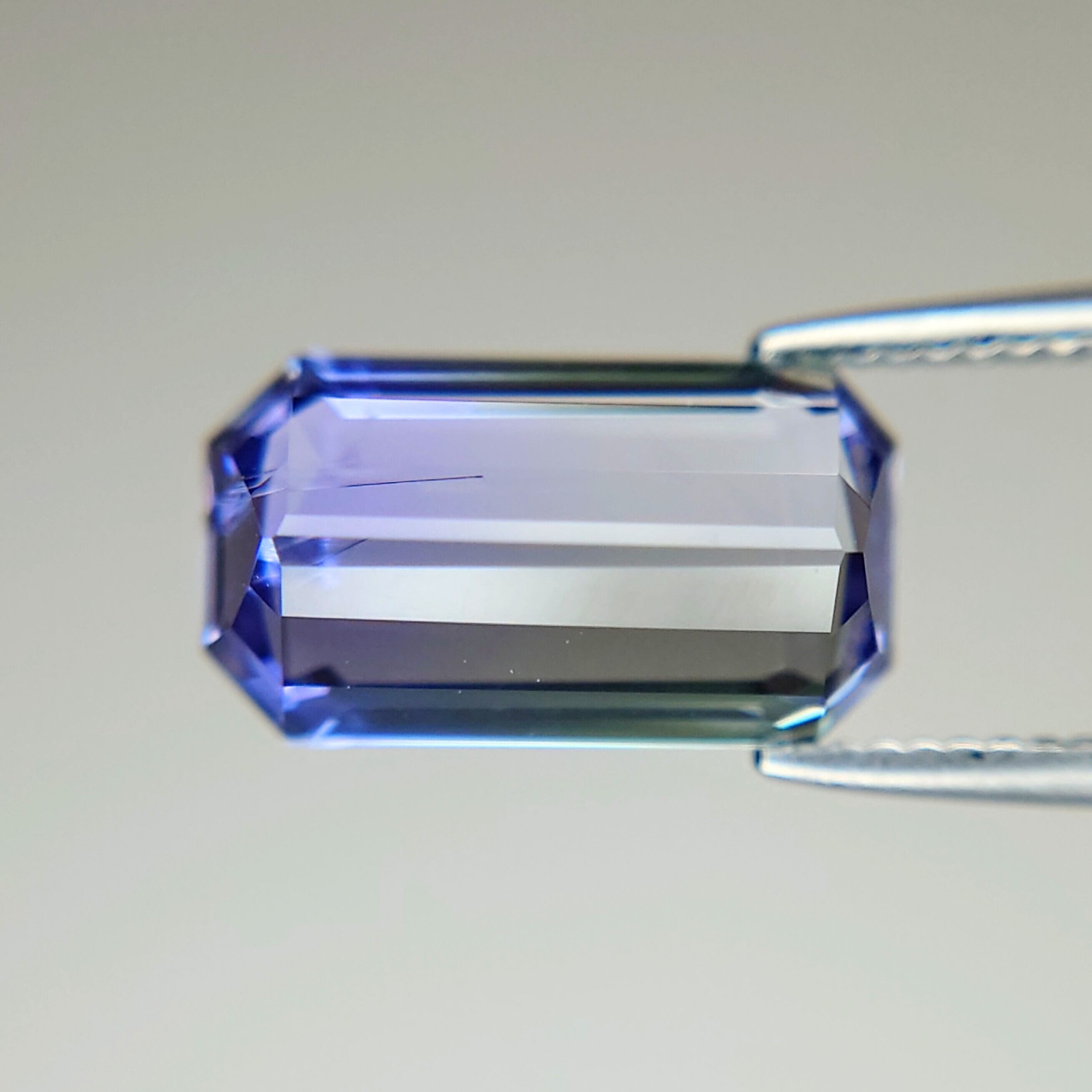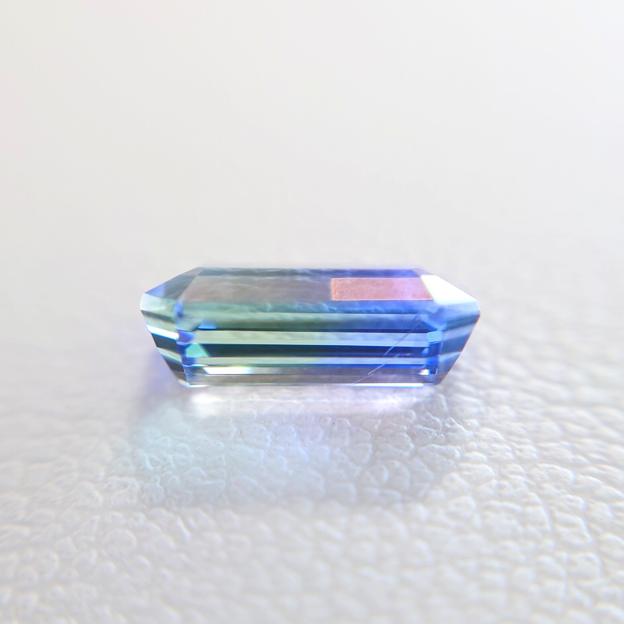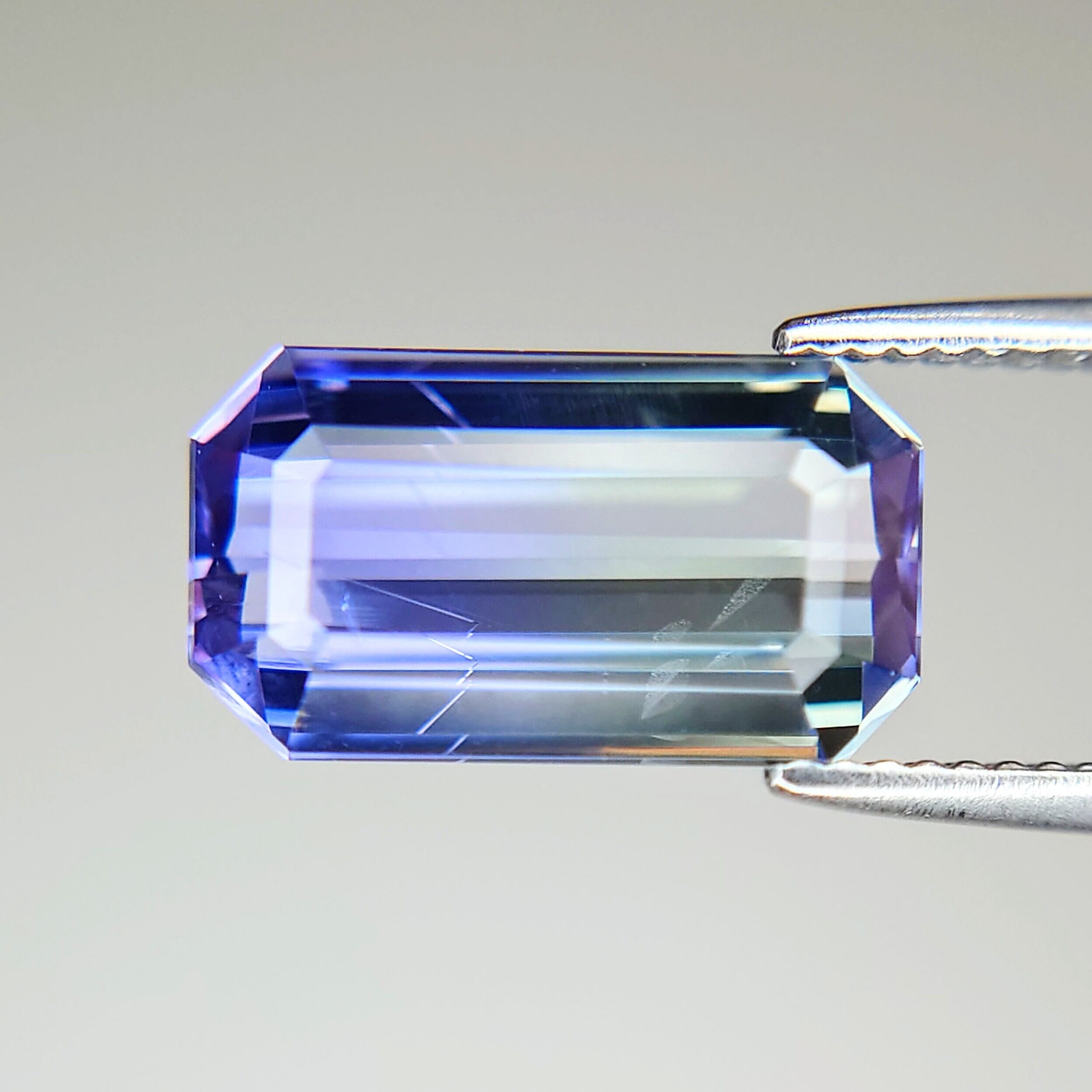 カットはエメラルドカットで、バイカラーがよく確認できるシェイプで輝りも美しいカットです♪