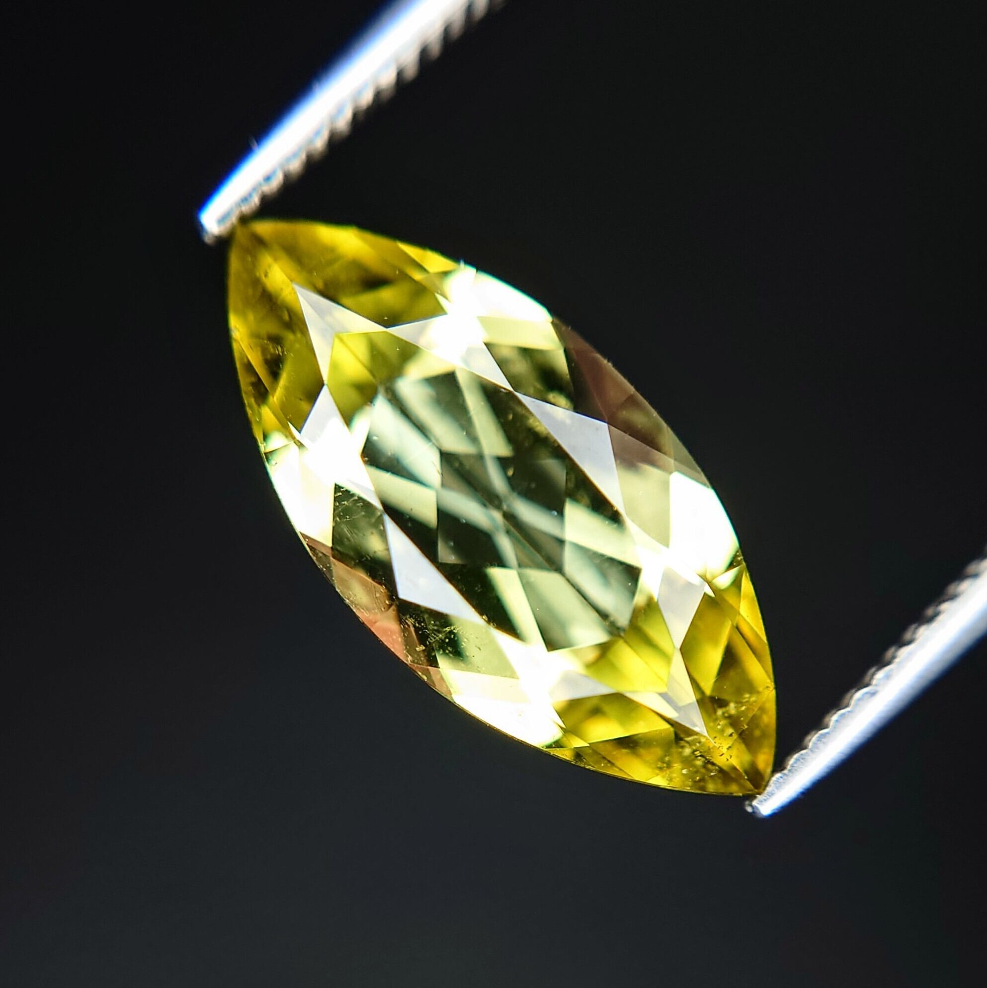 マーキース モディファイド ブリリアント カットが施されており、美しいイエローの輝きを放ちます♪♪♪