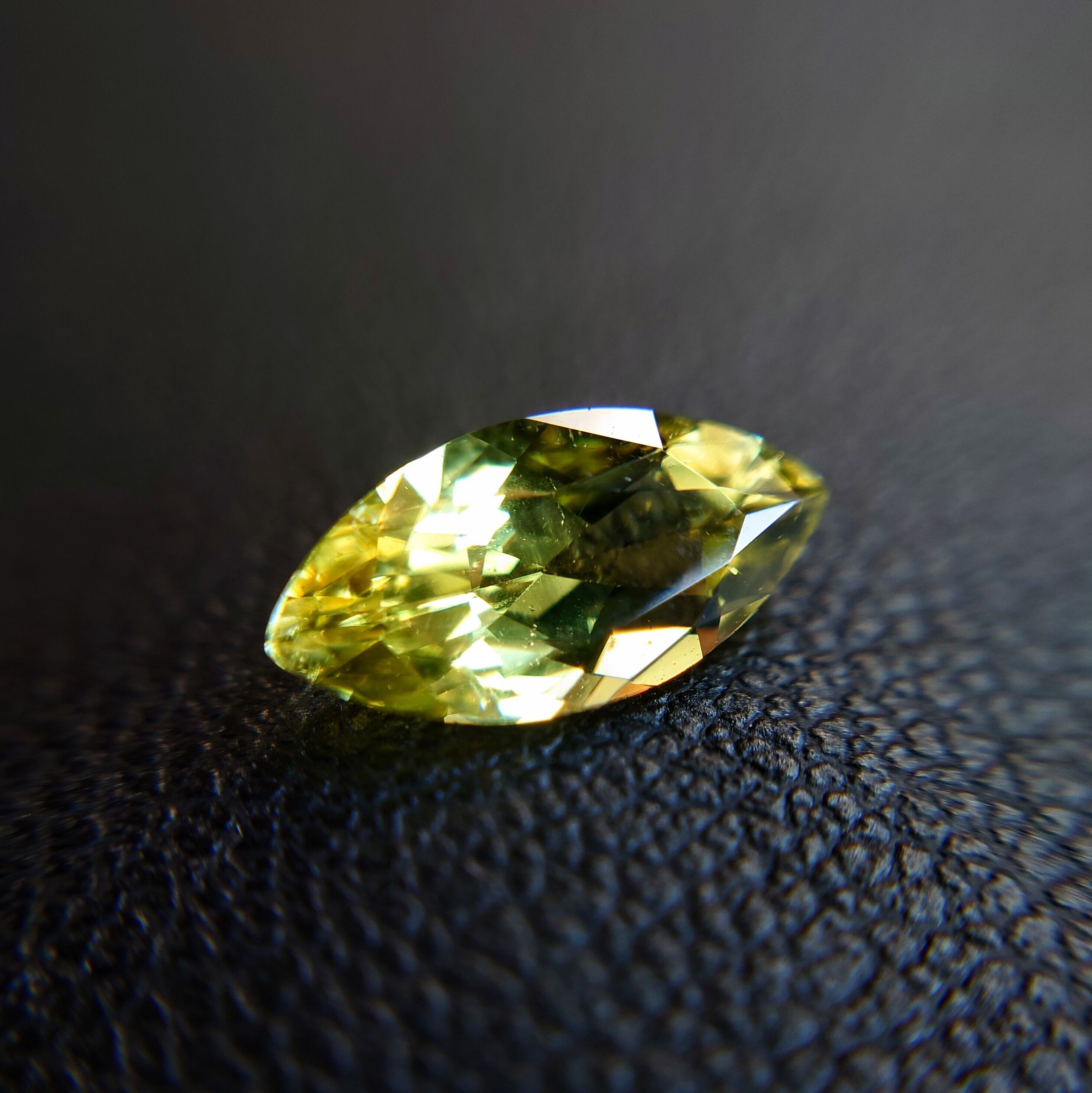 マーキース モディファイド ブリリアント カットが施されており、美しいイエローの輝きを放ちます♪♪♪