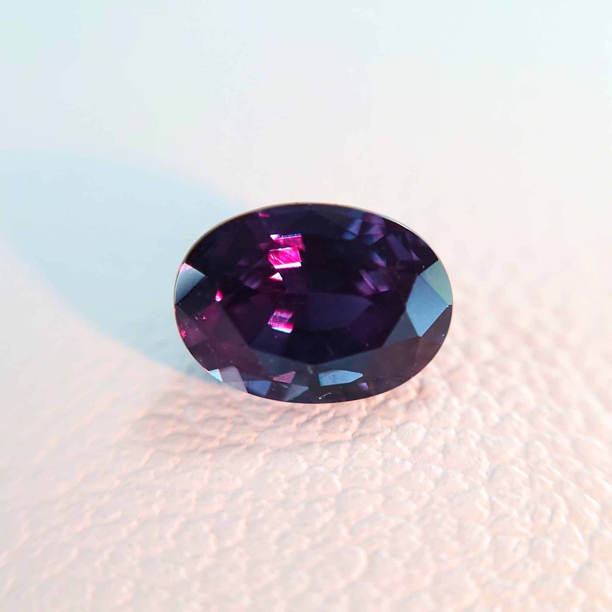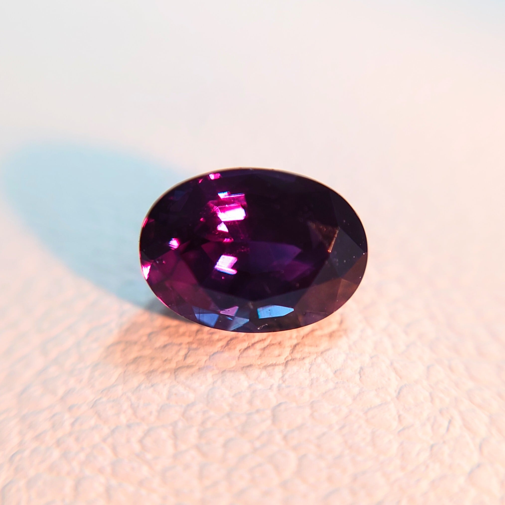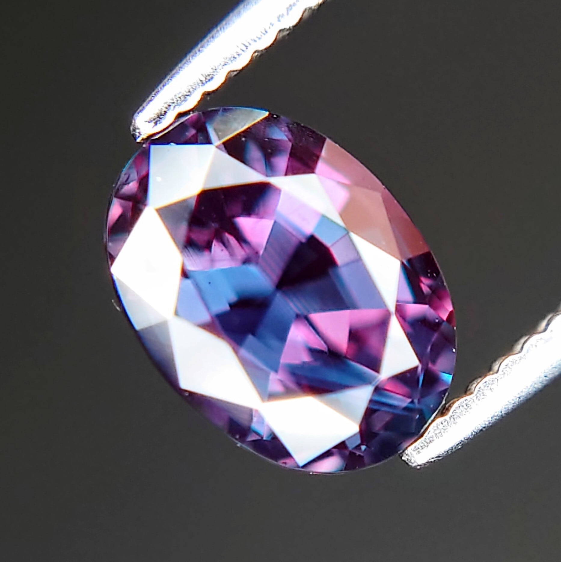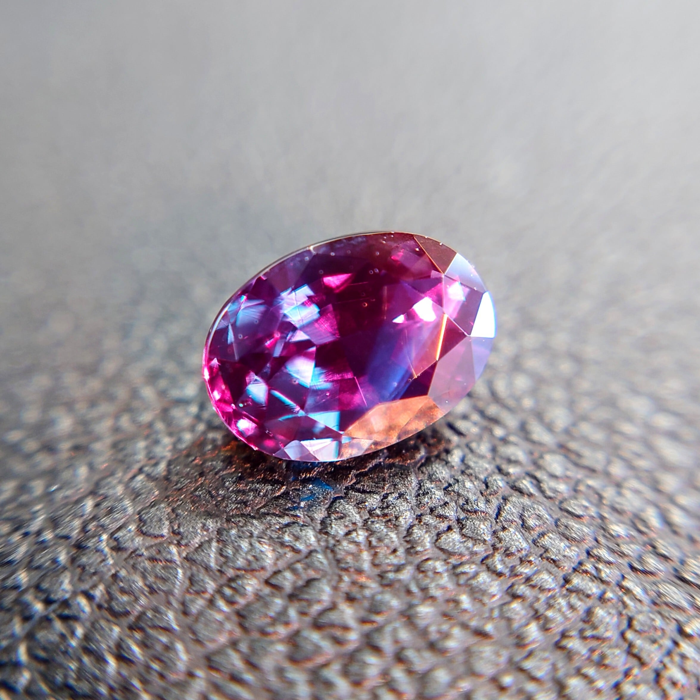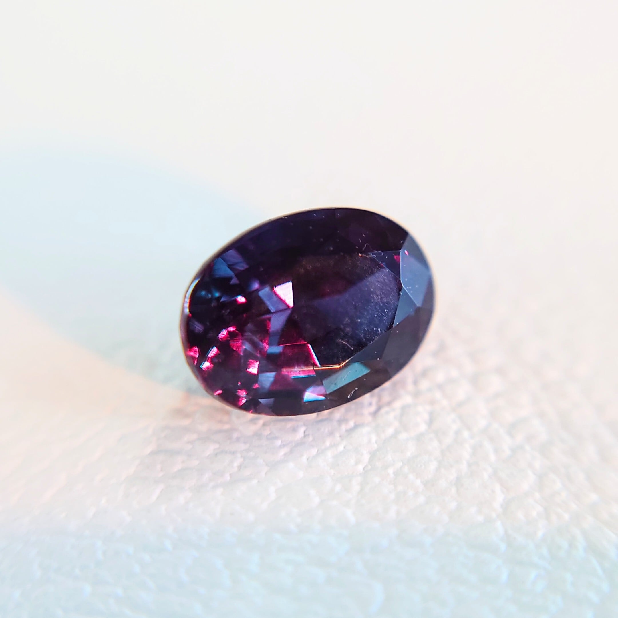 このルースは、GIAレポートにて「グリーニッシュブルーからパープルへのカラーチェンジ」が記載されており、鮮やかな色変化をお楽しみいただけます。