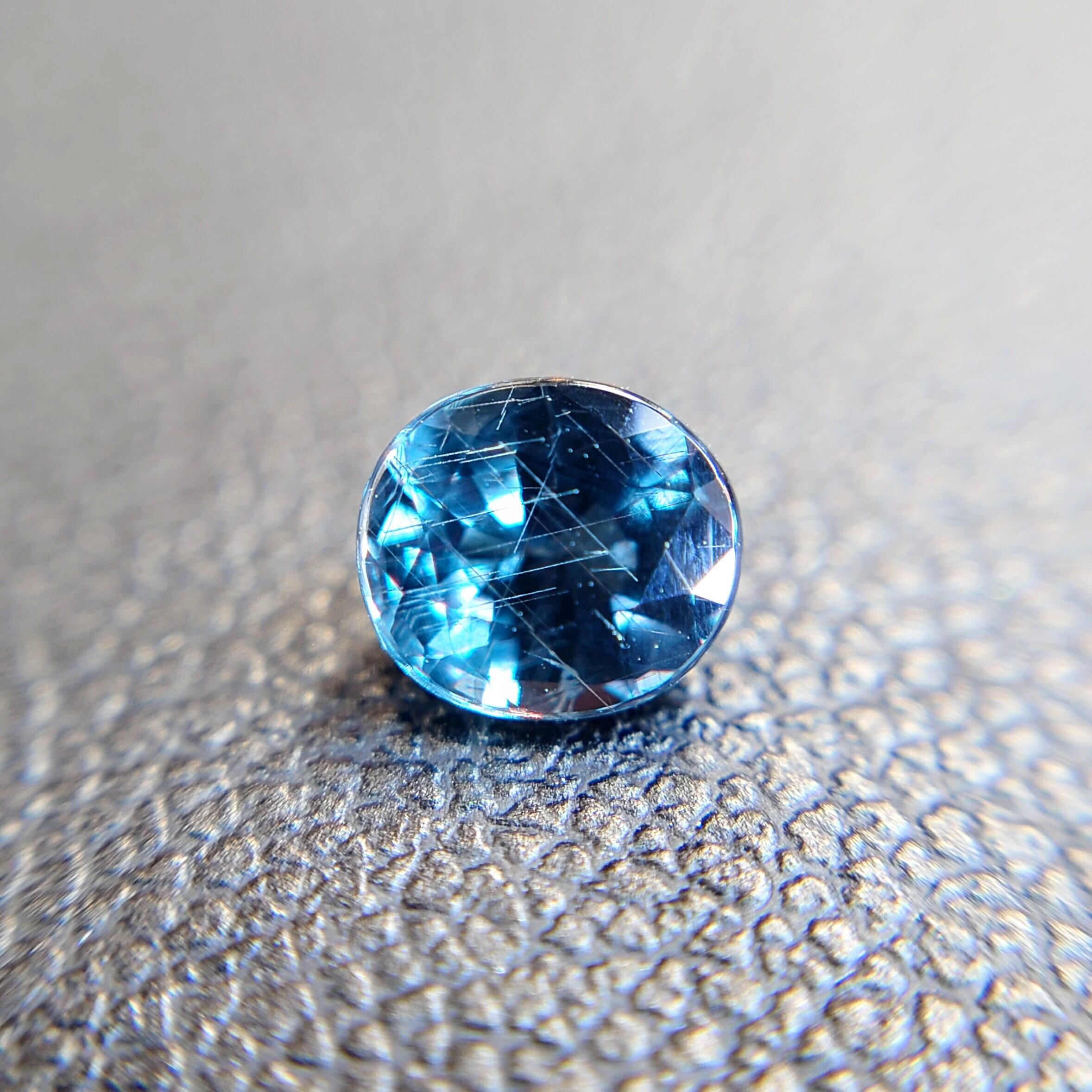 本ルースにはベキリーブルーガーネット特有の針状インクルージョン(ルチルニードル)が内包されており、光の反射や内部のきらめきに独特の個性と美しさを与えています。