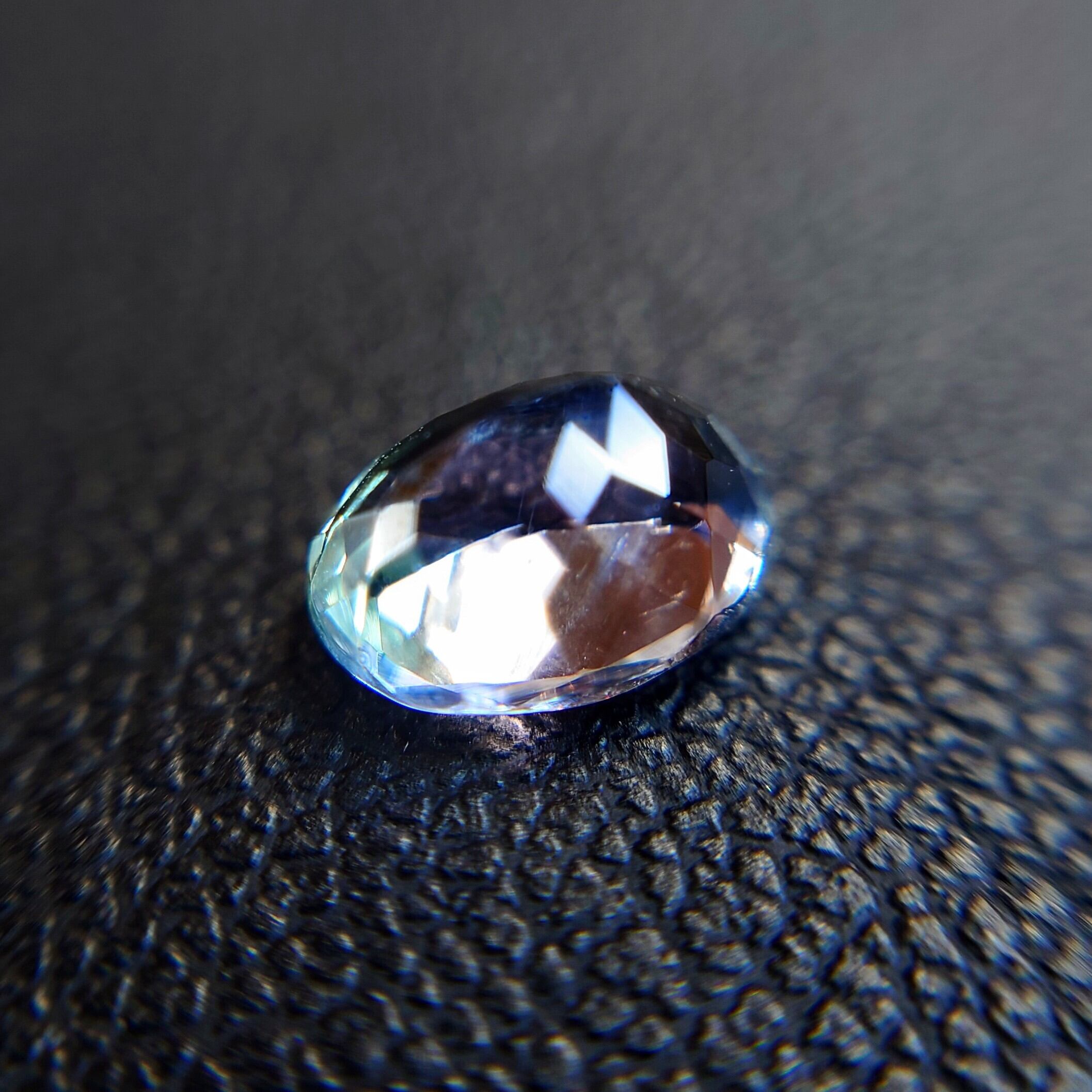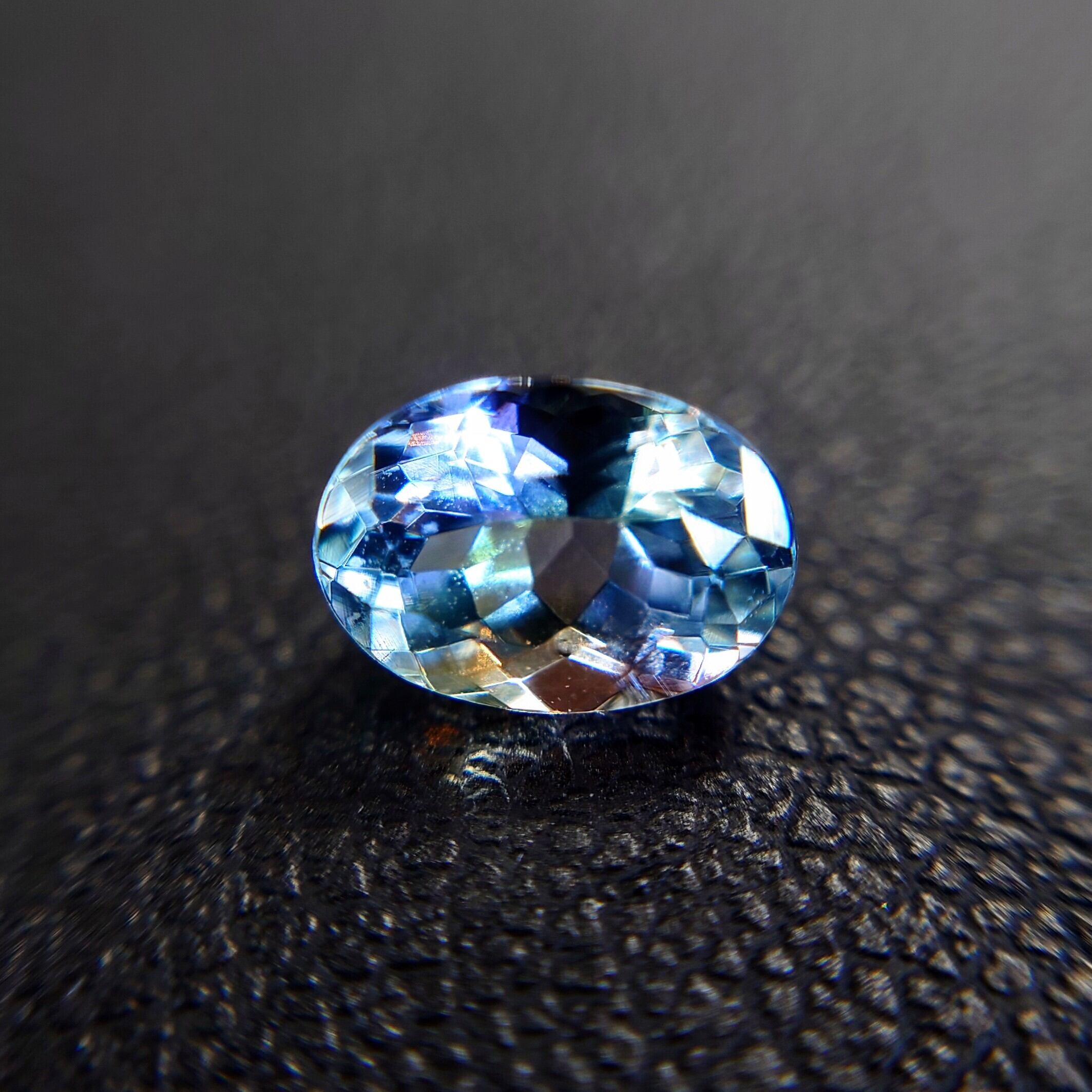 角度によって色調が変化する多色性を持つゾイサイトは、他の宝石にはない独特の美しさがあります。ライトブルーをベースに、淡くパープルが差し込む絶妙な色合いが魅力。1カラットを超えるサイズで、リングやペンダントへの加工にも最適です。