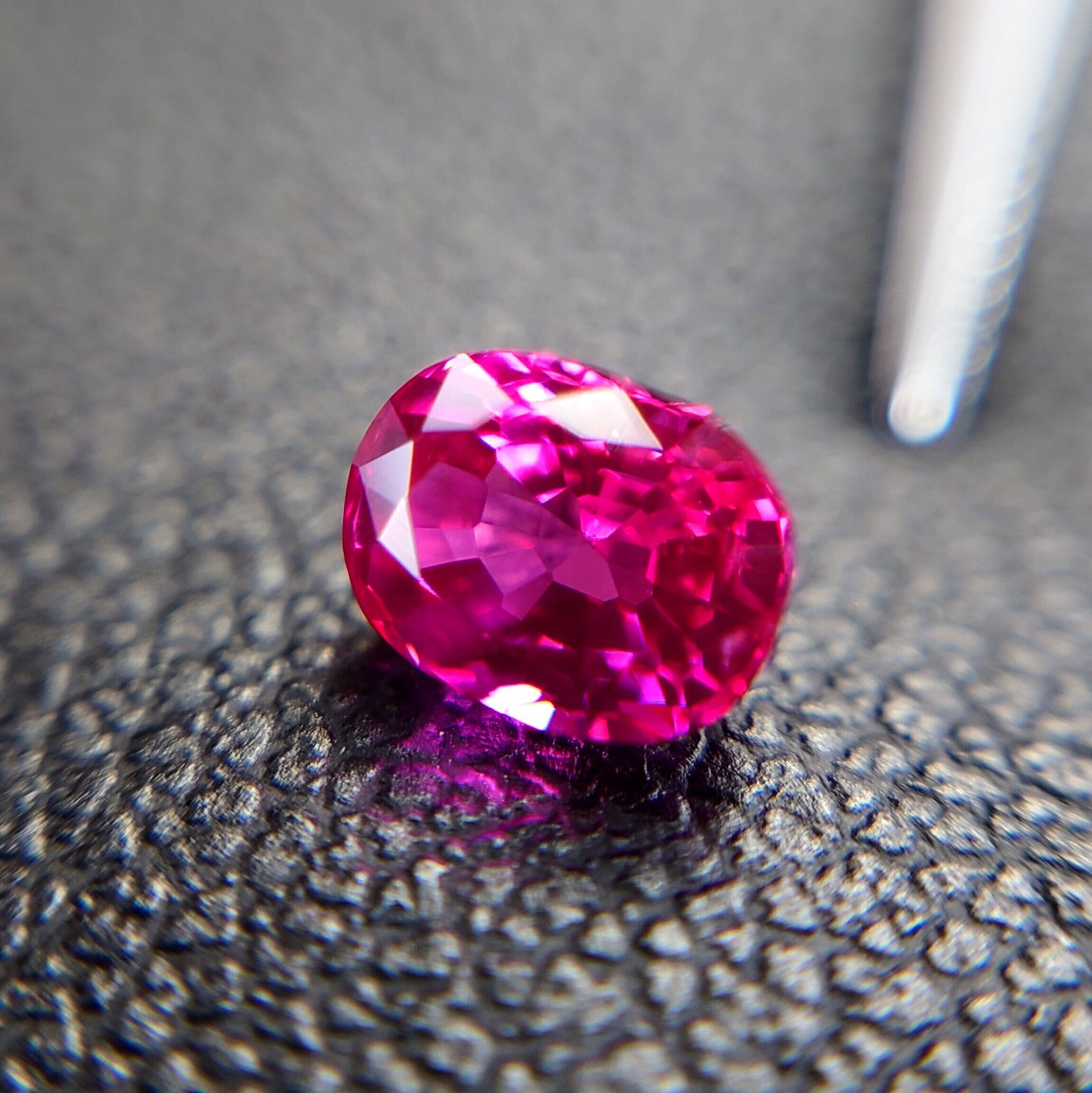 オーバルカットによって引き出された奥深い輝きと、ルビー本来の強い赤色は、まさに“ピジョンブラッド”の名にふさわしい逸品。指輪やペンダントなど、特別なジュエリーへの加工にも最適です。