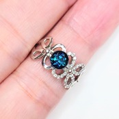 ラウンド・モディファイド・ブリリアントカットが生み出す繊細な煌めきは、光を捉えるたびに多彩な青の表情を映し出し、見る者を魅了します。