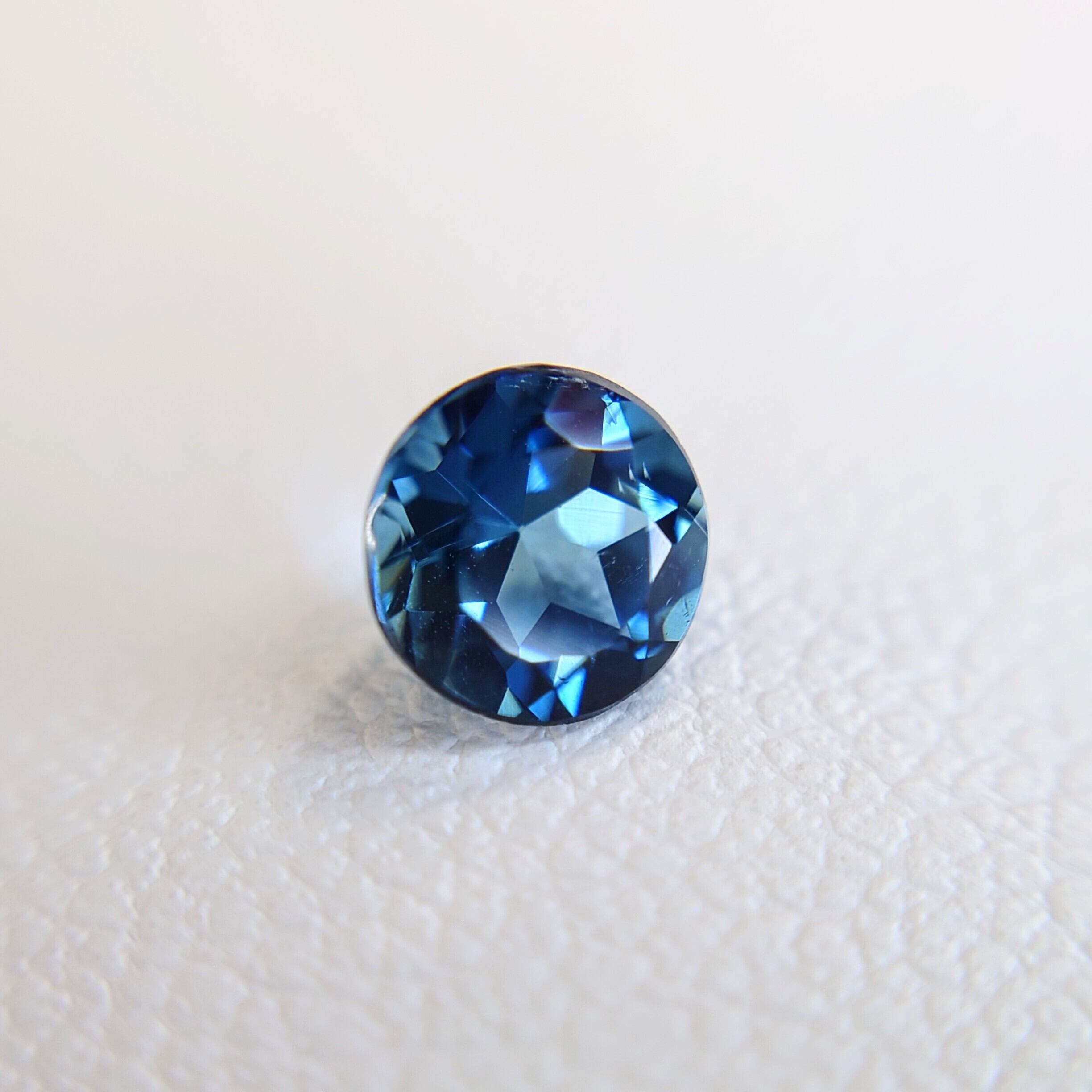 ラウンド・モディファイド・ブリリアントカットが生み出す繊細な煌めきは、光を捉えるたびに多彩な青の表情を映し出し、見る者を魅了します。