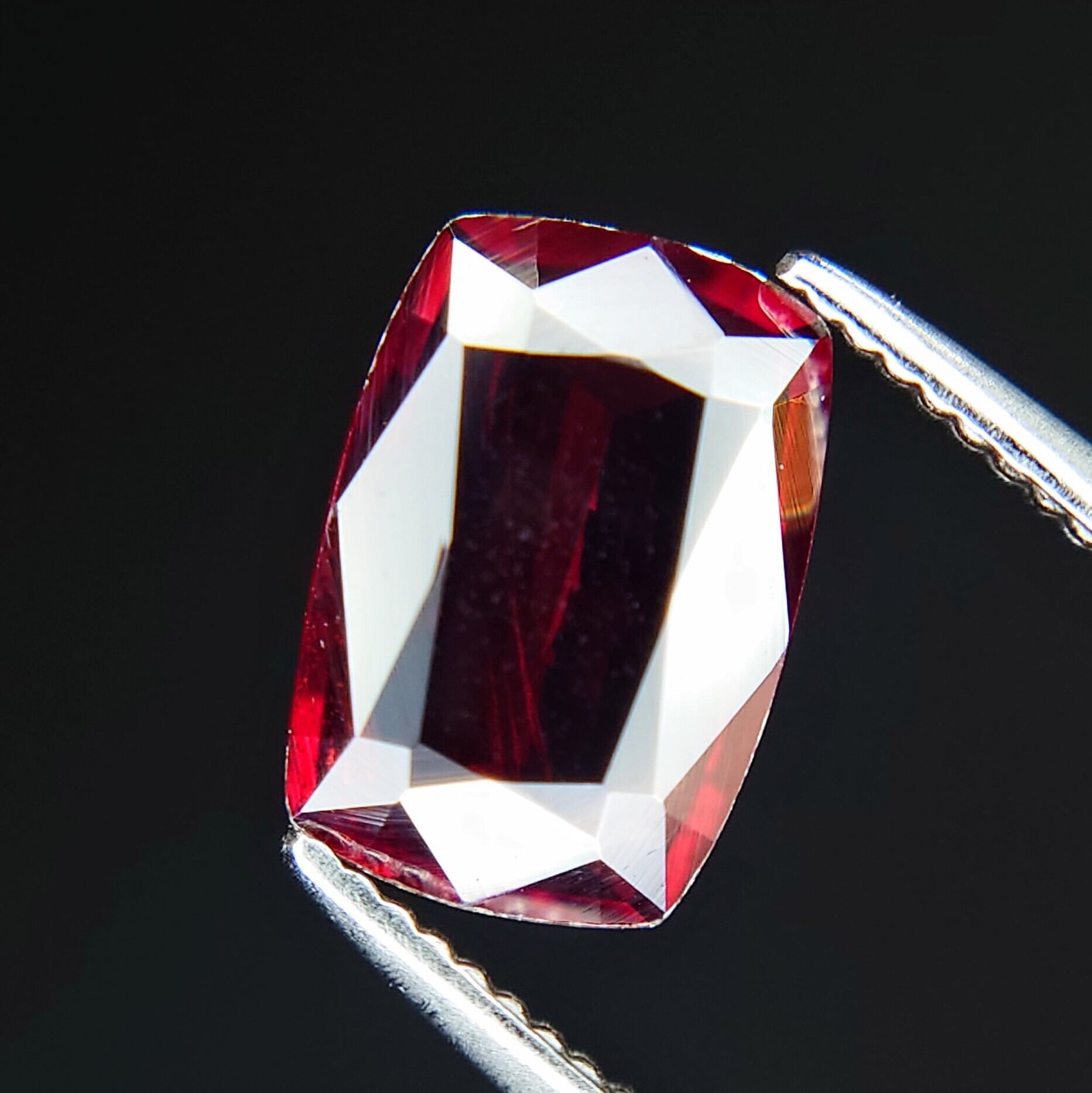 こちらは1.511カラットのマンガノタンタライト。非常に希少な宝石であり、わずかに存在するファセットカット可能な結晶の中でも、ここまでの透明感と均整の取れたプロポーションは大変稀少です。