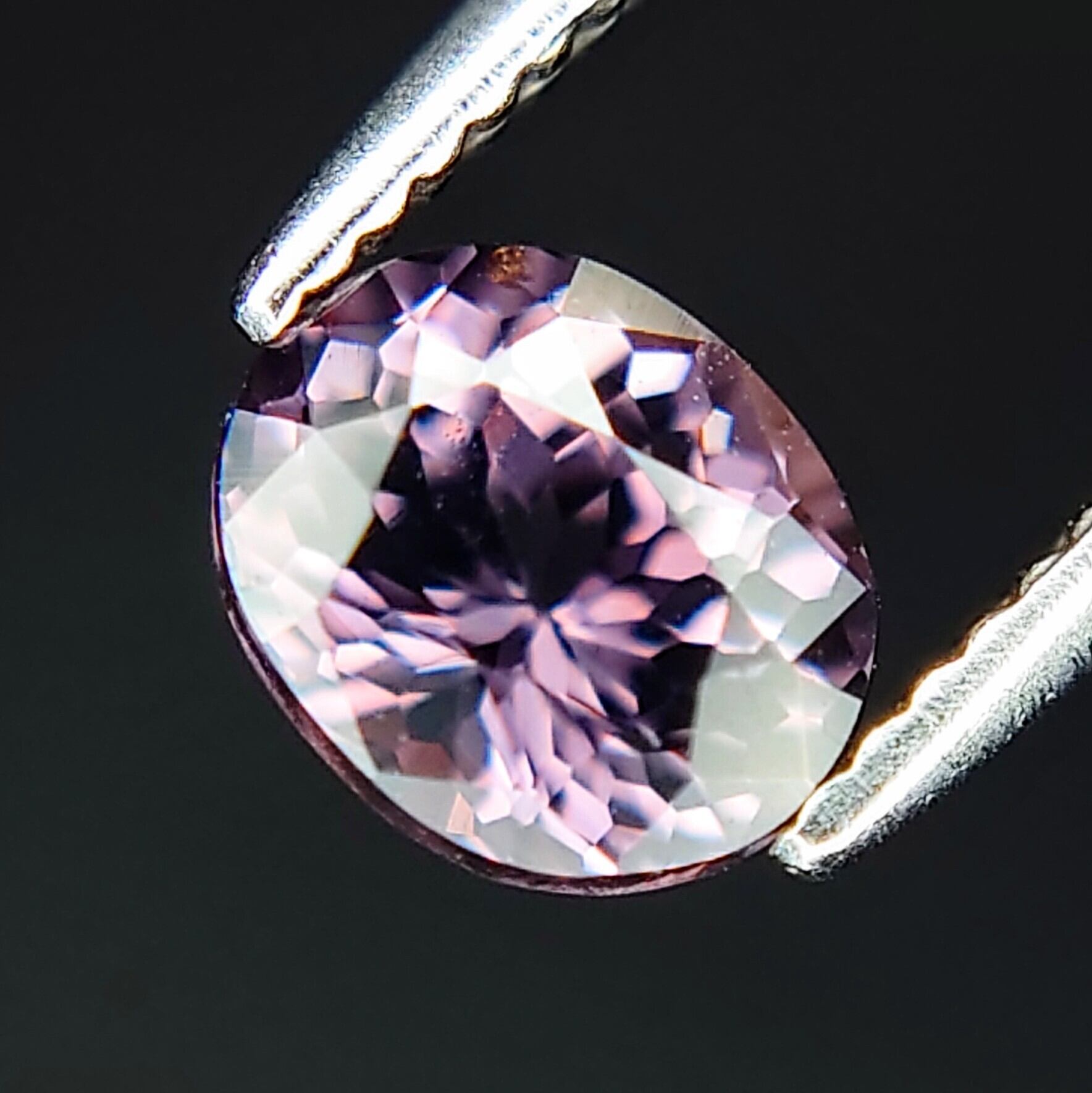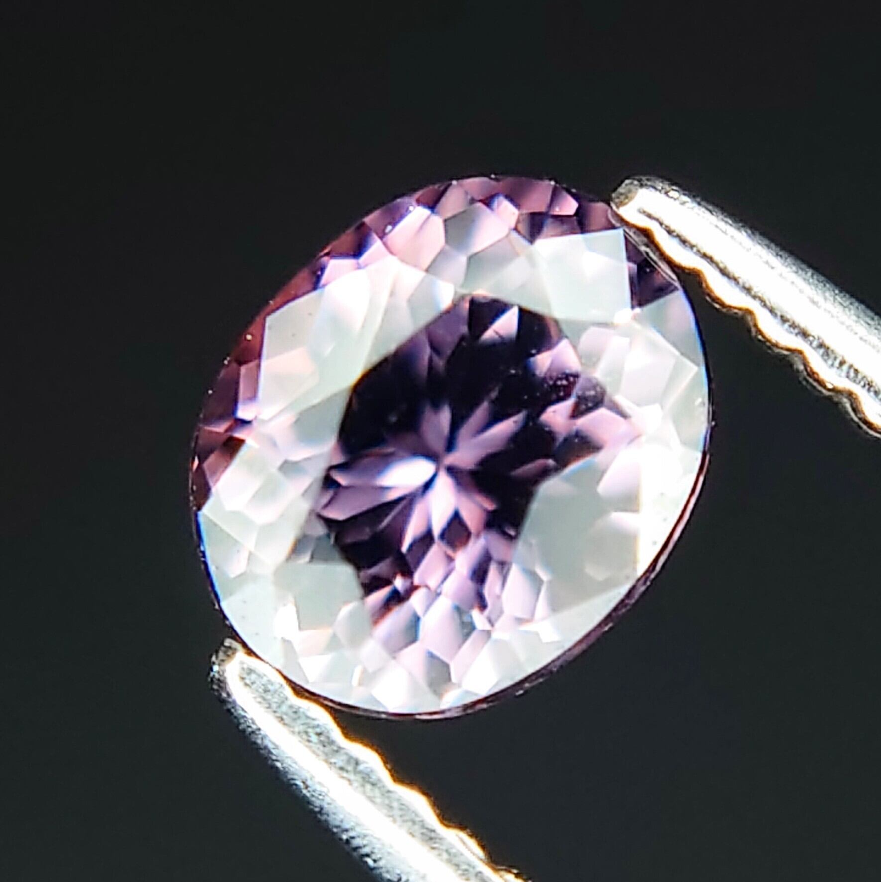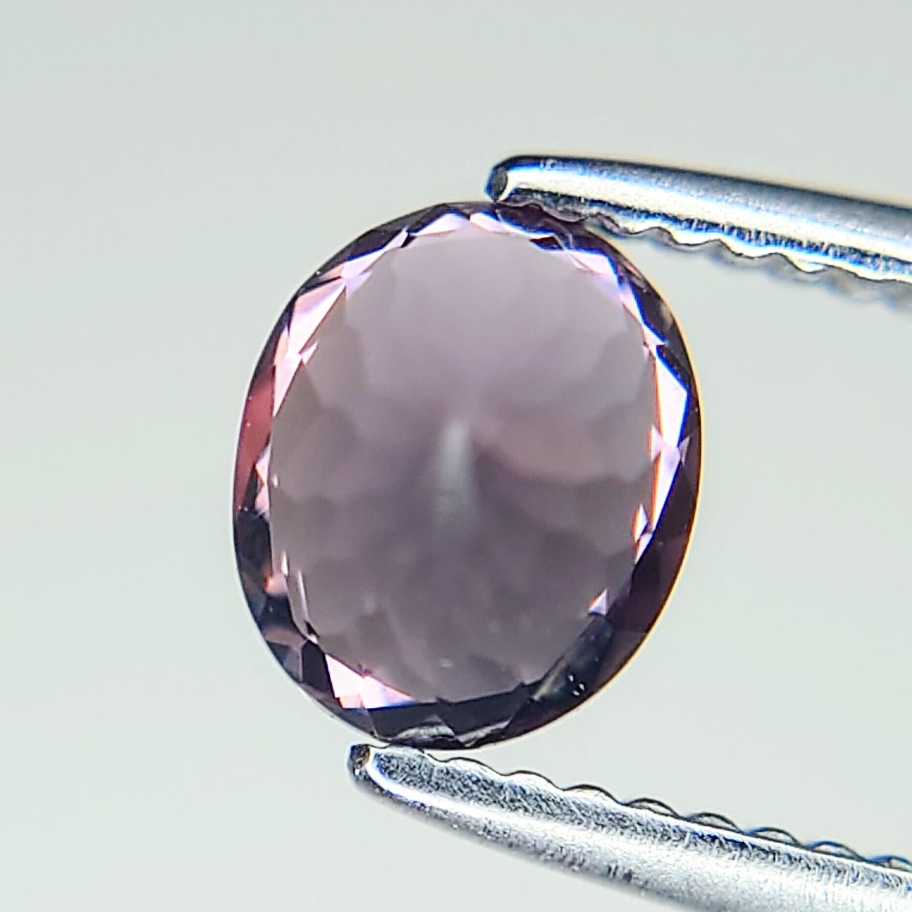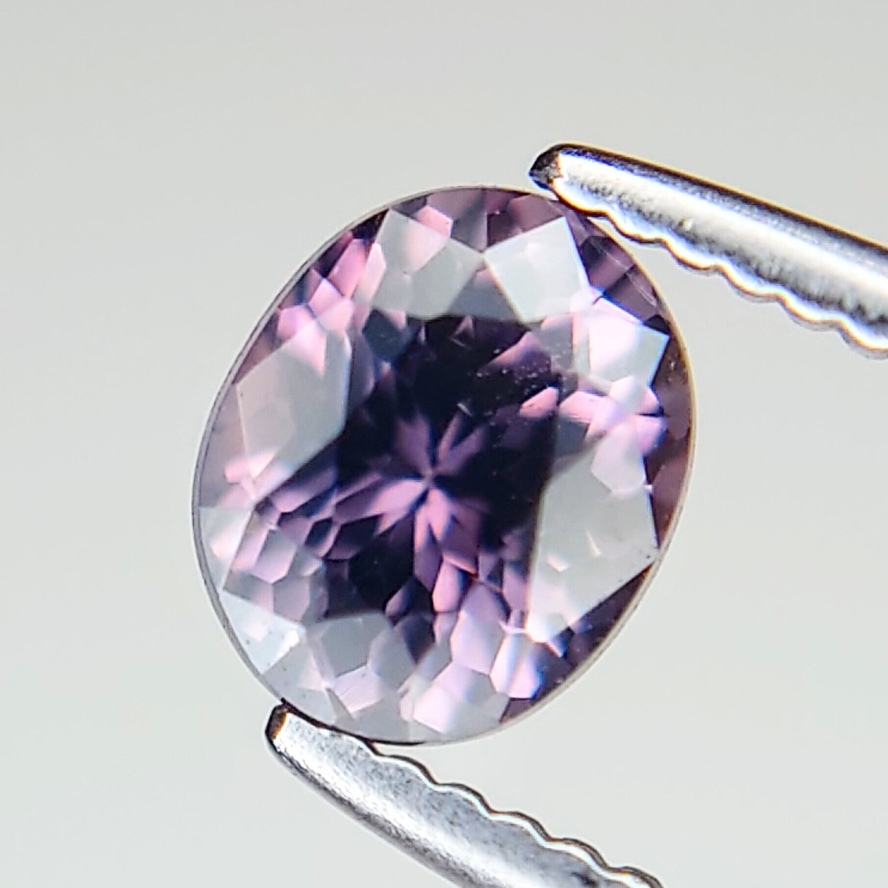 深みのあるラベンダーから赤紫色の輝きが印象的で、光の角度によって異なる色調を見せる多色性(プレオクロイズム)を堪能できます。丁寧に施されたオーバル・モディファイドブリリアントカットが、透明感のある輝きを一層引き立てています。