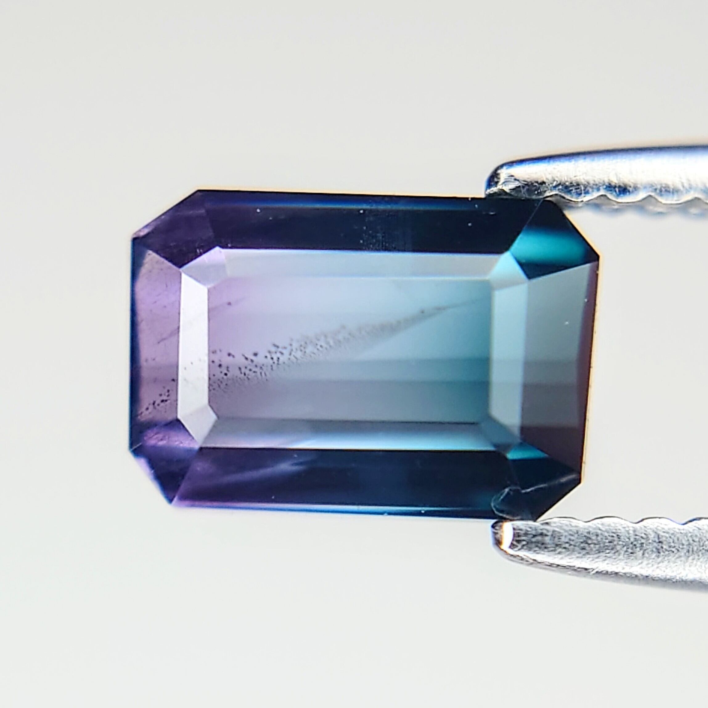 青紫と赤紫が織りなす幻想的なグラデーションが美しい、希少なバイカラースピネルのご紹介です。