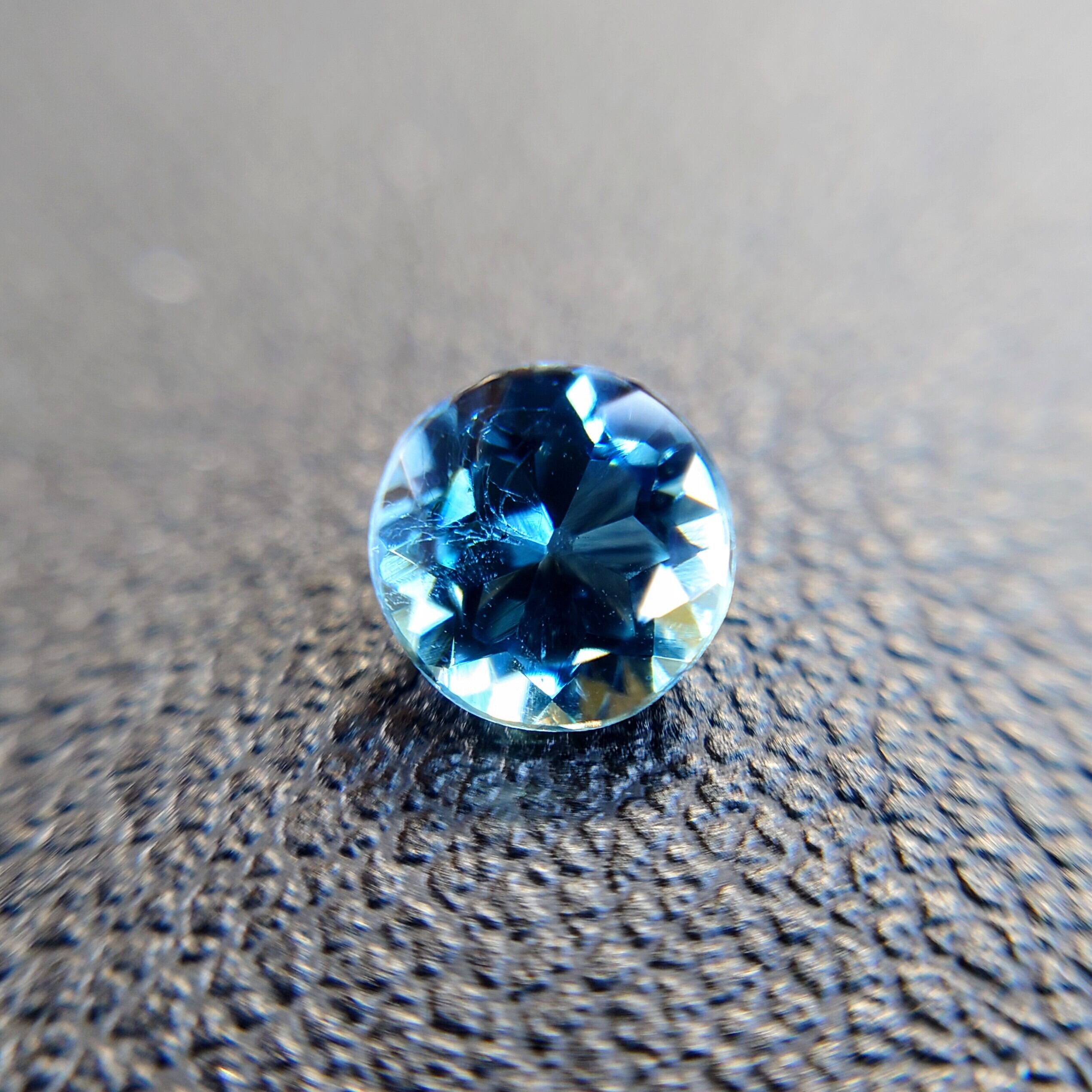 ラウンド・モディファイド・ブリリアントカットが生み出す繊細な煌めきは、光を捉えるたびに多彩な青の表情を映し出し、見る者を魅了します。
