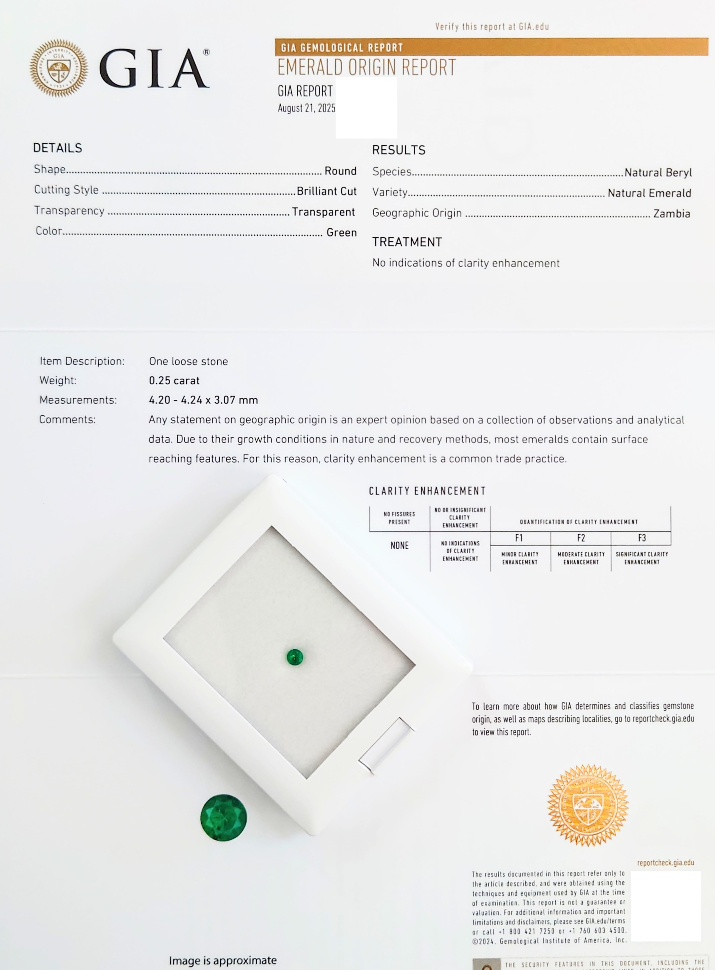 極希少 Emerald 0.25ct No OIL Zambia GIA産地鑑別書付 ルース☆