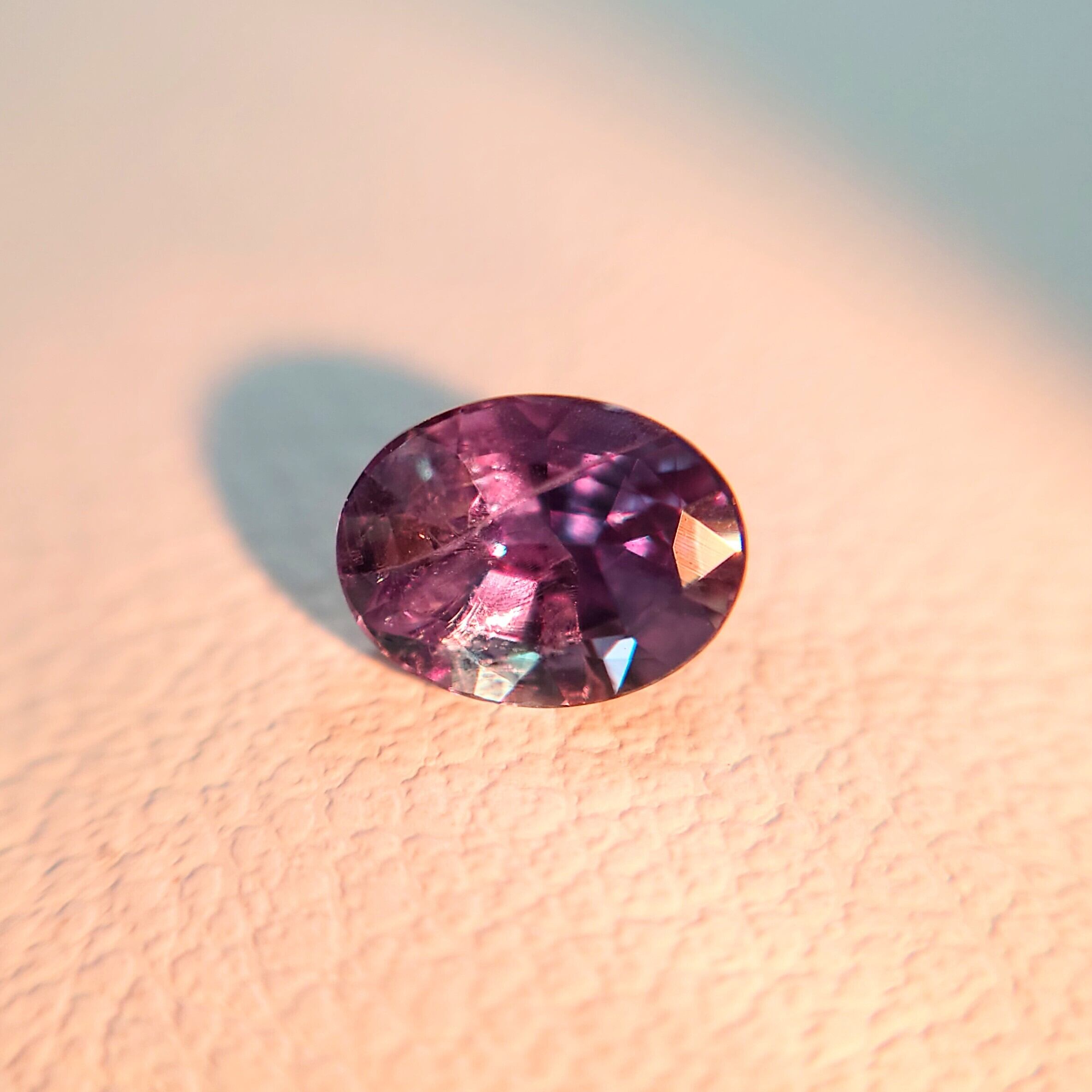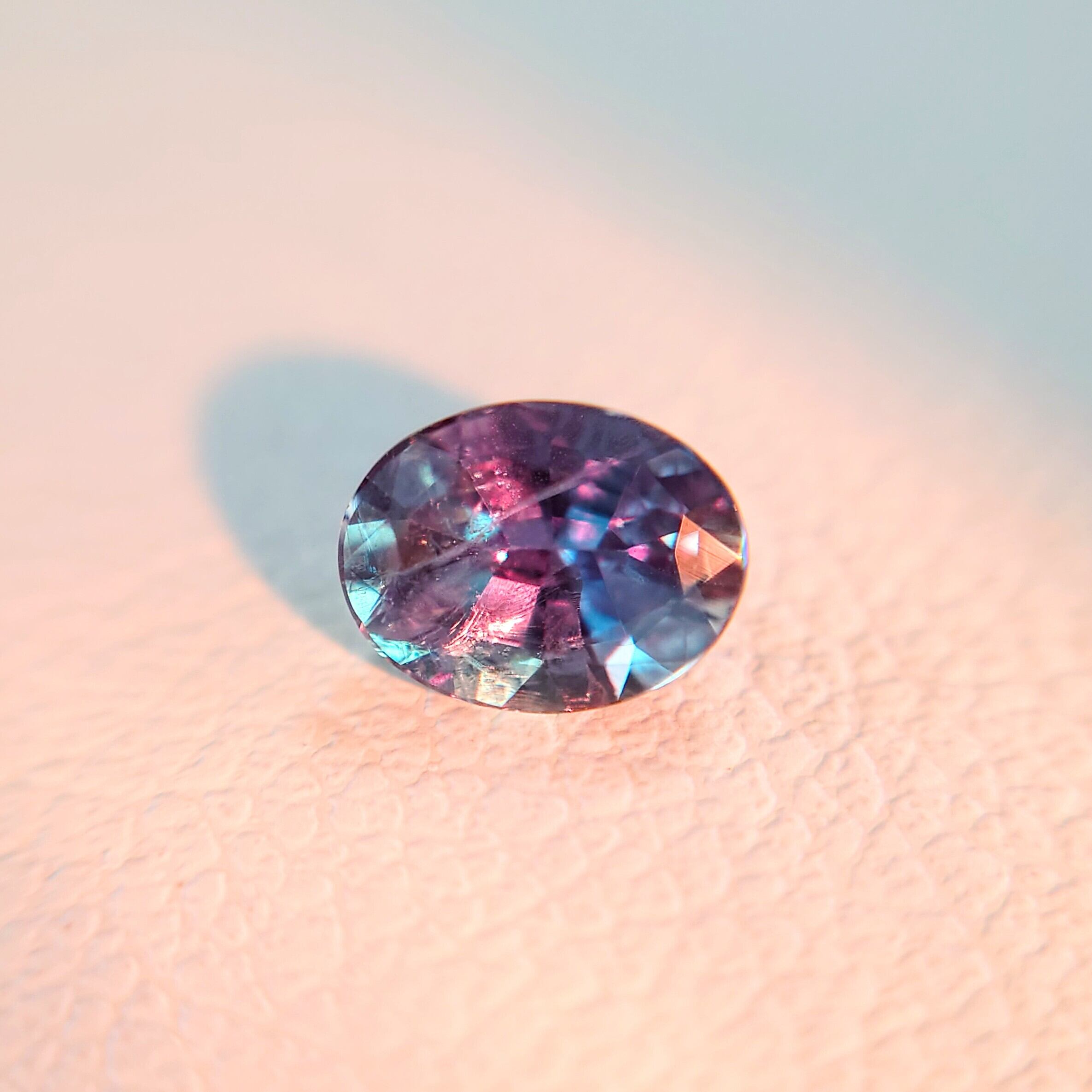 昼光下では澄んだブルーグリーン、白熱灯下では艶やかなパープルへと劇的に変化する、魅惑のカラーチェンジを楽しめる天然アレキサンドライトです。