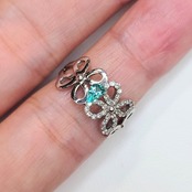 こちらはペアシェイプ・モディファイドブリリアントカットにより、透明感あふれる輝きと瑞々しい発色を最大限に引き出しています。光の加減によって鮮やかなブルーから深みのあるブルーグリーンまで多彩な表情を楽しめます。
