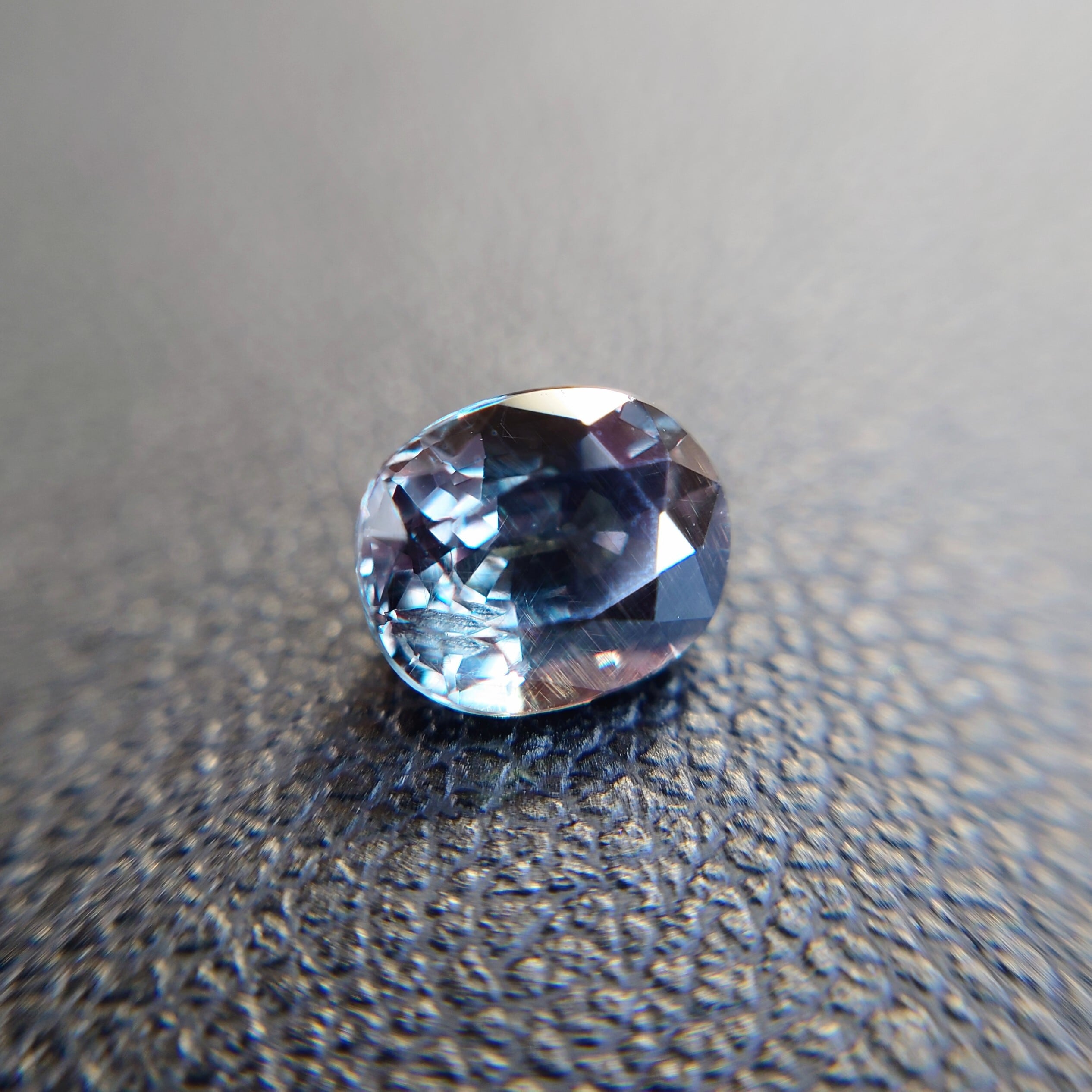 光源によって劇的に表情を変えるこの宝石は、自然光の下では落ち着きのある青みを帯びたグレイッシュバイオレット、白熱灯や暖色光の下では艶やかなレディッシュパープルへと変化します。