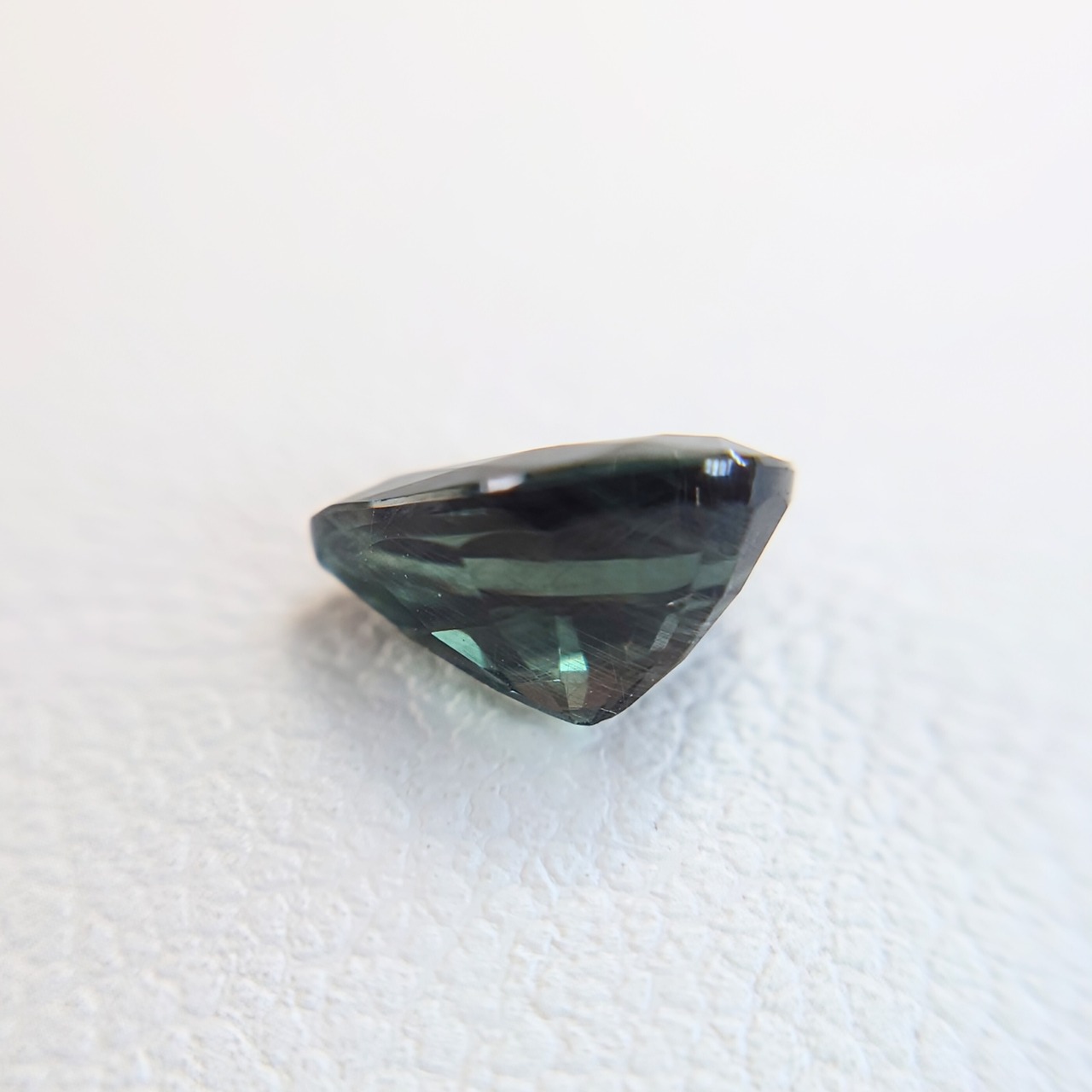 白熱灯でチェンジするカラーと浮かび上がる無数の針状インクルージョンはとても神秘的です。
