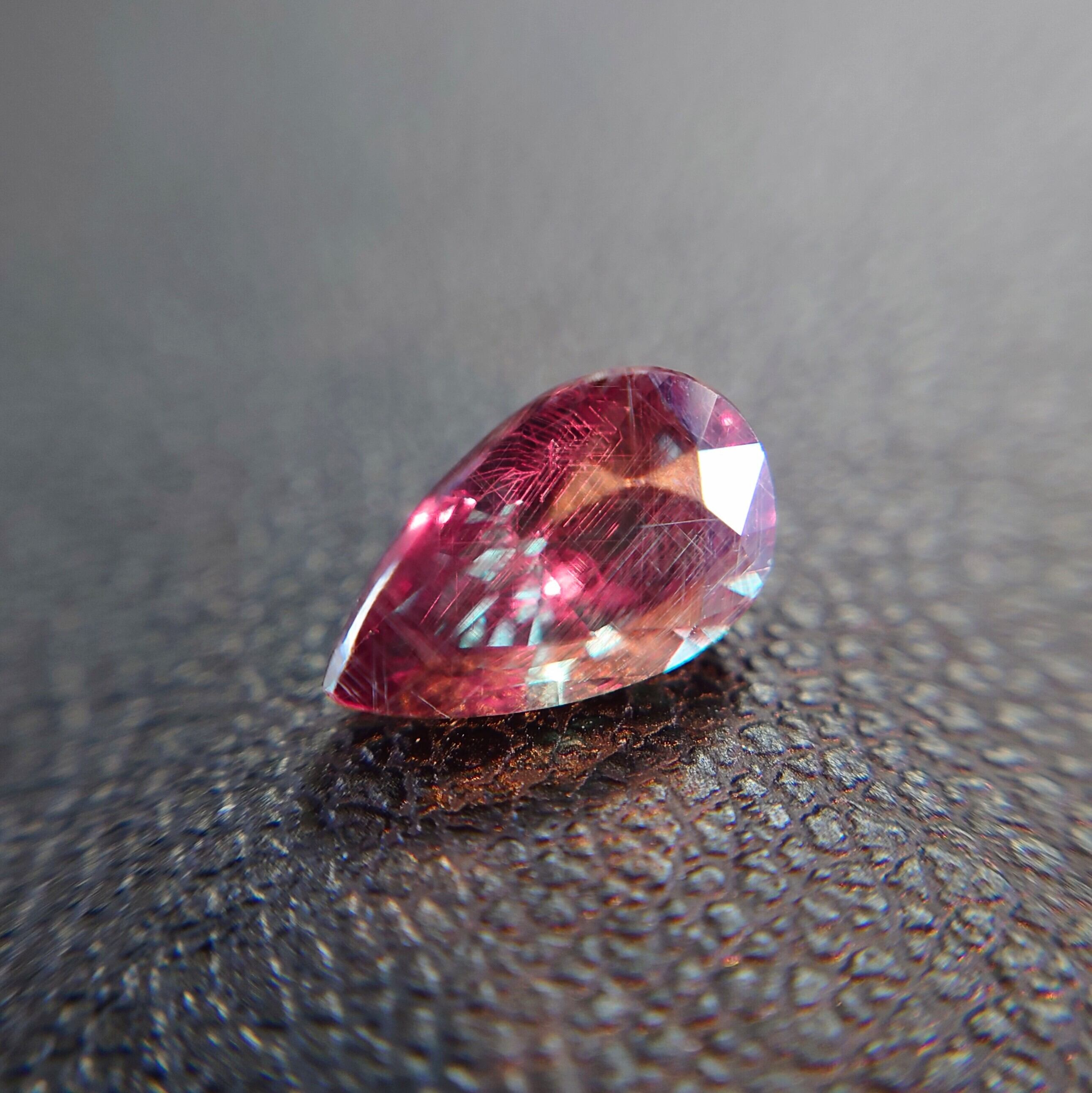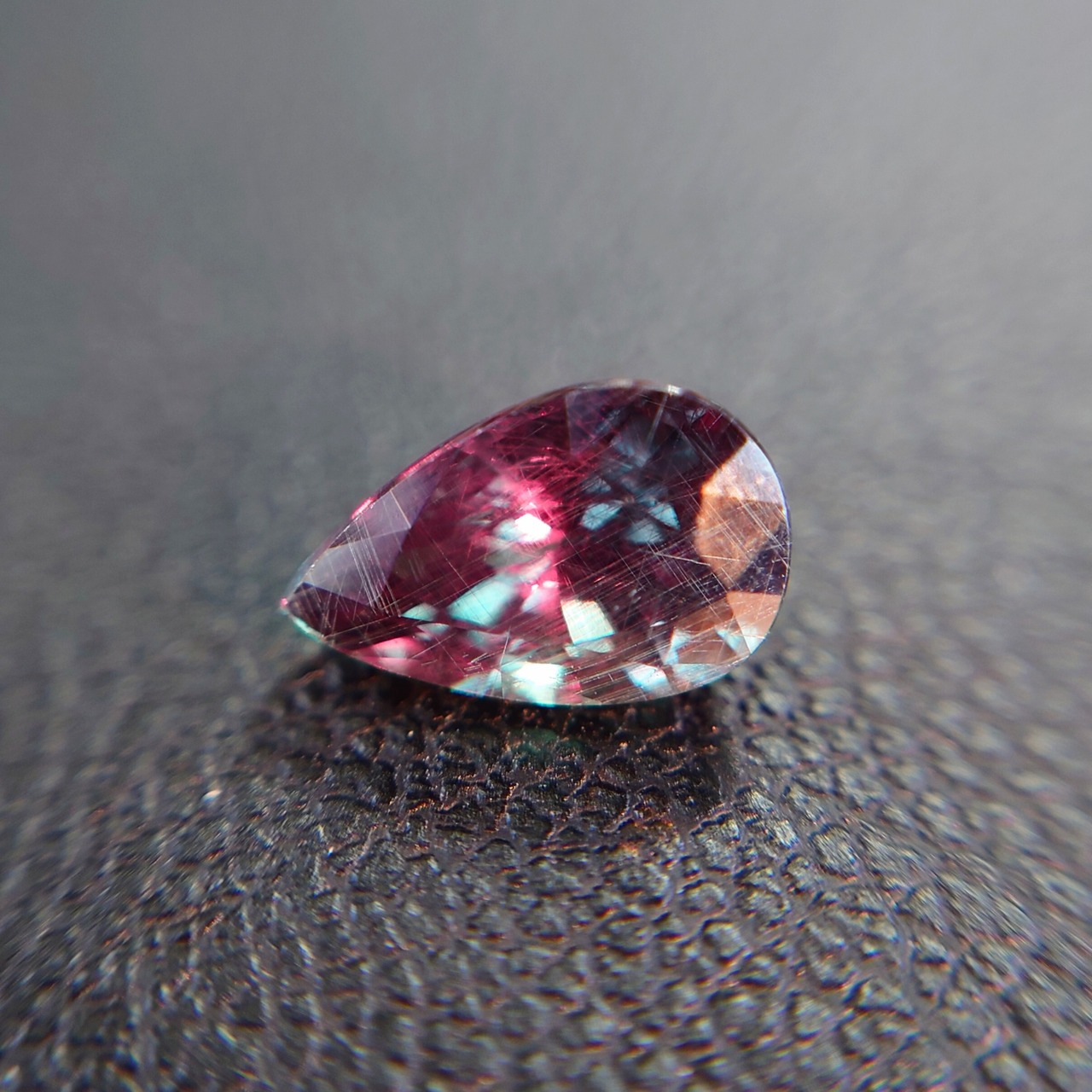 ルーペで見ると、天然カラーチェンジガーネット特有の、針状インクルージョンが確認できます。