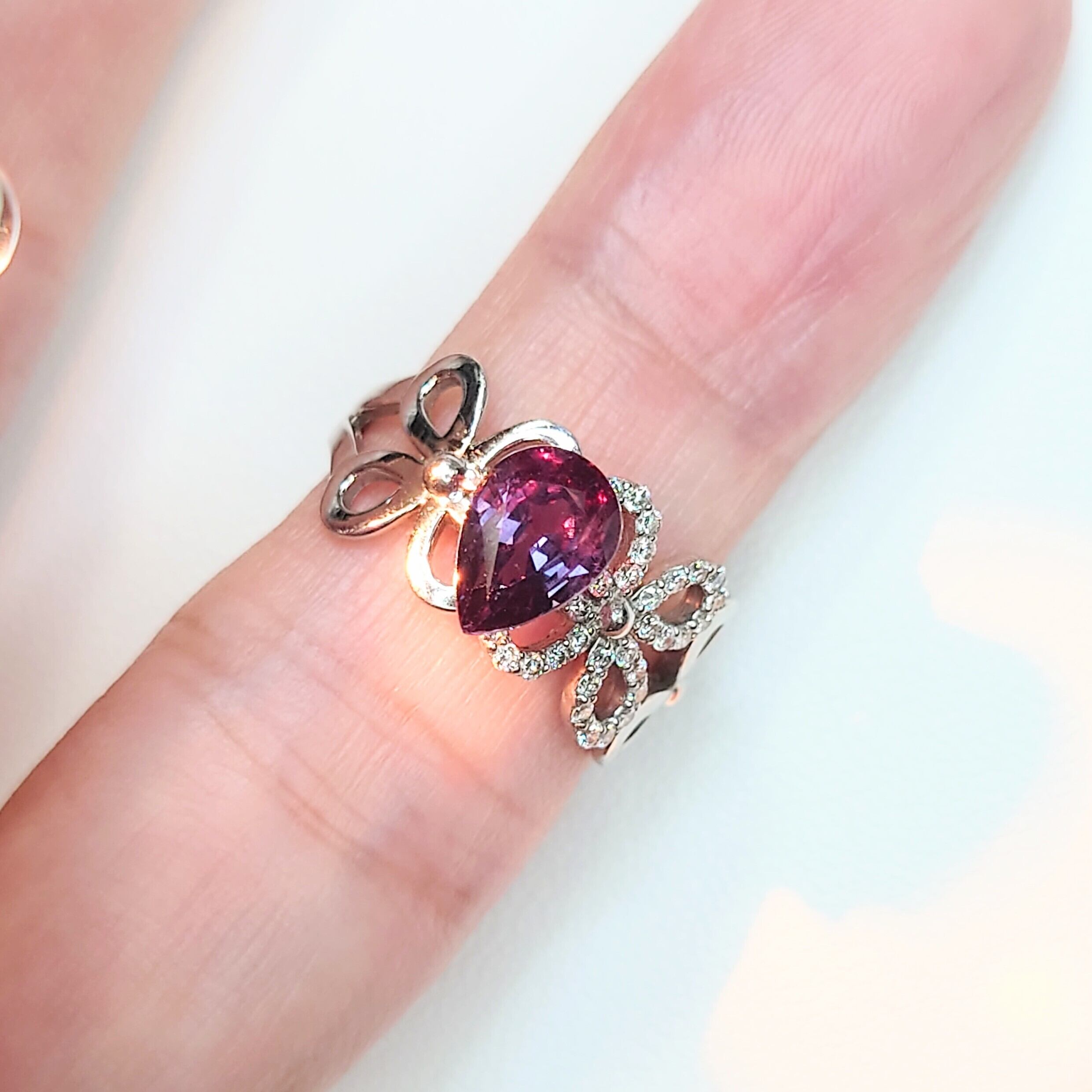 ペアシェイプのミックスカットが施され、深みのある輝きを最大限に引き出しています。
