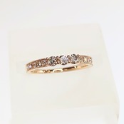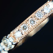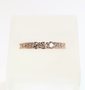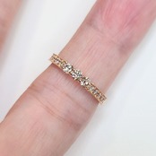 クラシカルなミル打ちがほどこされたアームに、上質なライトブラウンカラーのダイヤモンドを13石(計0.34ct)あしらったK18ピンクゴールドリング。中央に向かって大きく並ぶダイヤが、指先に華やかな輝きを添えます。
