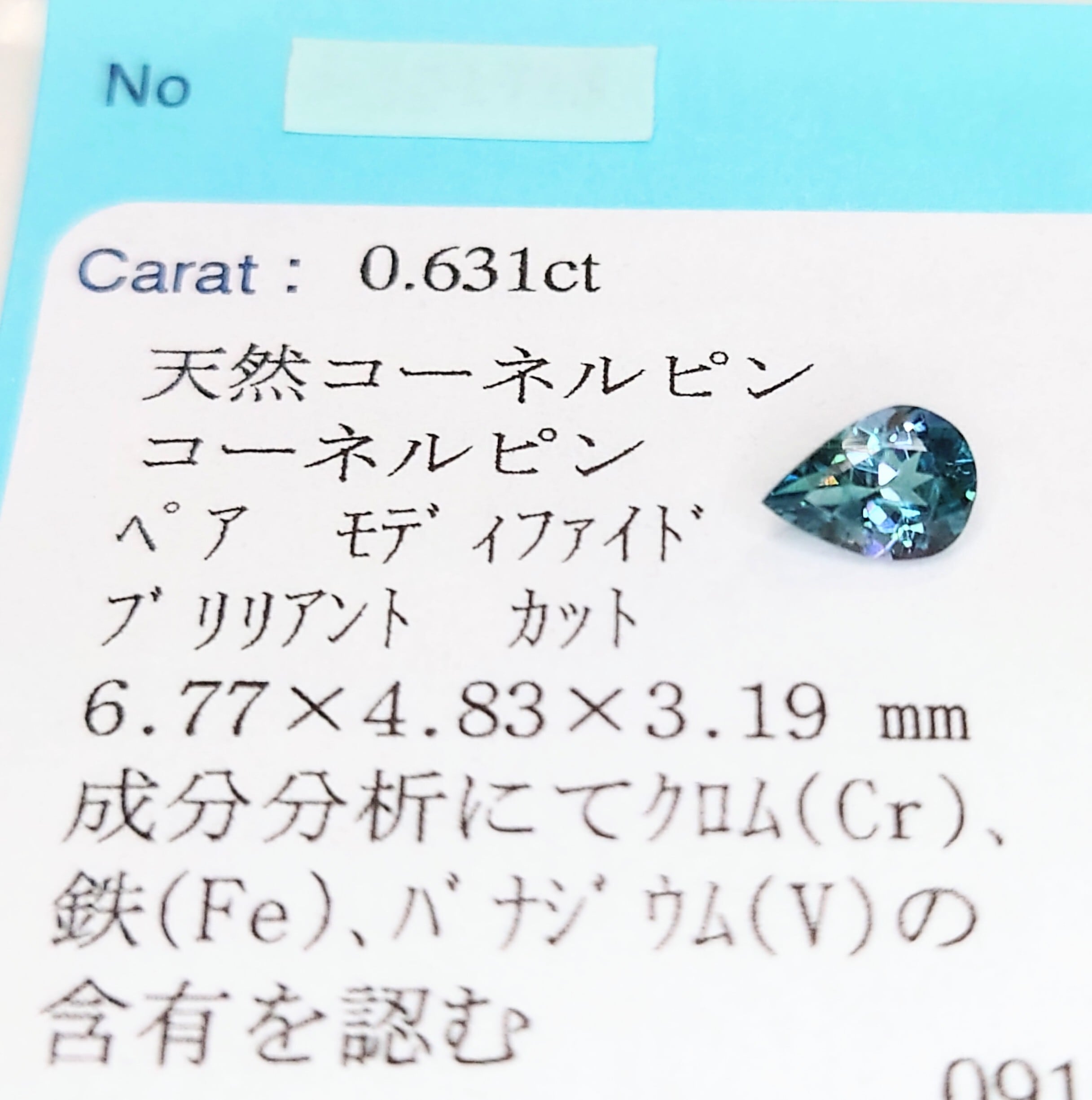 【希少石】天然コーネルピン 0.631ct(Cr/Fe/V 分析ソ付)