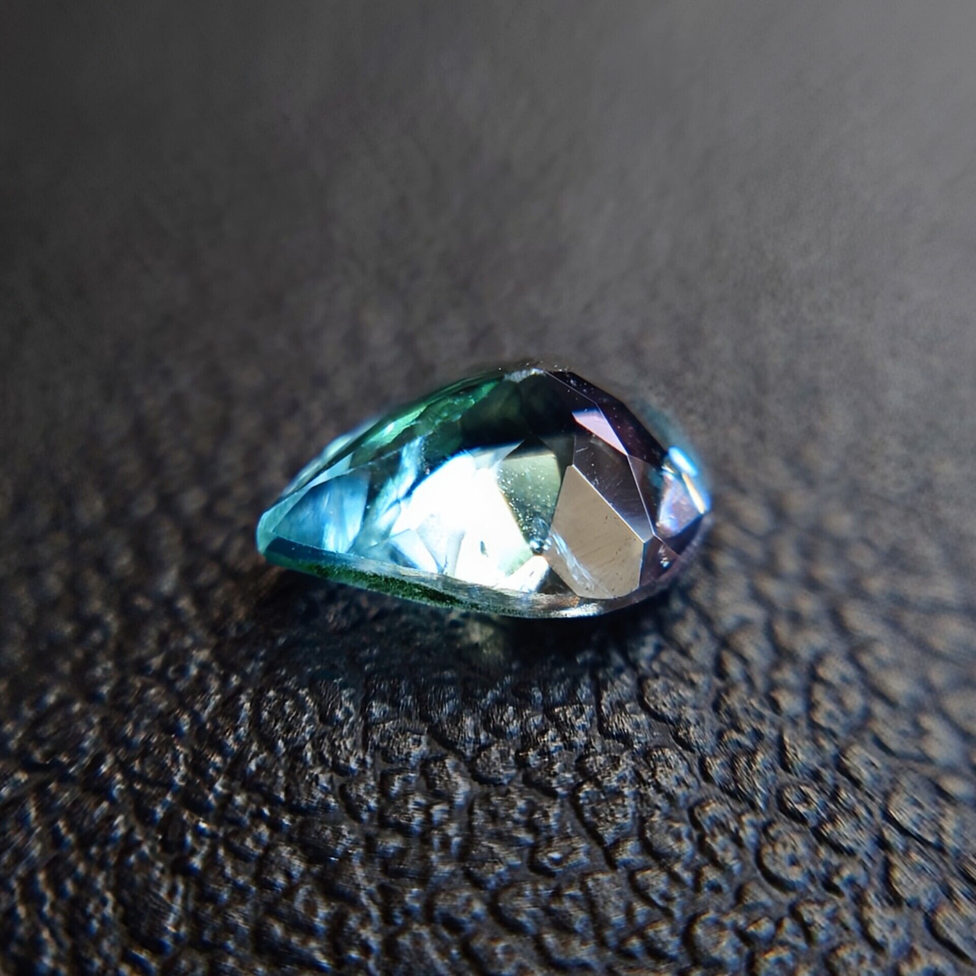 瑞々しいブルーやパープル、ティールグリーンの輝きを放つ、天然コーネルピン(Kornerupine)0.631ct。
