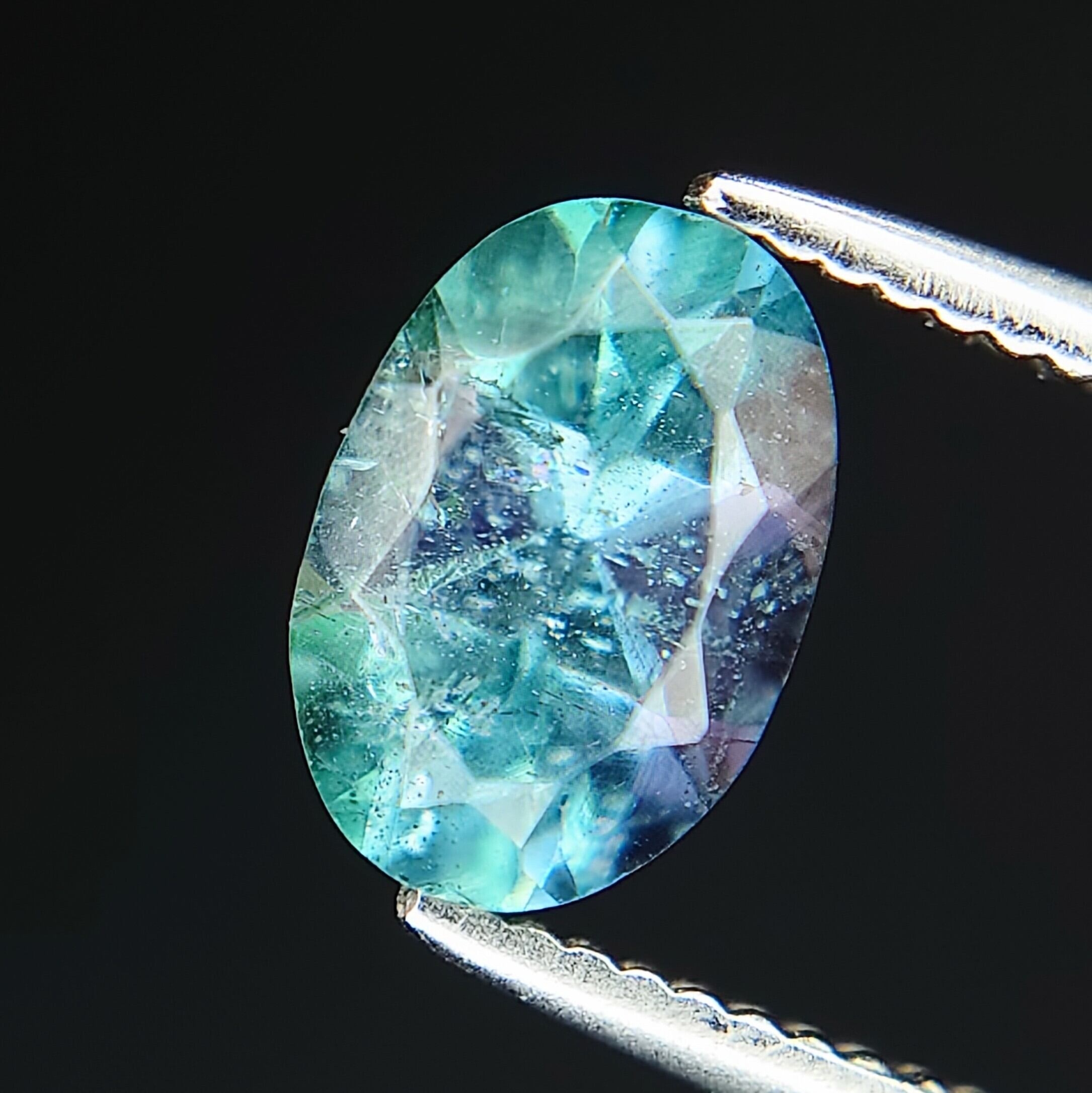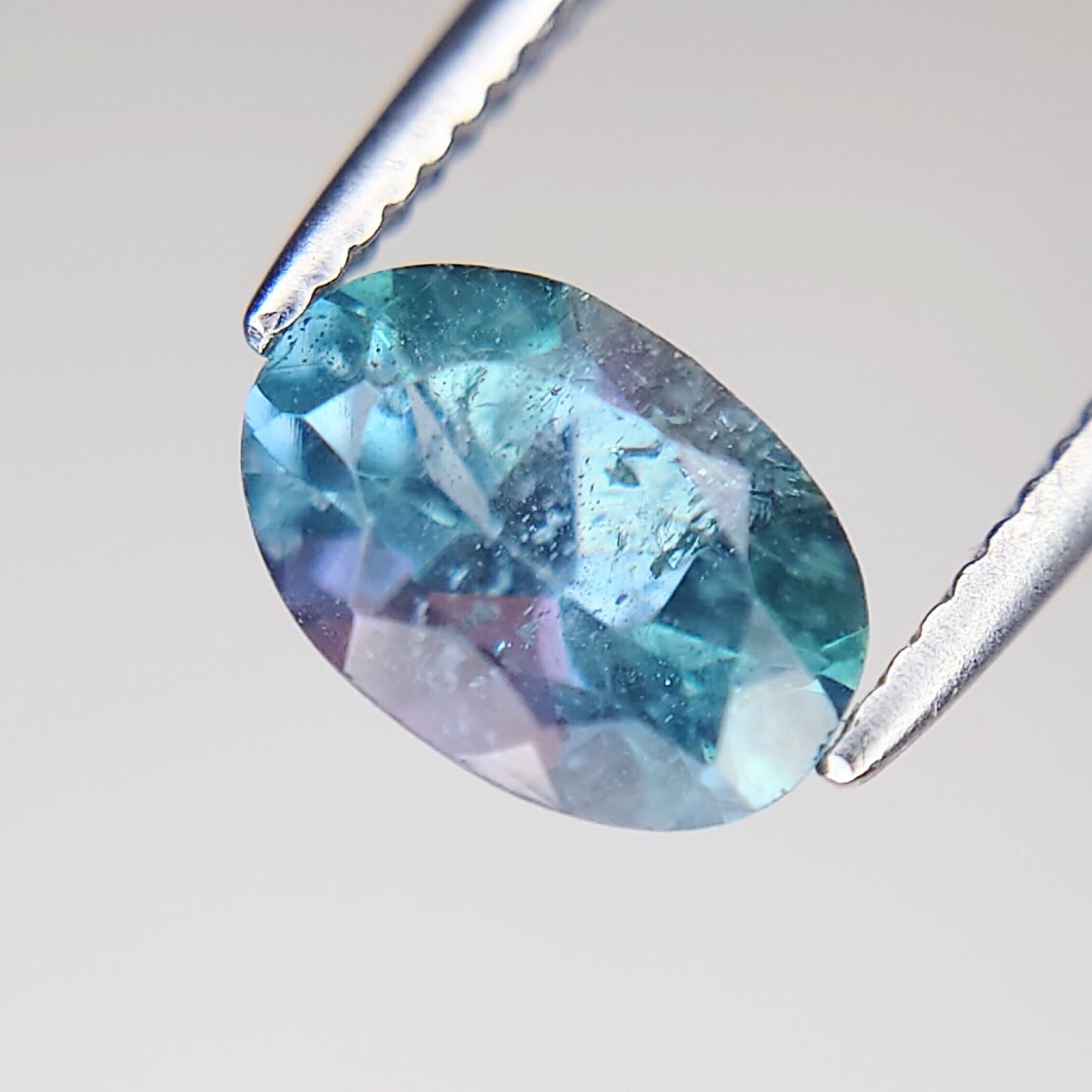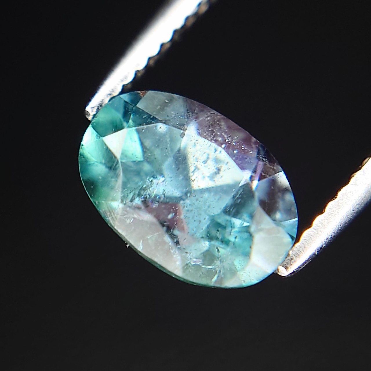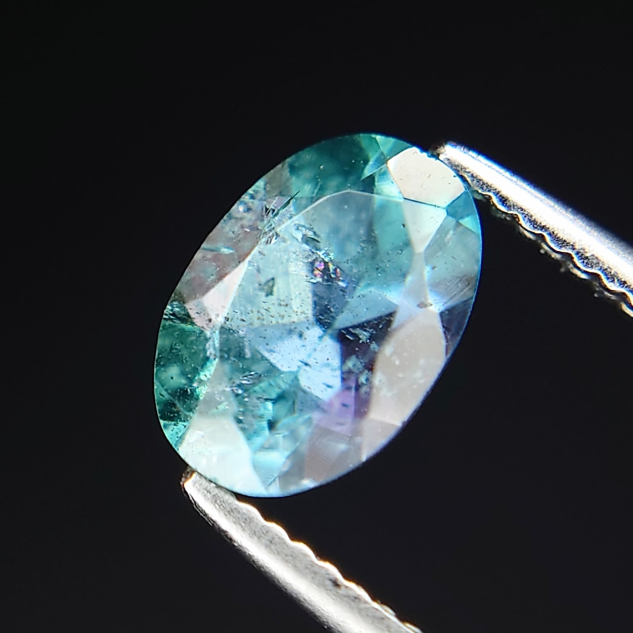 瑞々しいブルーやパープル、ティールグリーンの輝きを放つ、天然コーネルピン(Kornerupine)0.582ct。