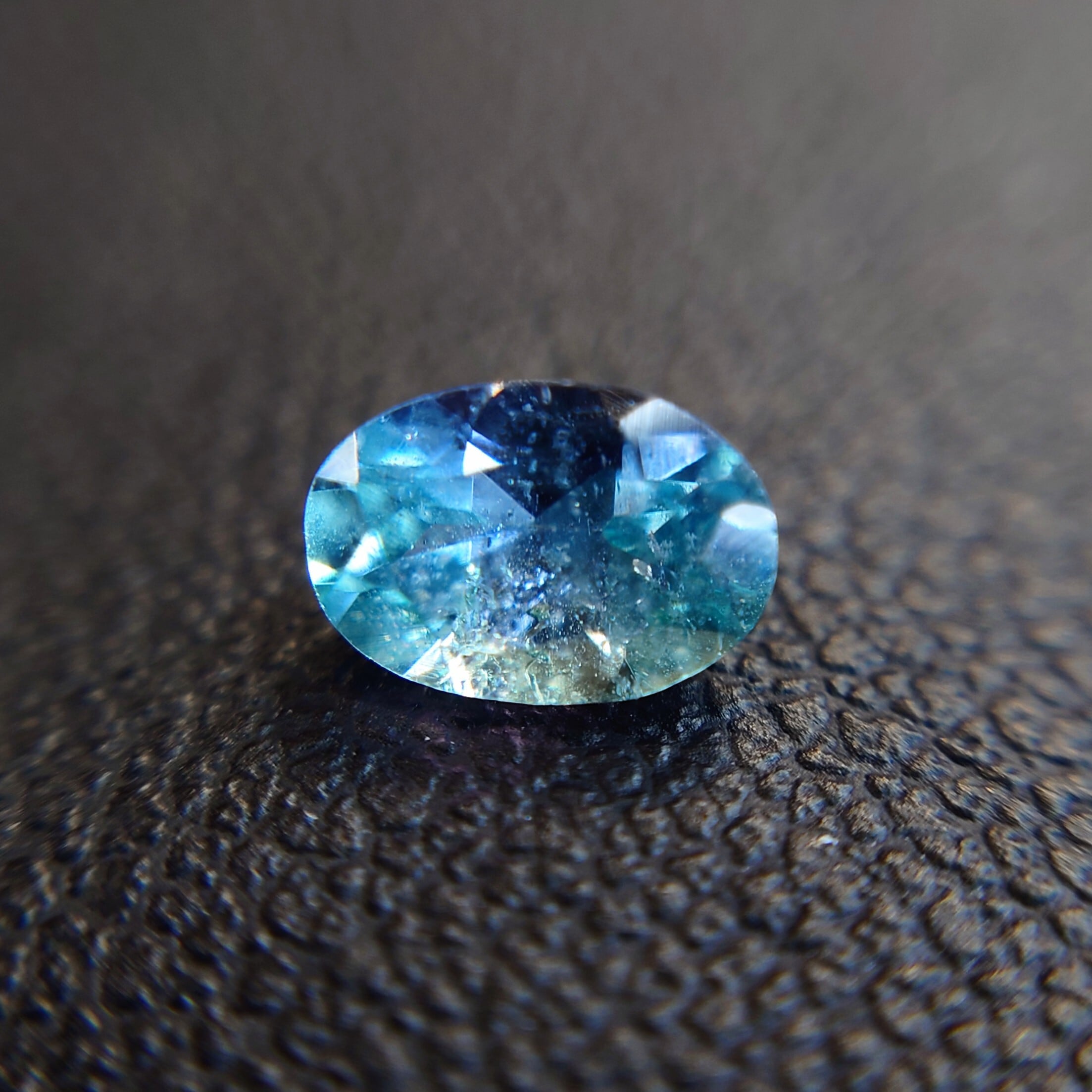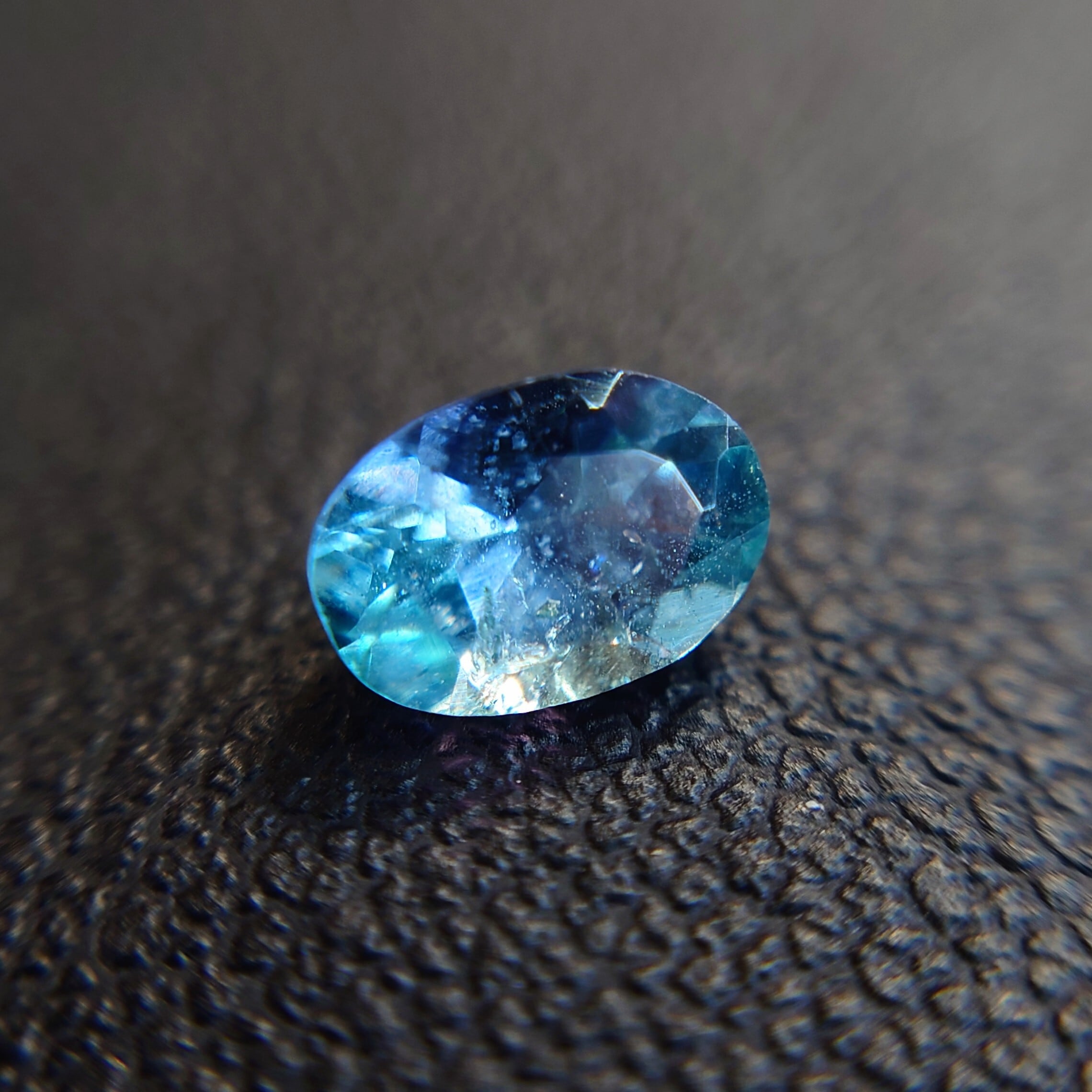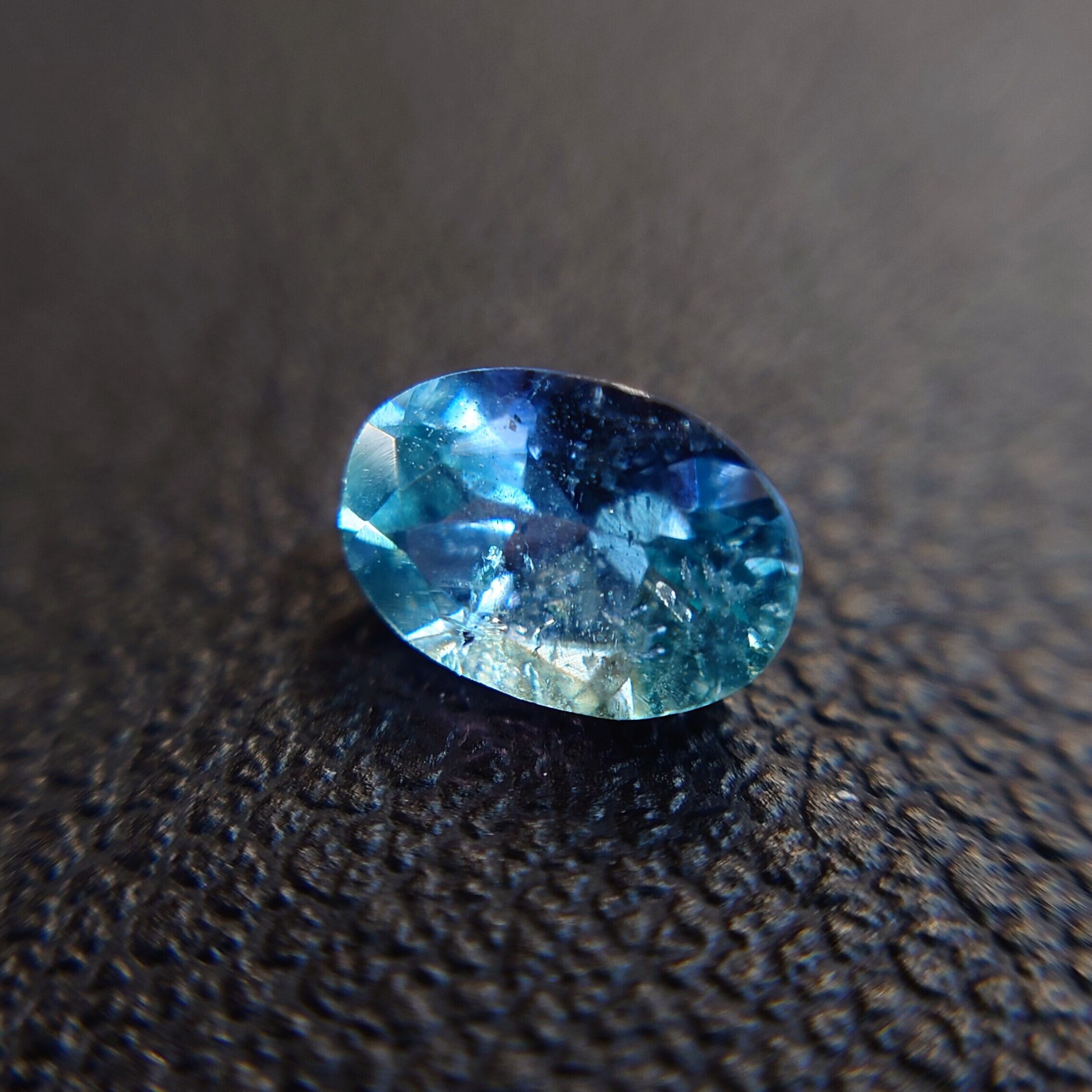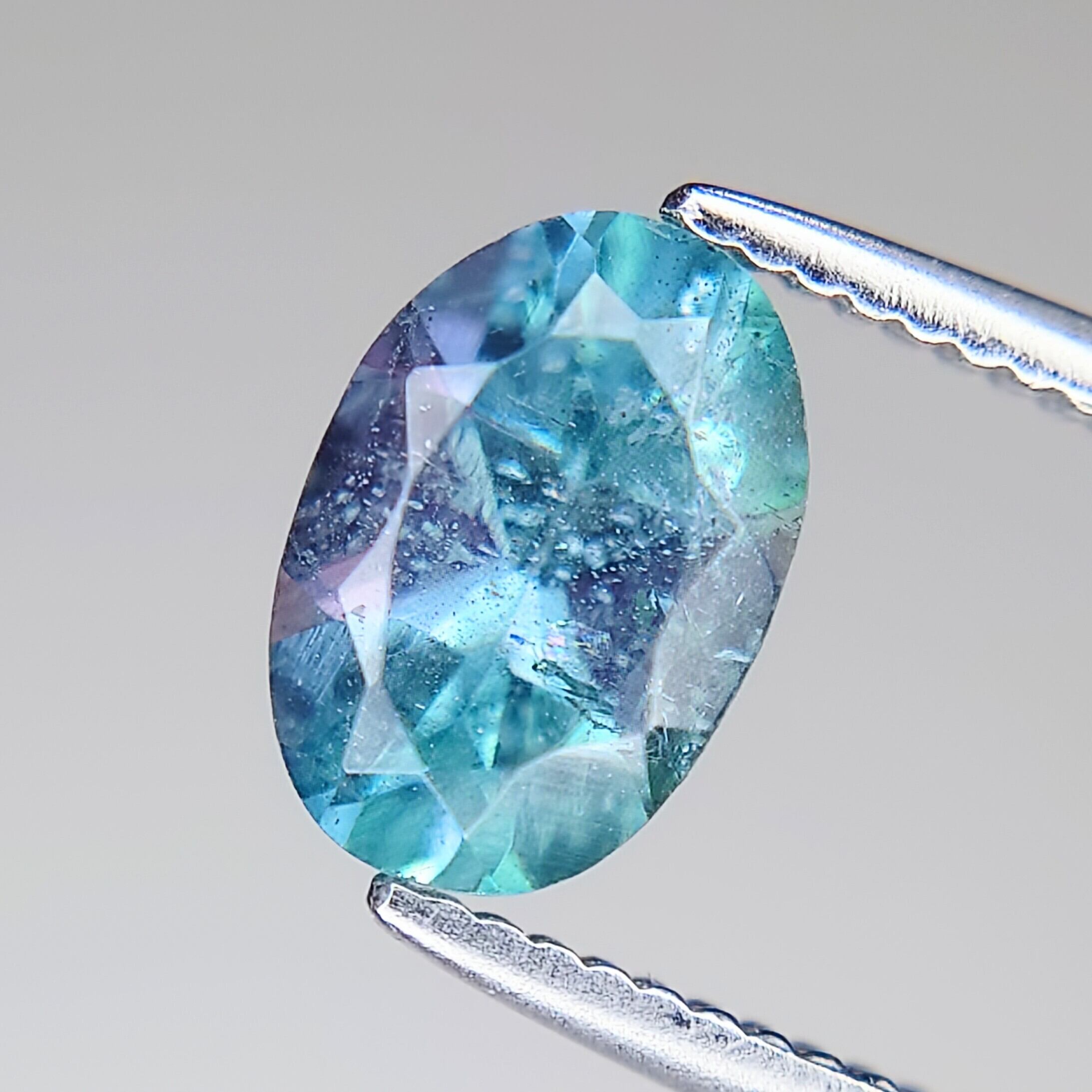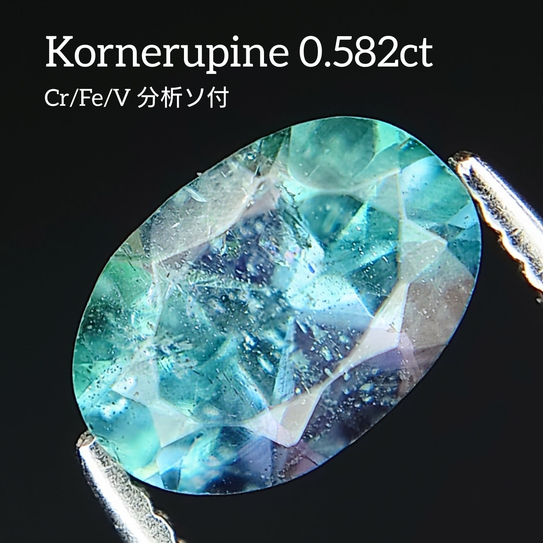 瑞々しいブルーやパープル、ティールグリーンの輝きを放つ、天然コーネルピン(Kornerupine)0.582ct。