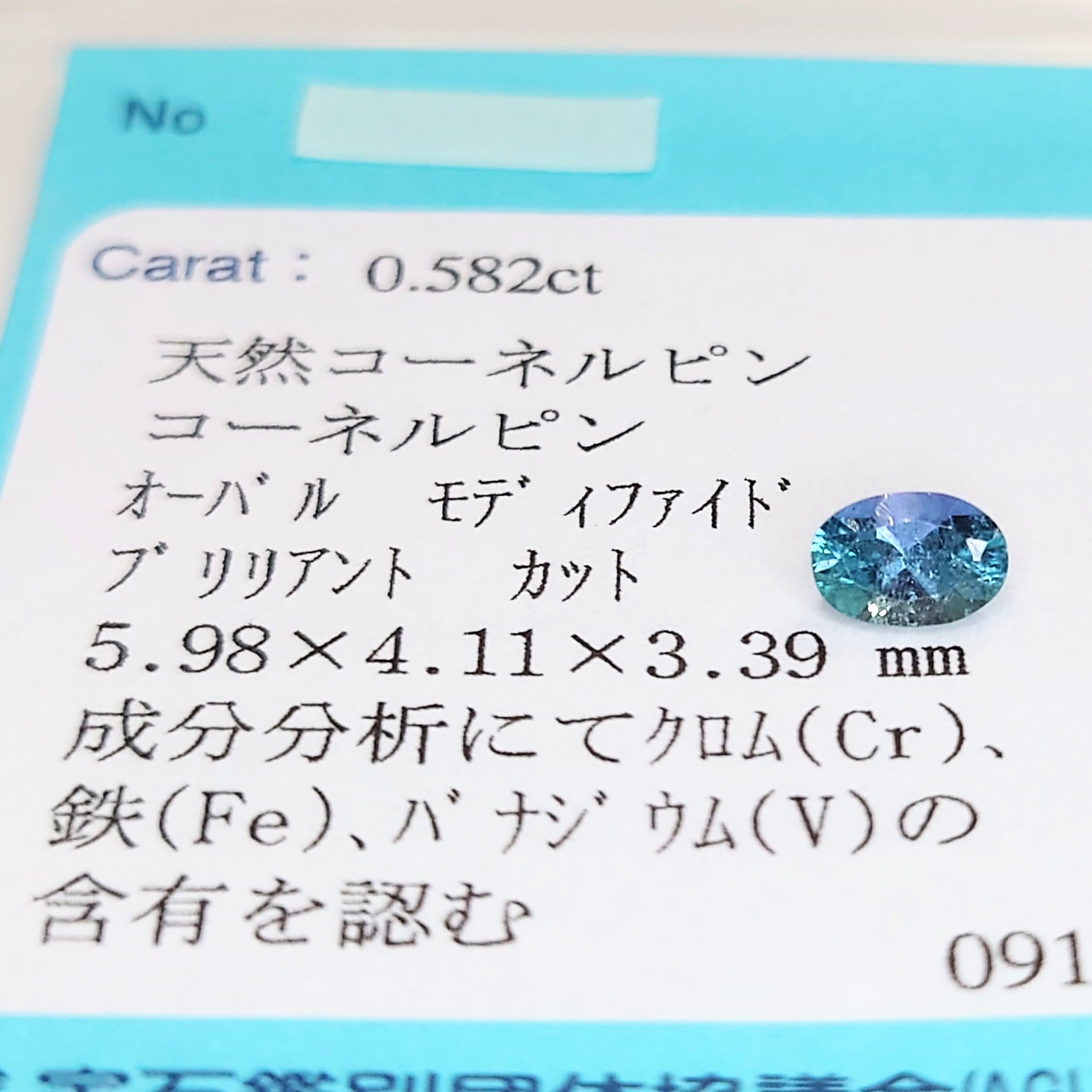 こちらの石は成分分析にて クロム(Cr)・鉄(Fe)・バナジウム(V) の含有が確認されており、発色の美しさを裏付ける貴重なデータ付き。サイズは 5.98 × 4.11 × 3.39 mm と十分な存在感と扱いやすさで、ジュエリーへのセッティングにも最適です。