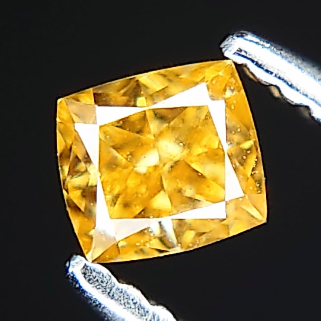 強く鮮やかなオレンジ味を帯びたイエローが印象的な、Fancy Vivid Orangy Yellow ダイヤモンド。