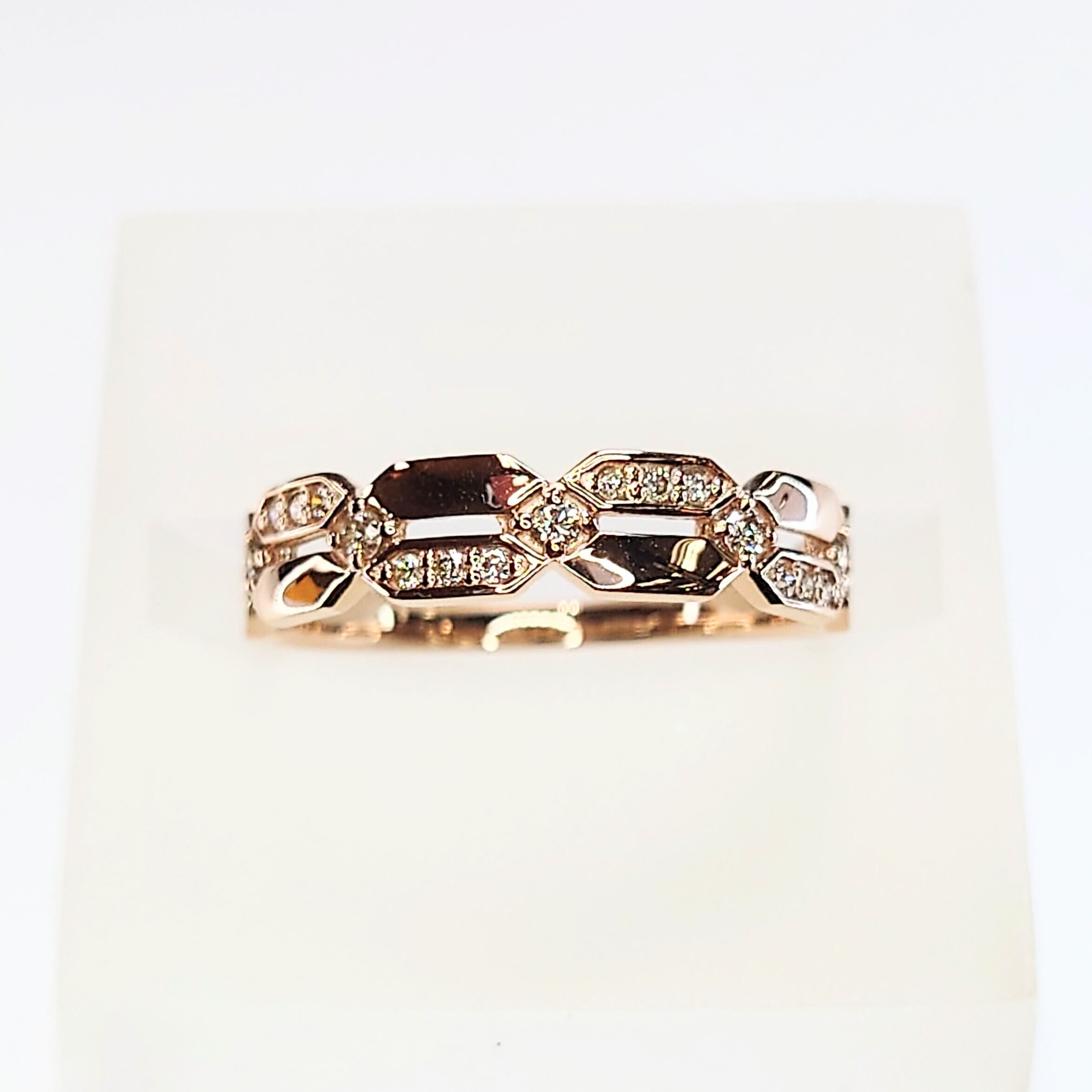 繊細に留められた17石のダイヤモンドが、ピンクゴールドの温かみある光沢とともに上品な輝きを放ちます。