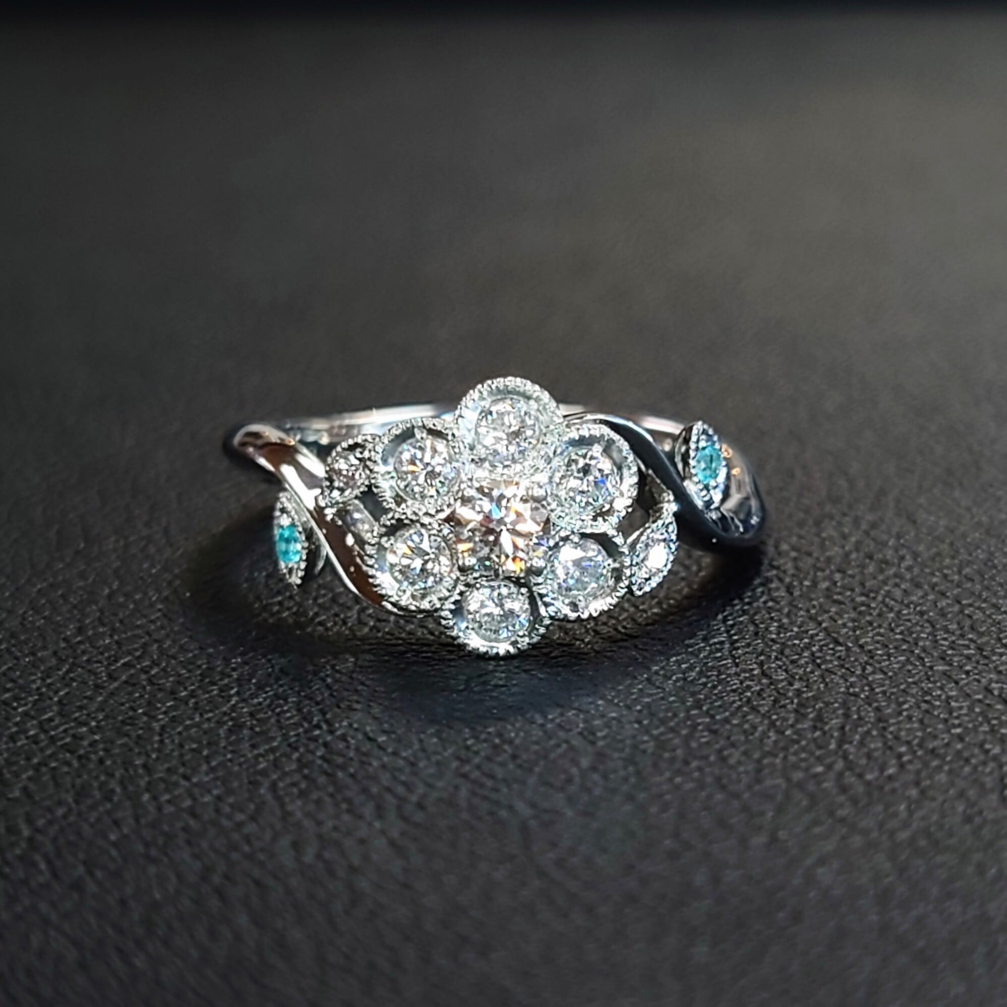 華やかさの中に気品を宿す、花咲くようなダイヤモンドリング。