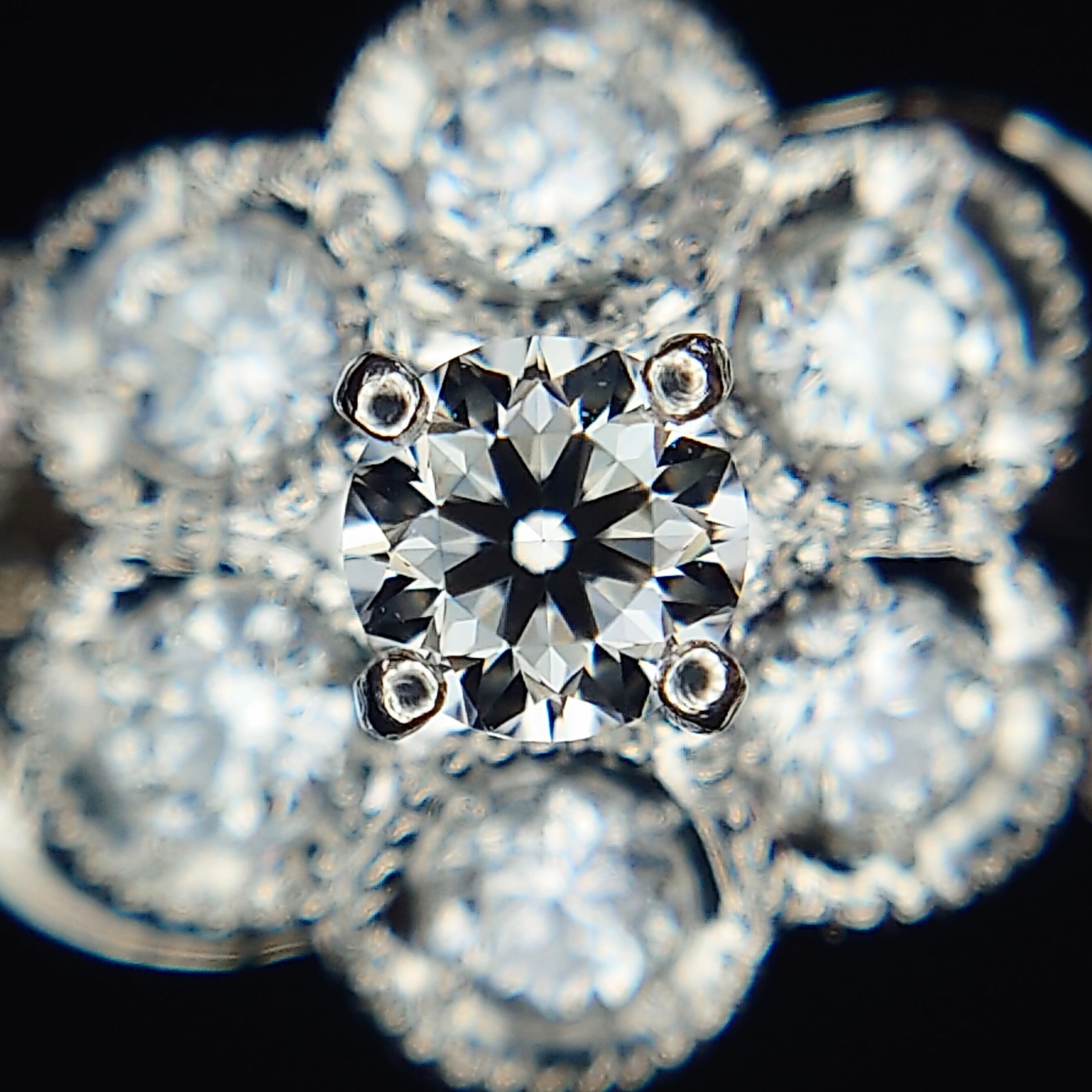 メインストーンは透明感のあるVS-1クラス、カットグレード「Good」。