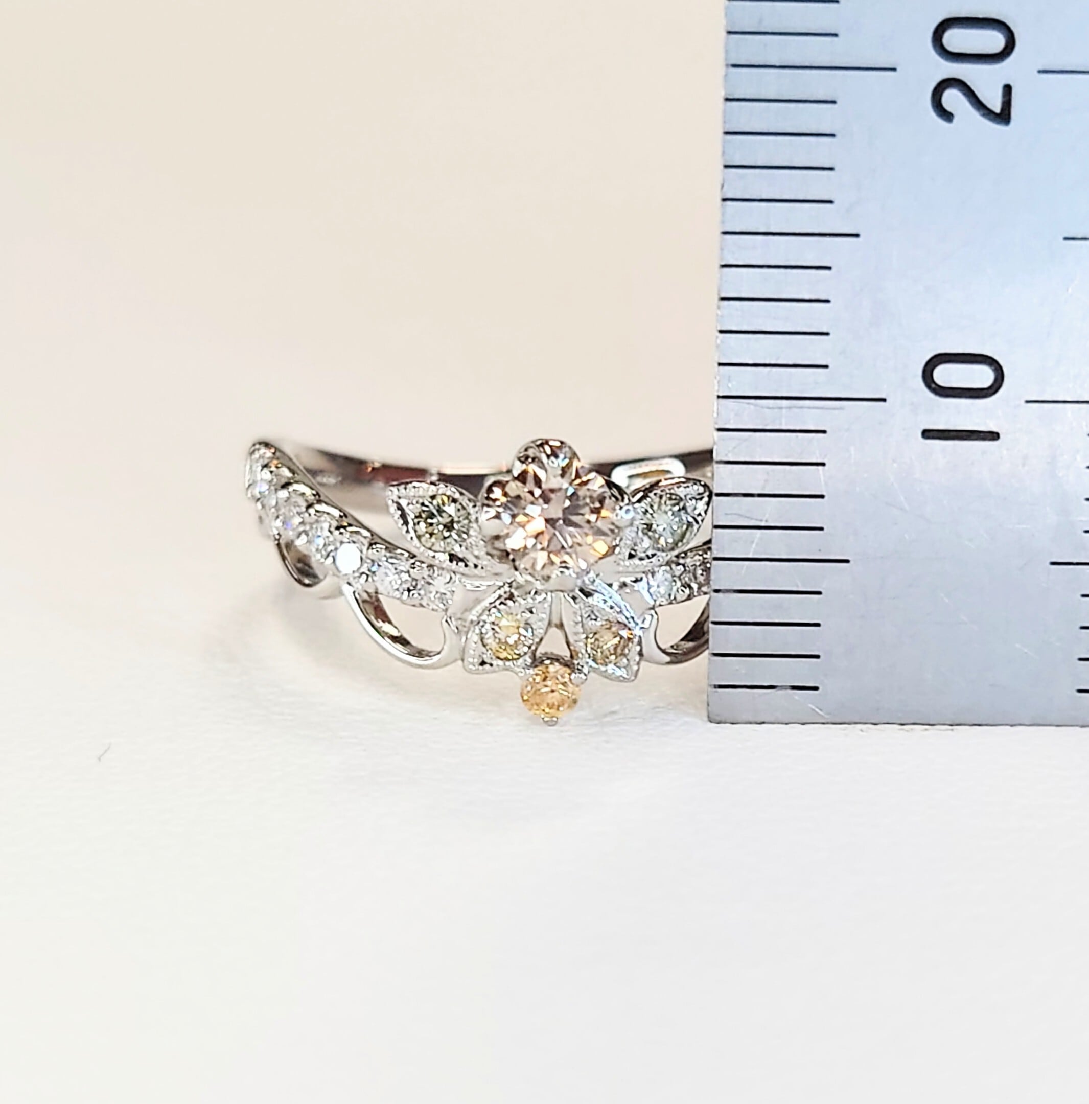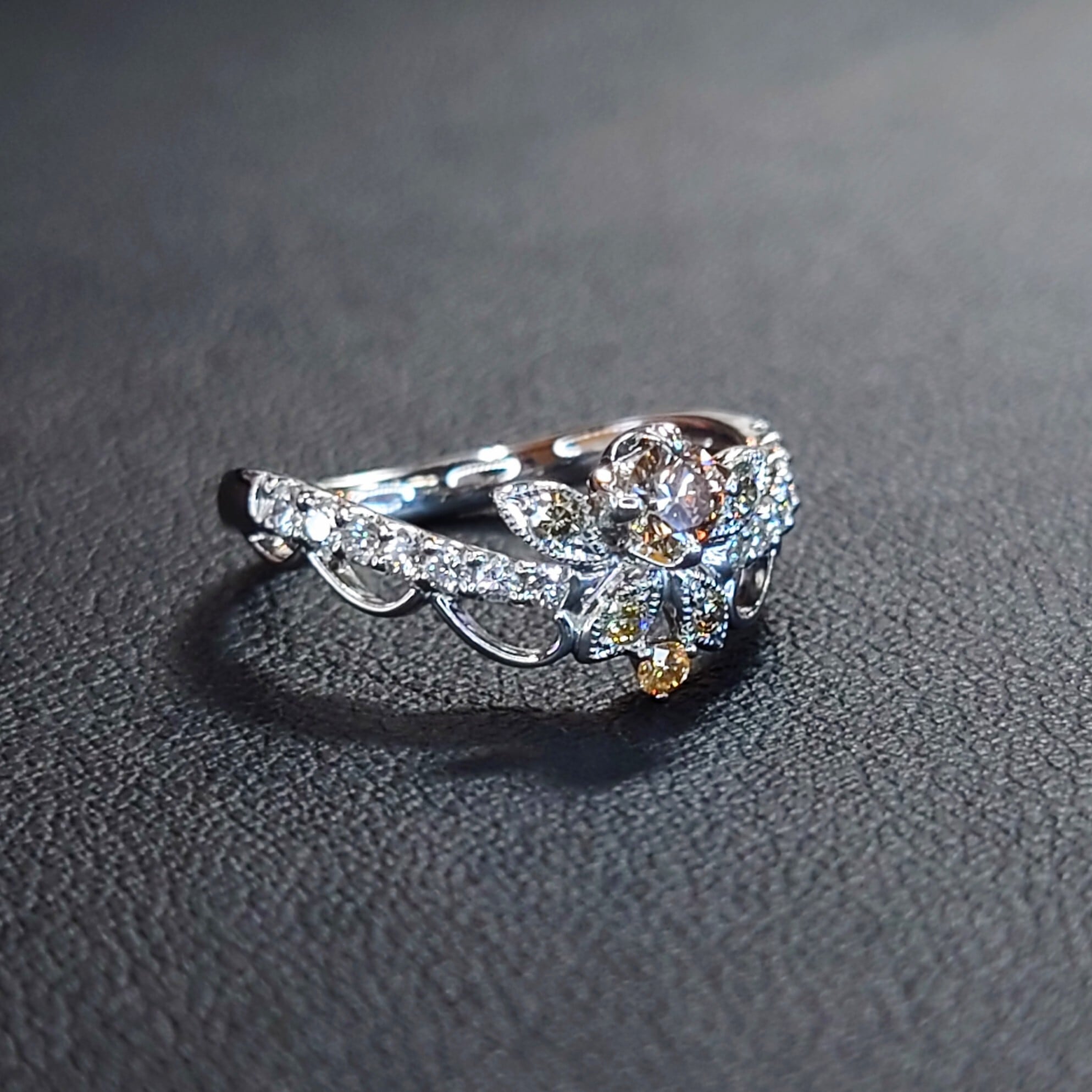 柔らかなライトブラウンが花のように咲き誇る、上品で可憐なダイヤモンドリング。