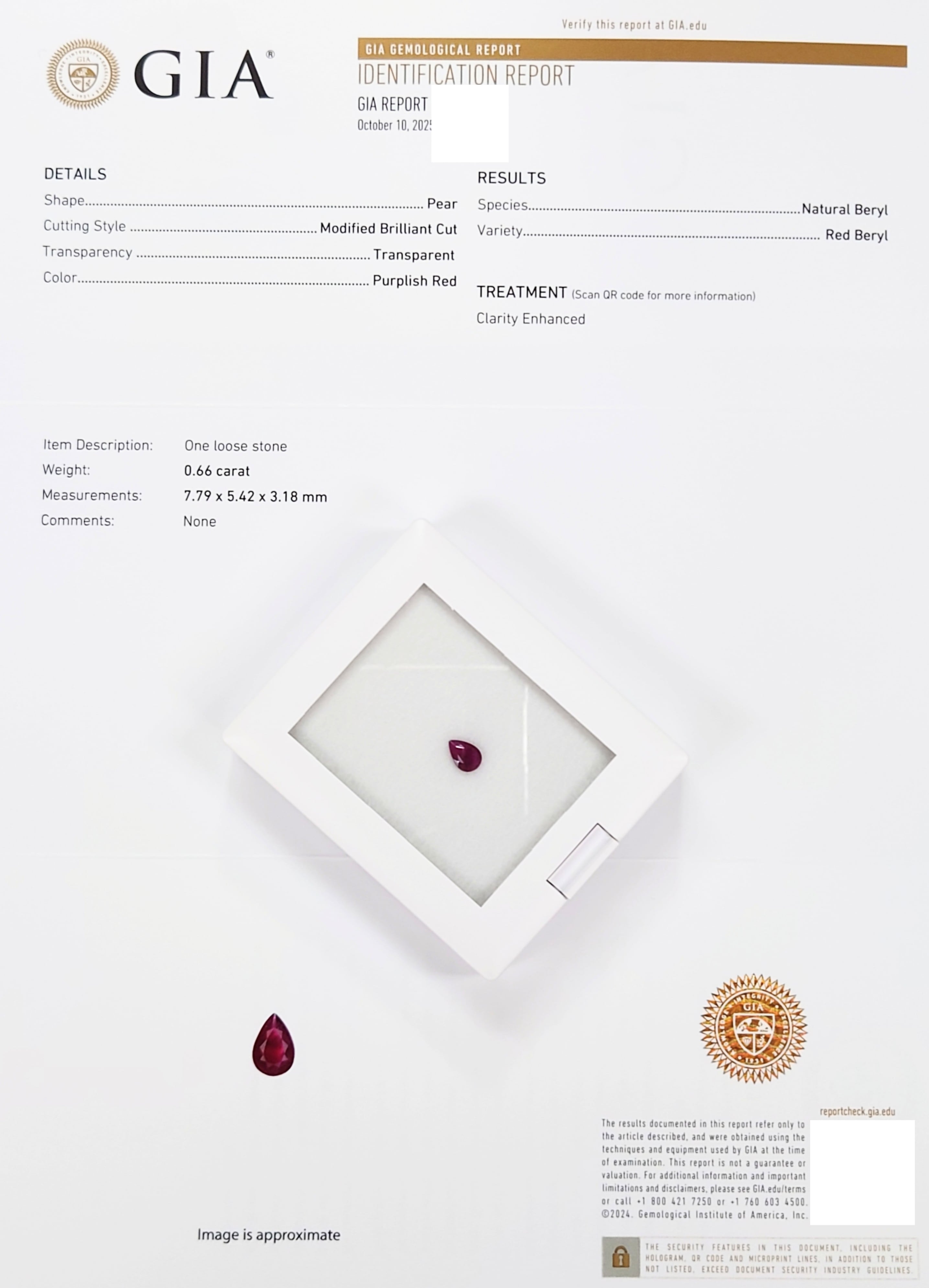 レッドベリル 0.66ct(GIA鑑別書付)☆☆☆