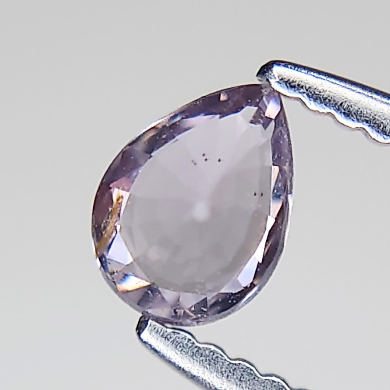 本品は 約0.130ct、グレーイッシュパープルの上品な色合いを持ち、光の加減で柔らかな藤色やライラックを思わせる輝きを放ちます。透明感があり、細かなインクルージョンを含みつつも、その希少性ゆえにコレクション価値は極めて高い逸品です。