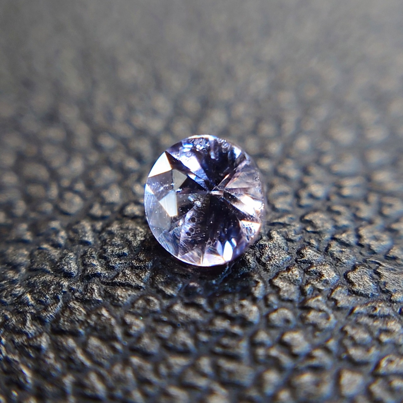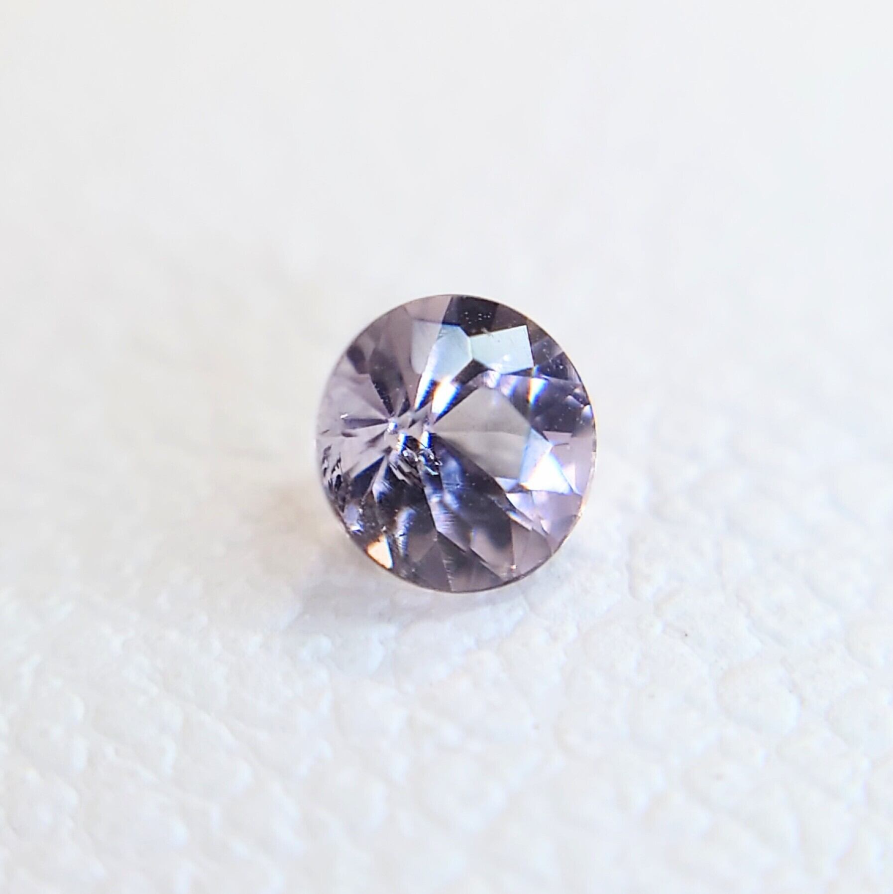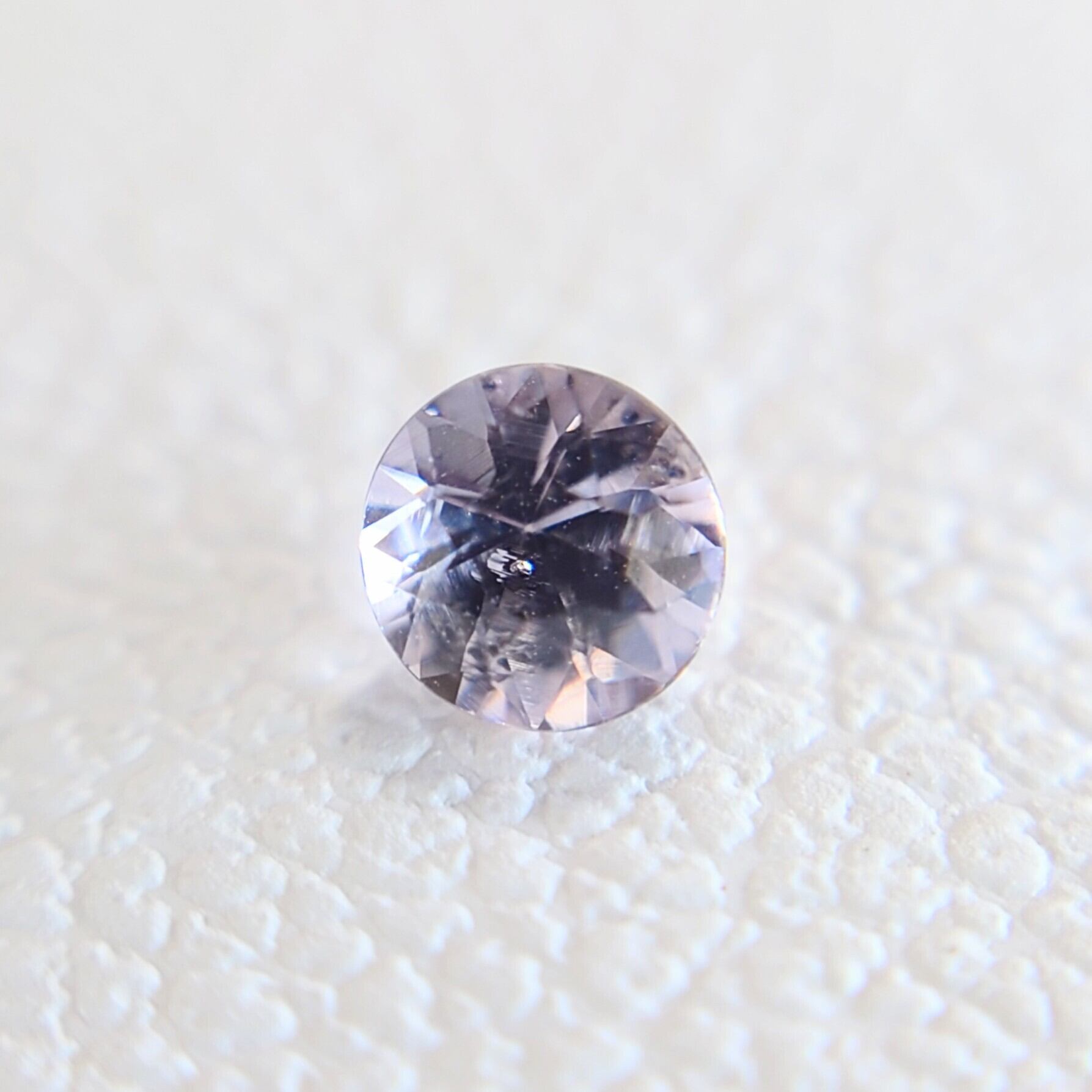 本品は 約0.105ct、グレーイッシュパープルの上品な色合いを持ち、光の加減で柔らかな藤色やライラックを思わせる輝きを放ちます。透明感があり、細かなインクルージョンを含みつつも、その希少性ゆえにコレクション価値は極めて高い逸品です。