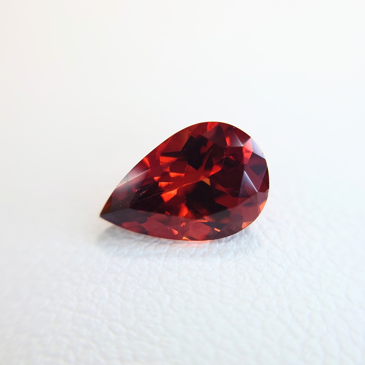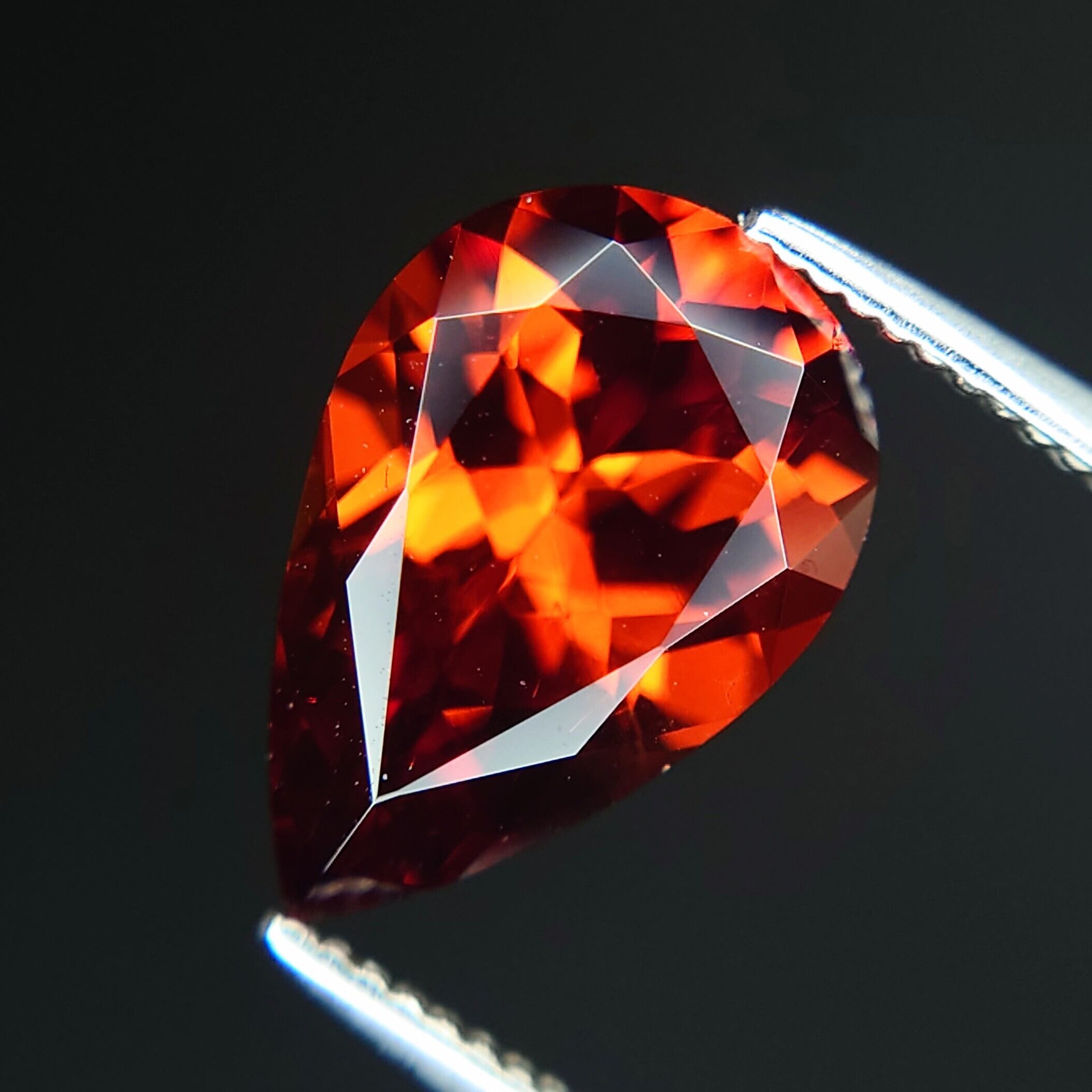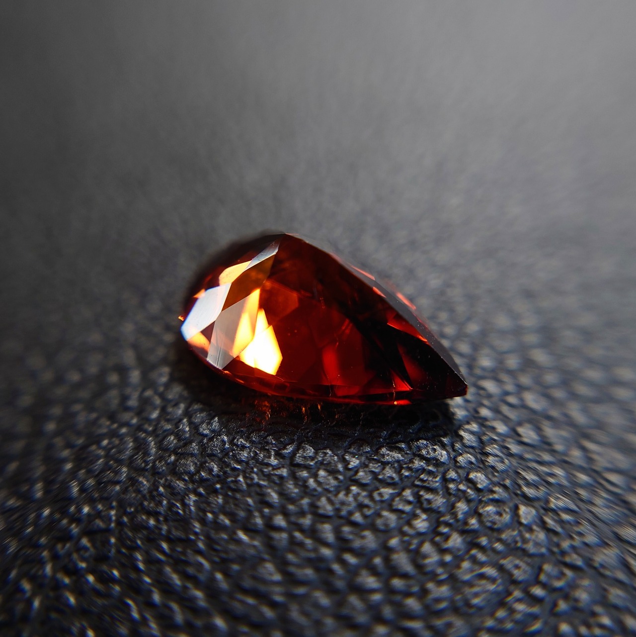 深みのあるレッドの中に、オレンジの炎が差し込むように煌めく、アルマンディンとスペサルティンの中間組成をもつ美しいガーネット。