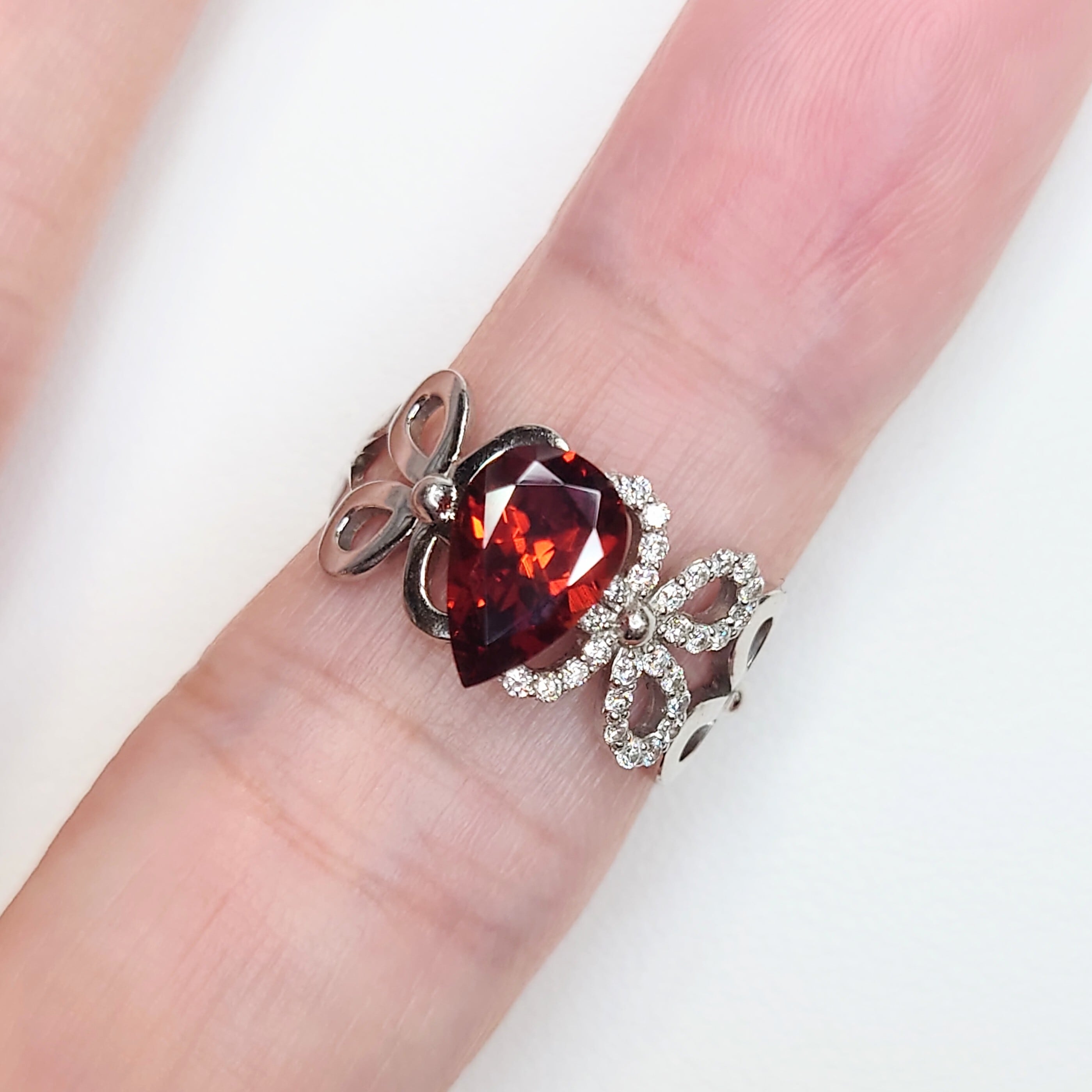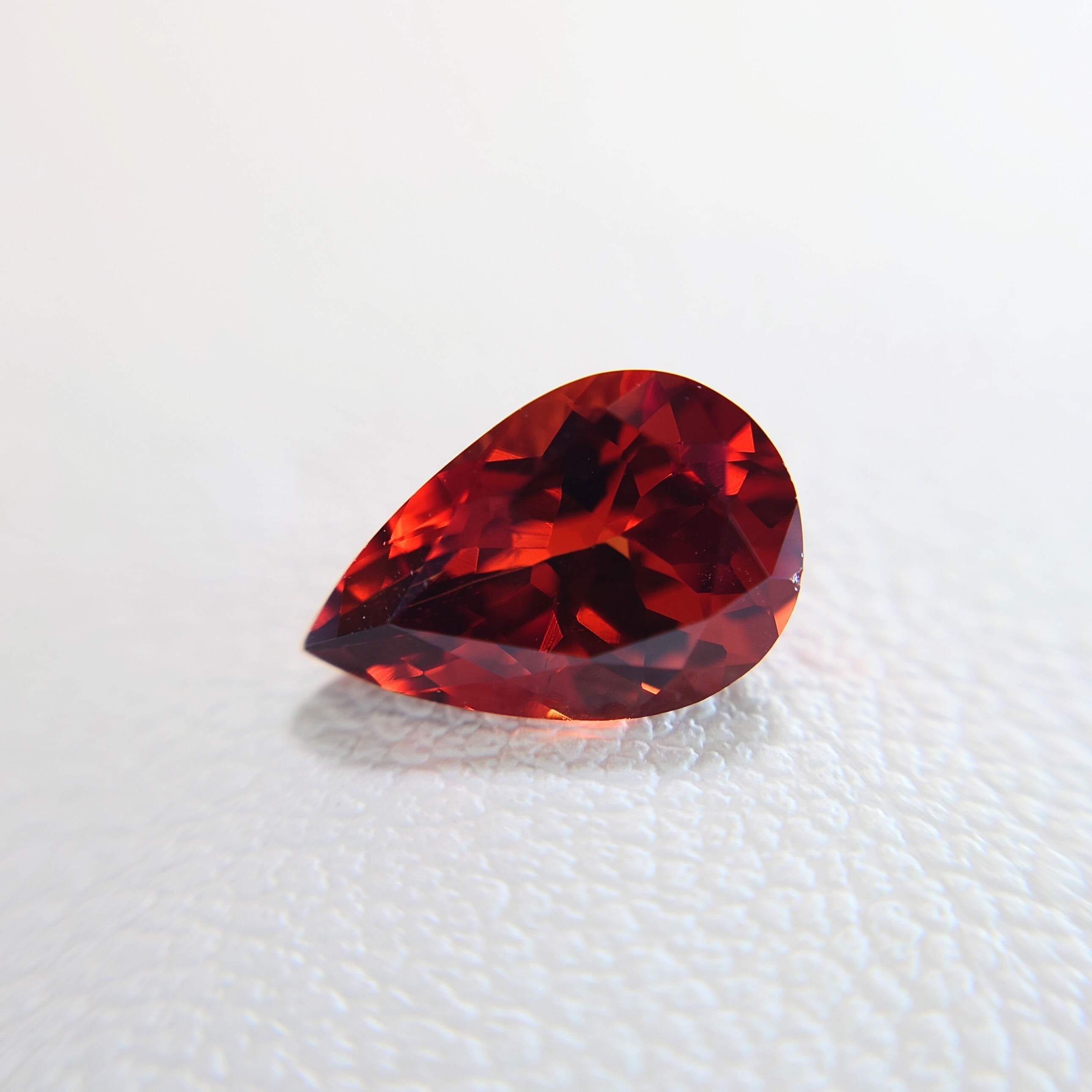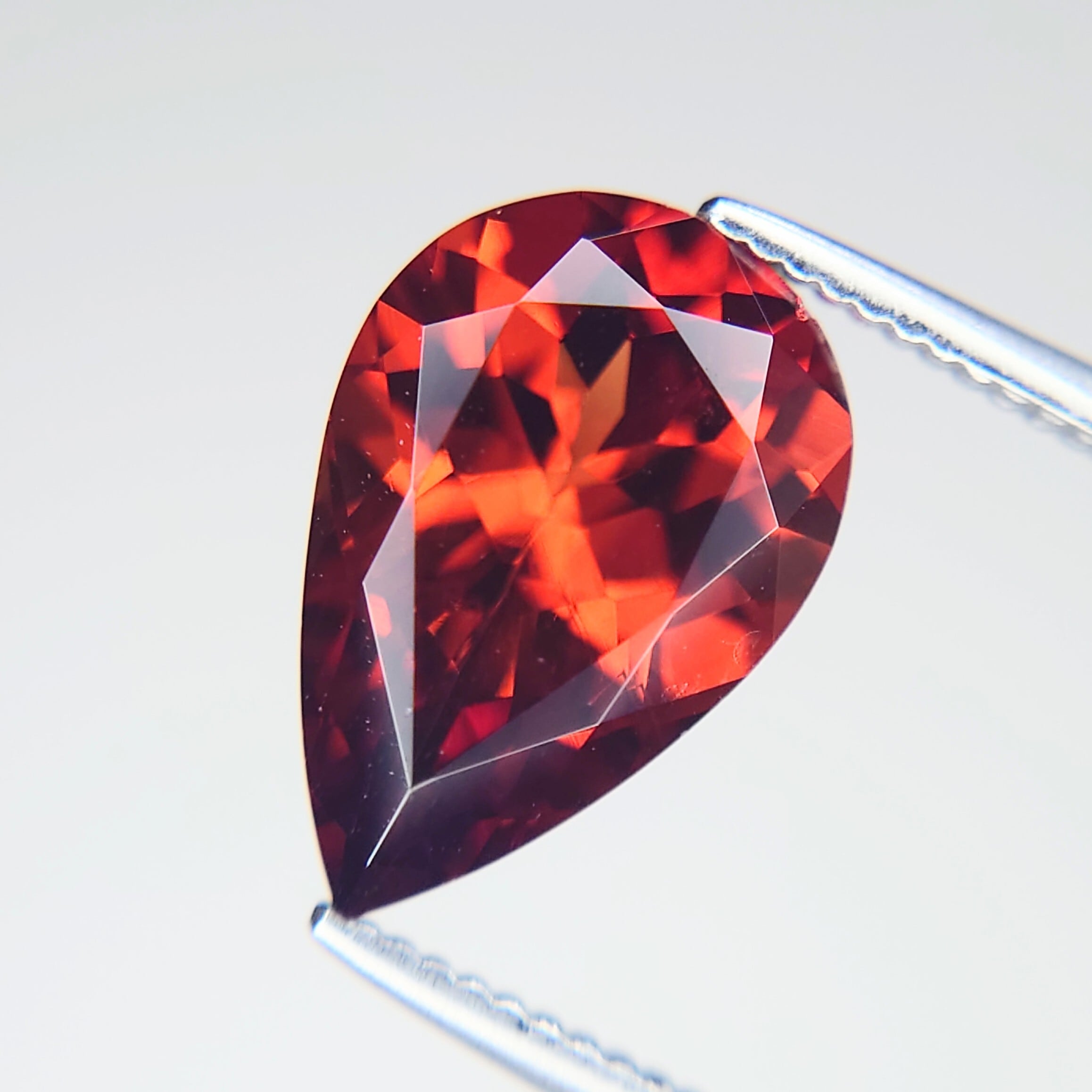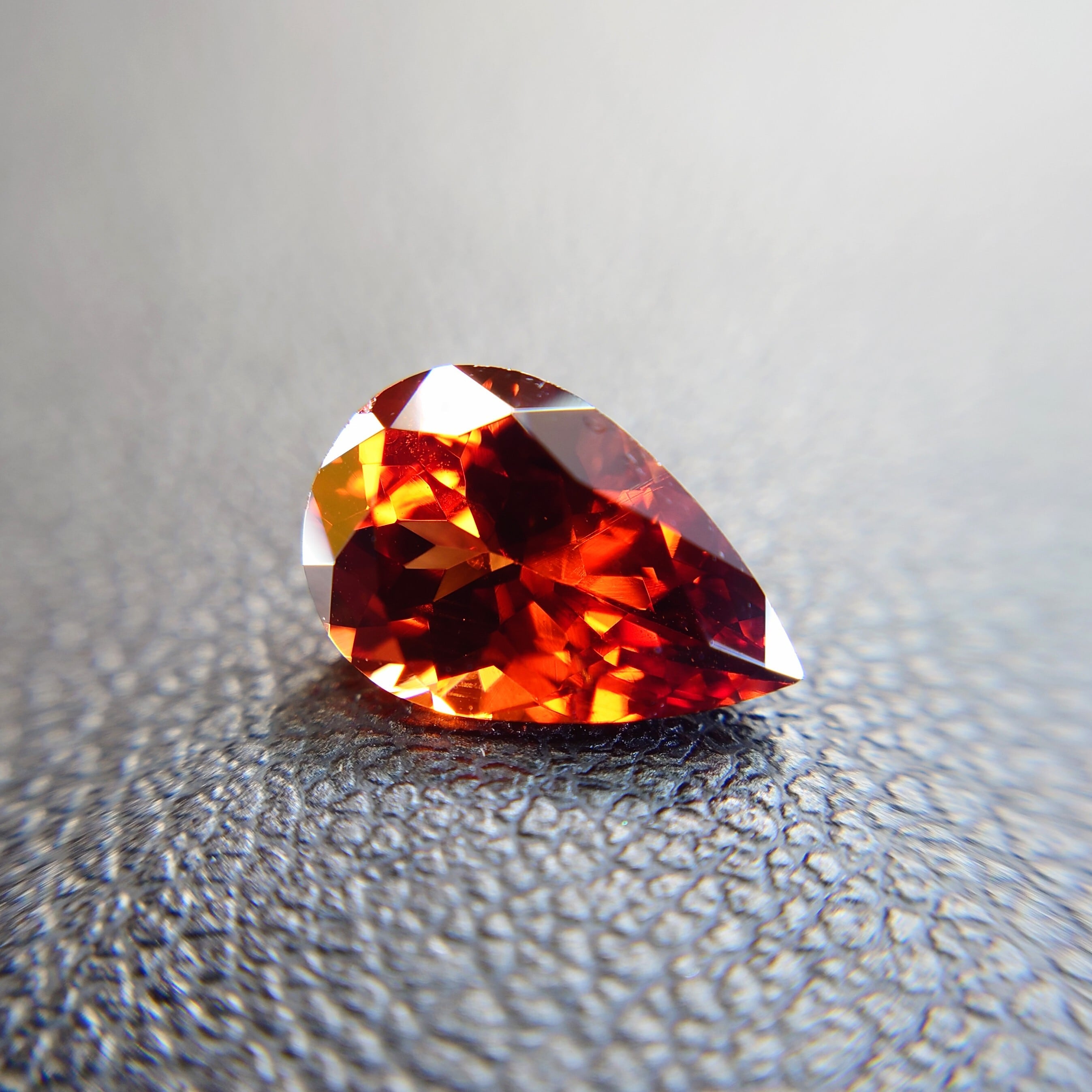 深みのあるレッドの中に、オレンジの炎が差し込むように煌めく、アルマンディンとスペサルティンの中間組成をもつ美しいガーネット。