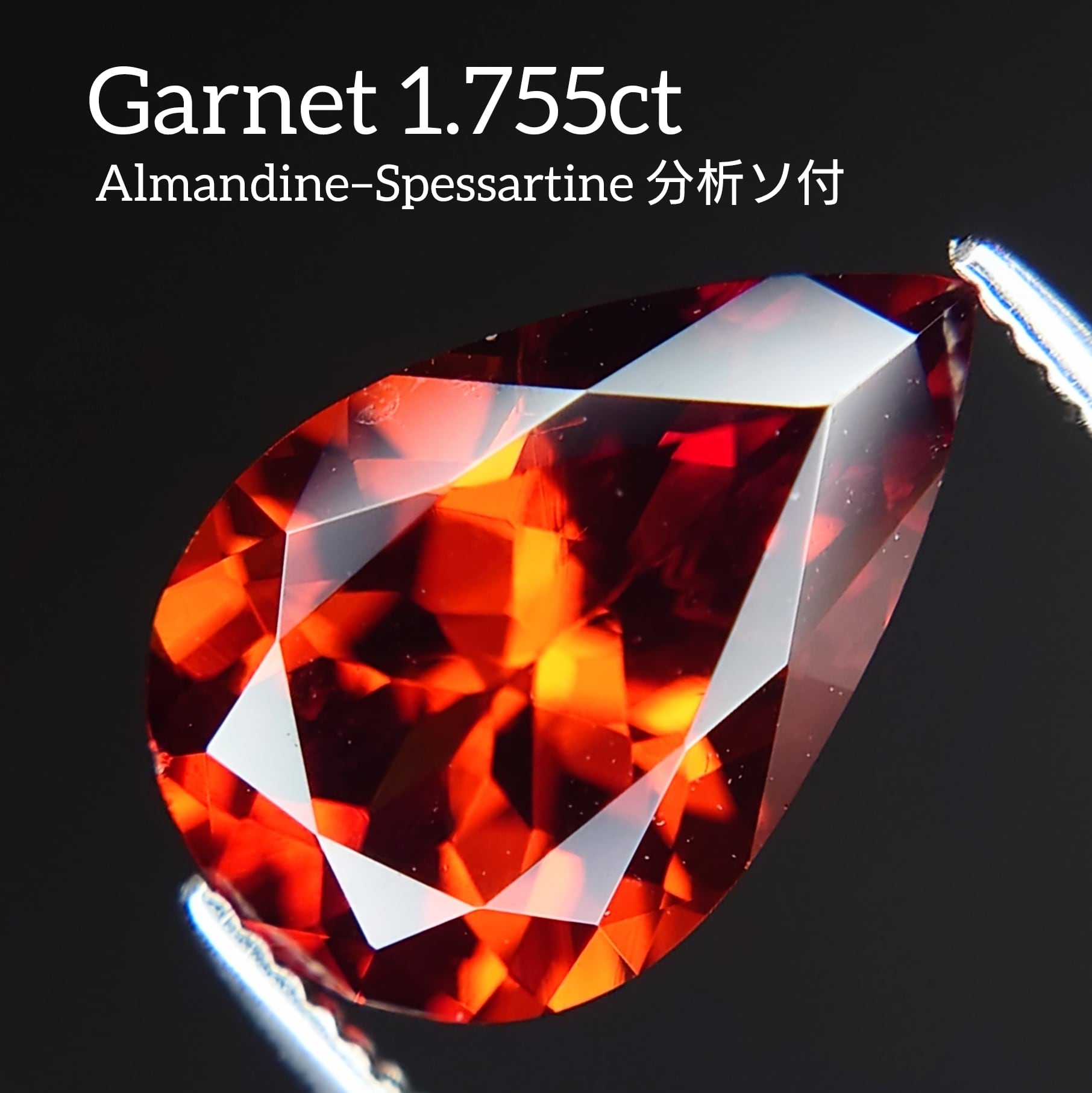 Garnet 1.755ct Almandine–Spessartine 成分分析ソ付 ルース☆
