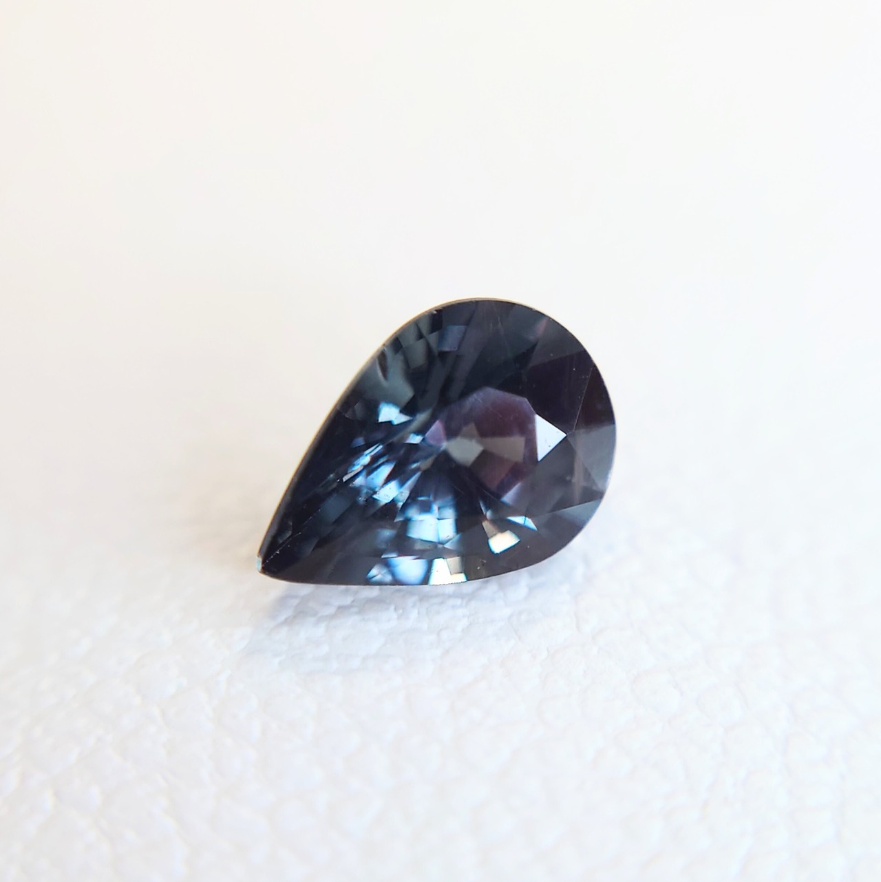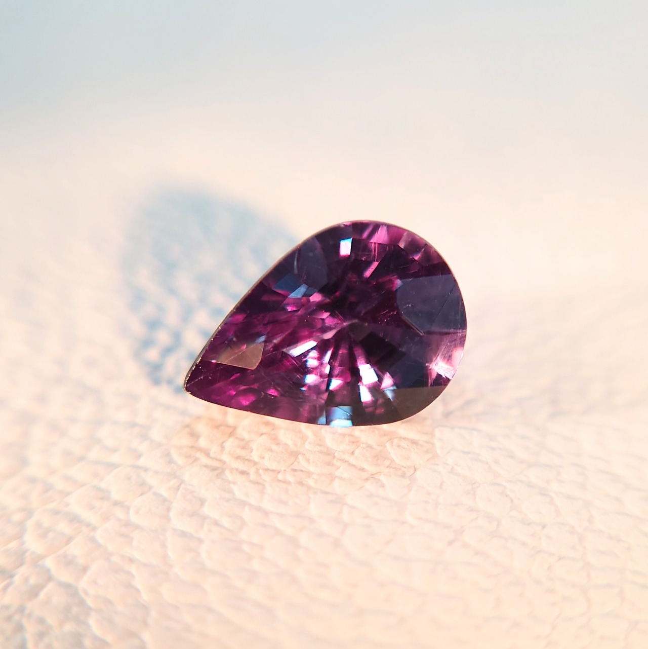 昼光下では深く青みを帯びたネイビーブルー、白熱灯のもとでは鮮やかなレディッシュパープルへと劇的に表情を変える、マダガスカル・ベキリー産のカラーチェンジガーネット。
