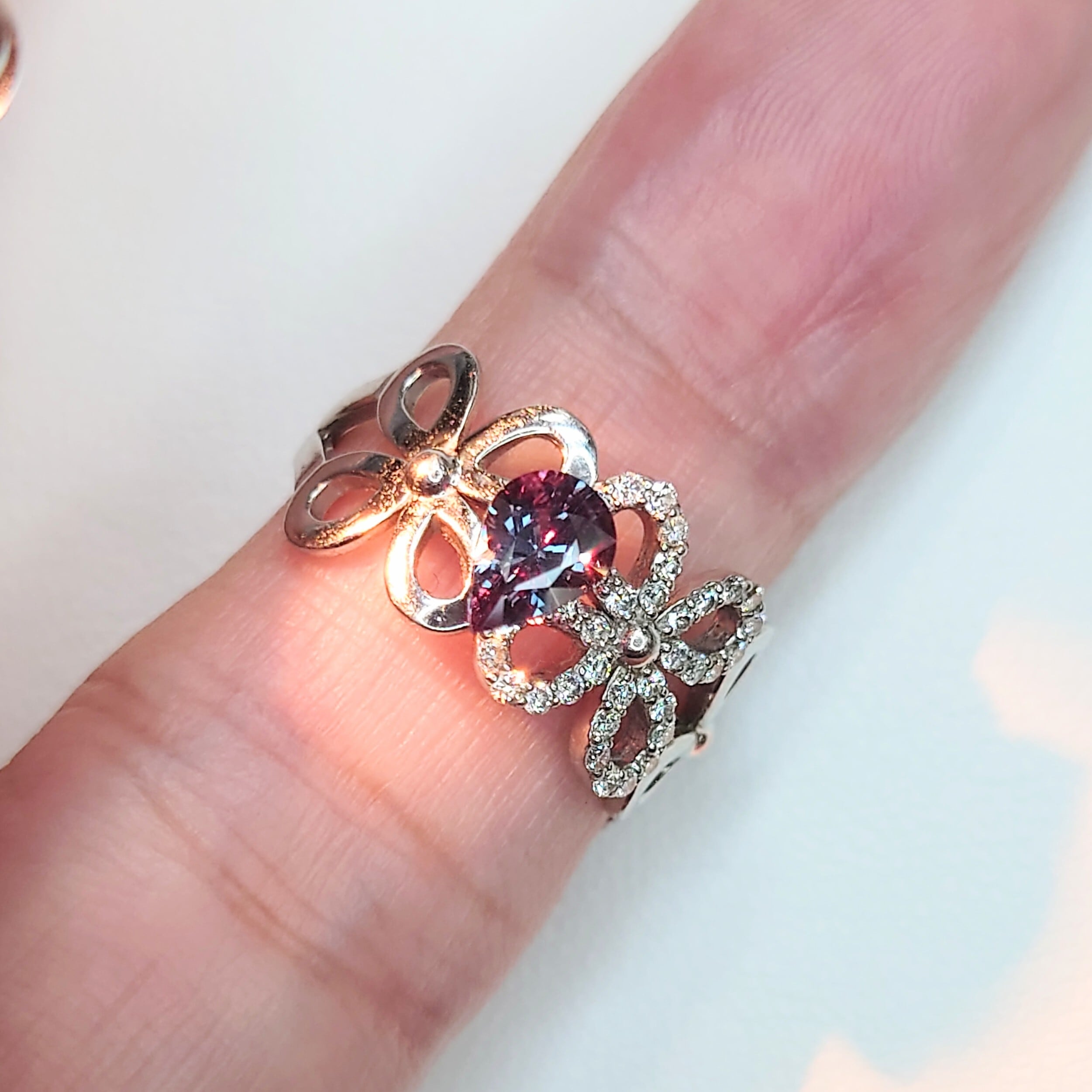 一粒で二つの宝石を楽しめるかのような魅力を持ち、アレキサンドライトを思わせる色変化は、観察する光源によって異なる印象を放ちます。