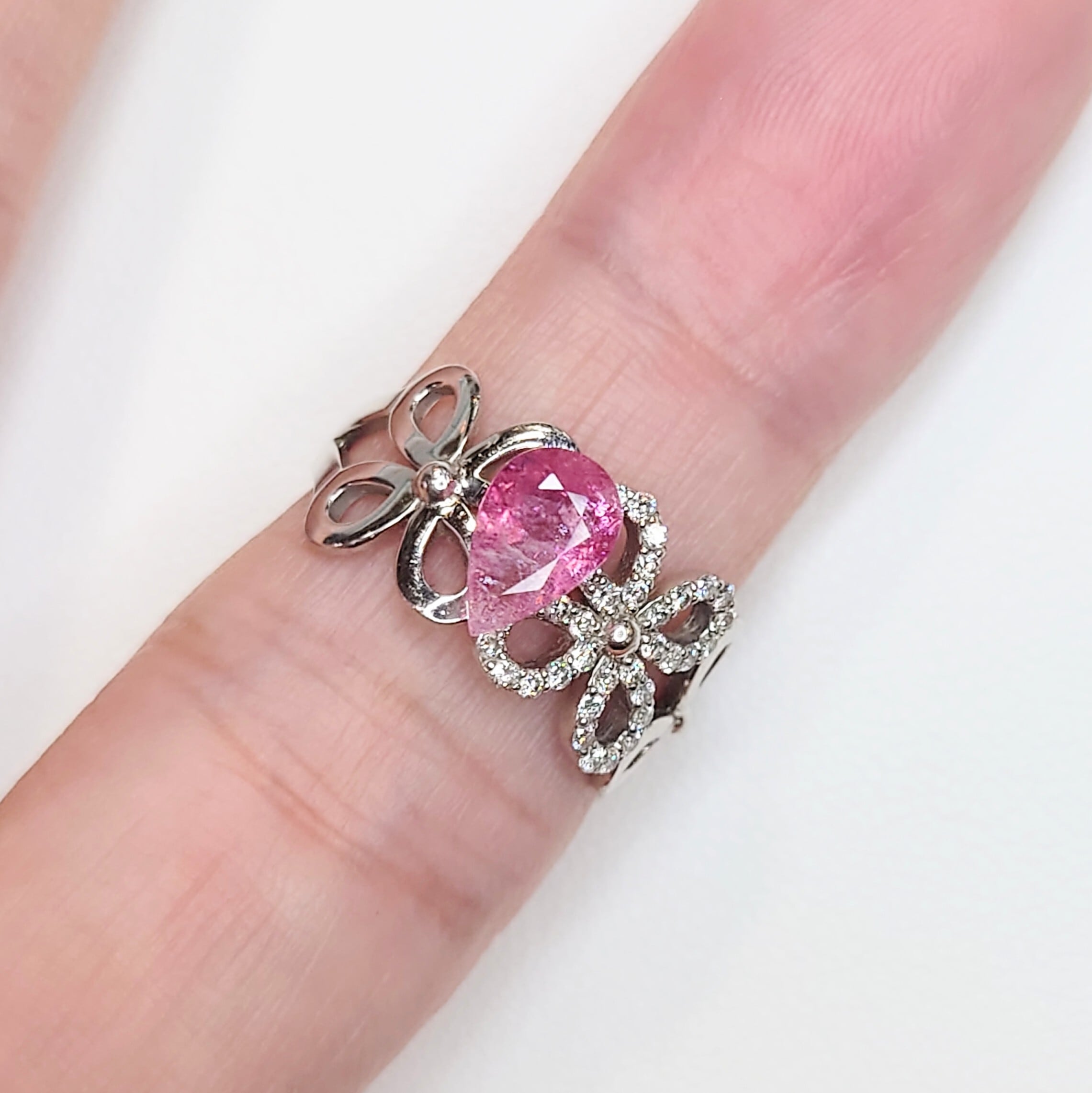 0.793ctのペアシェイプ・バイカラートルマリンは、柔らかな色の移ろいが美しい一石です。