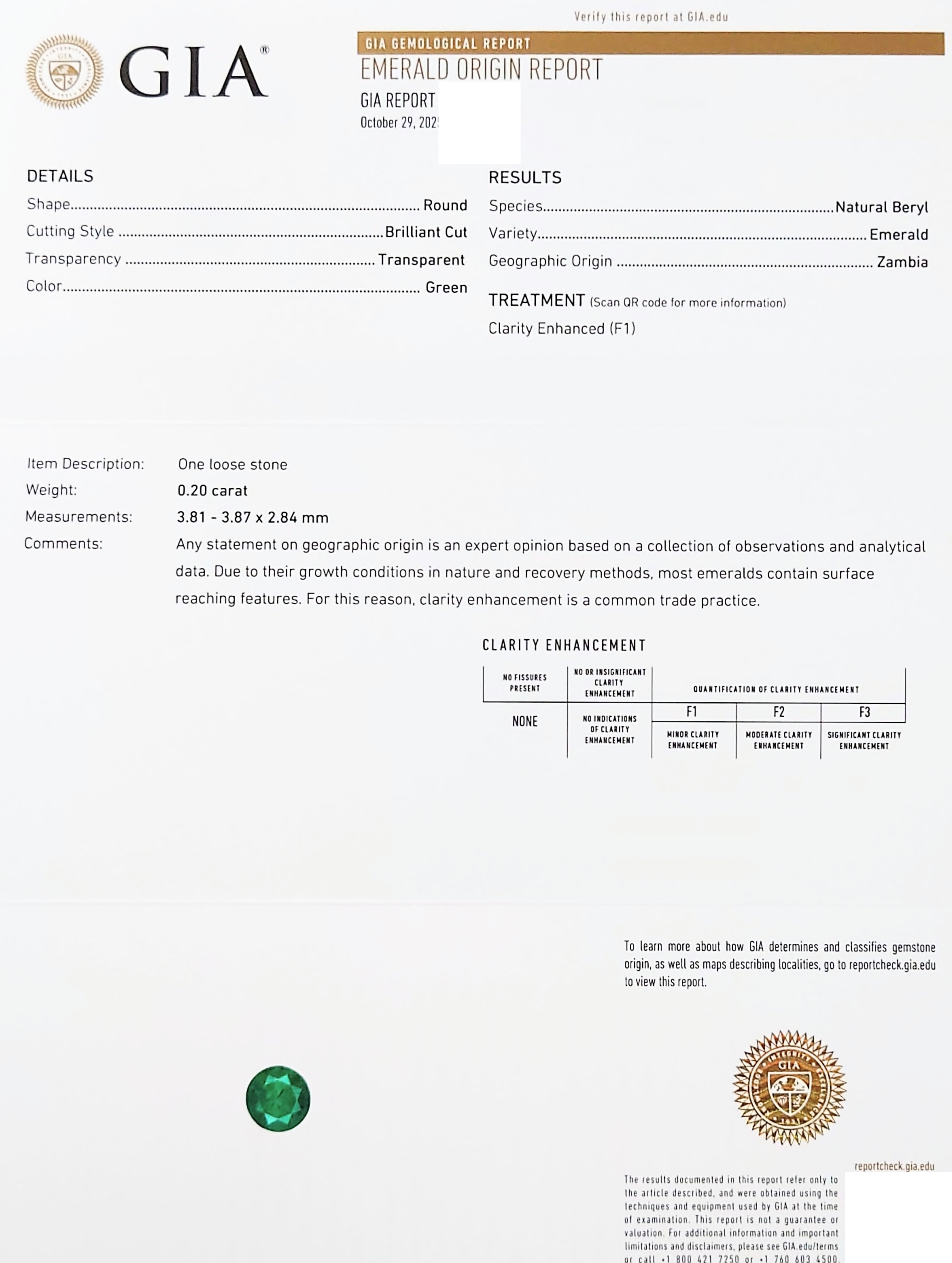 希少 Emerald 0.20ct F-1 Zambia GIA産地鑑別書付 ルース☆