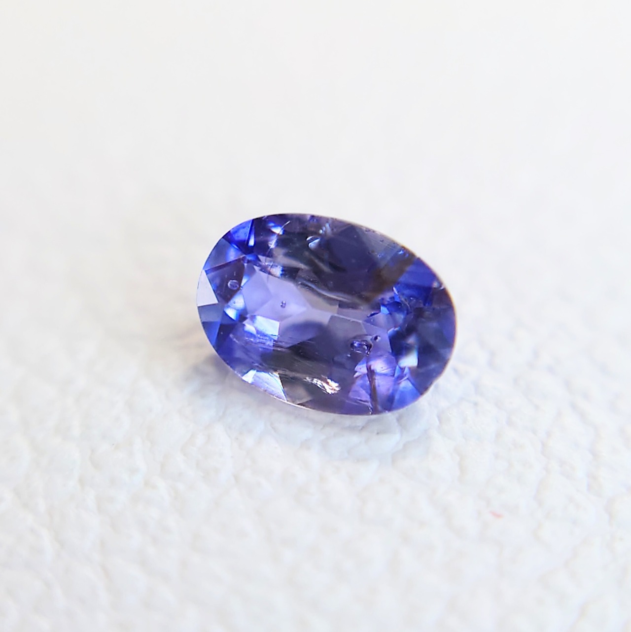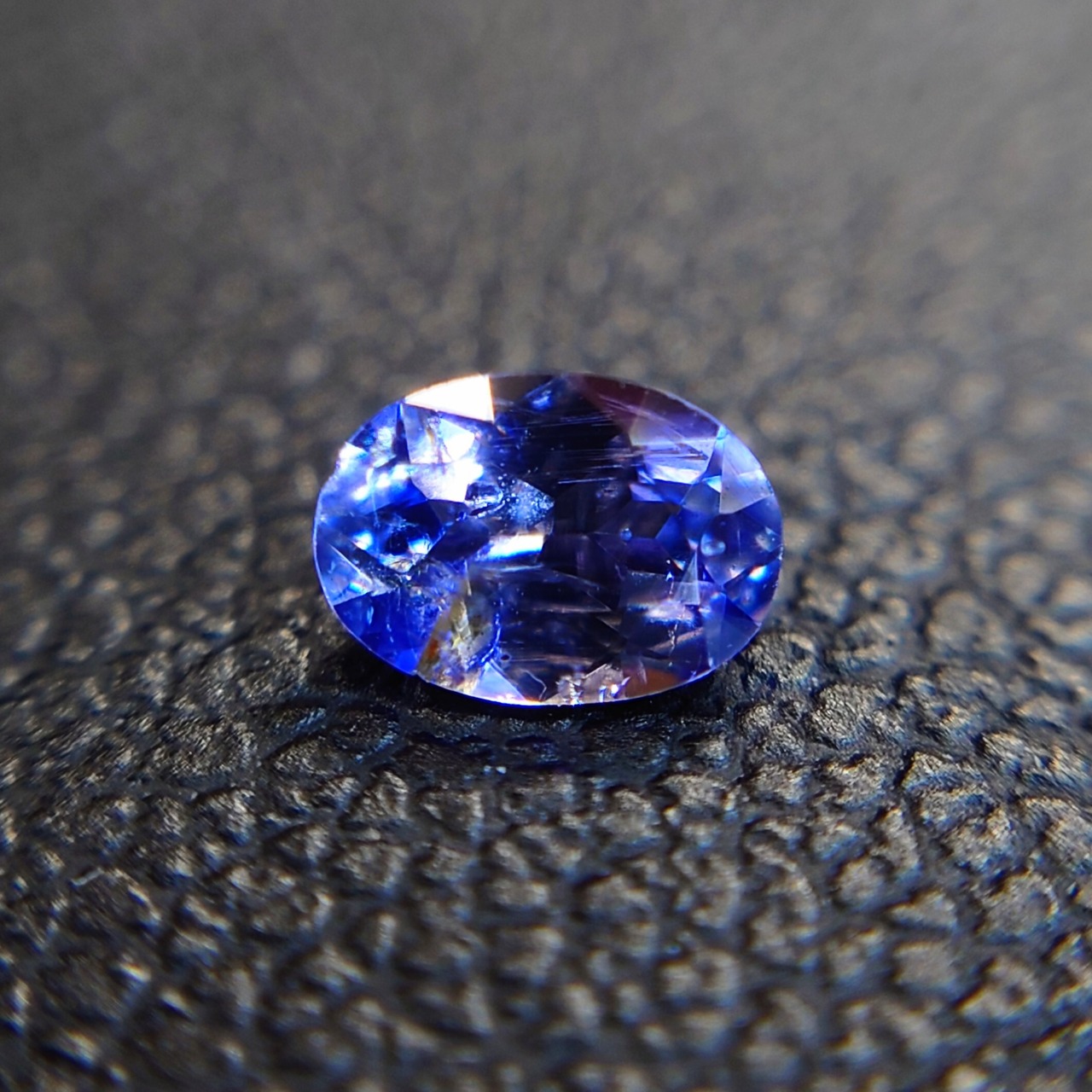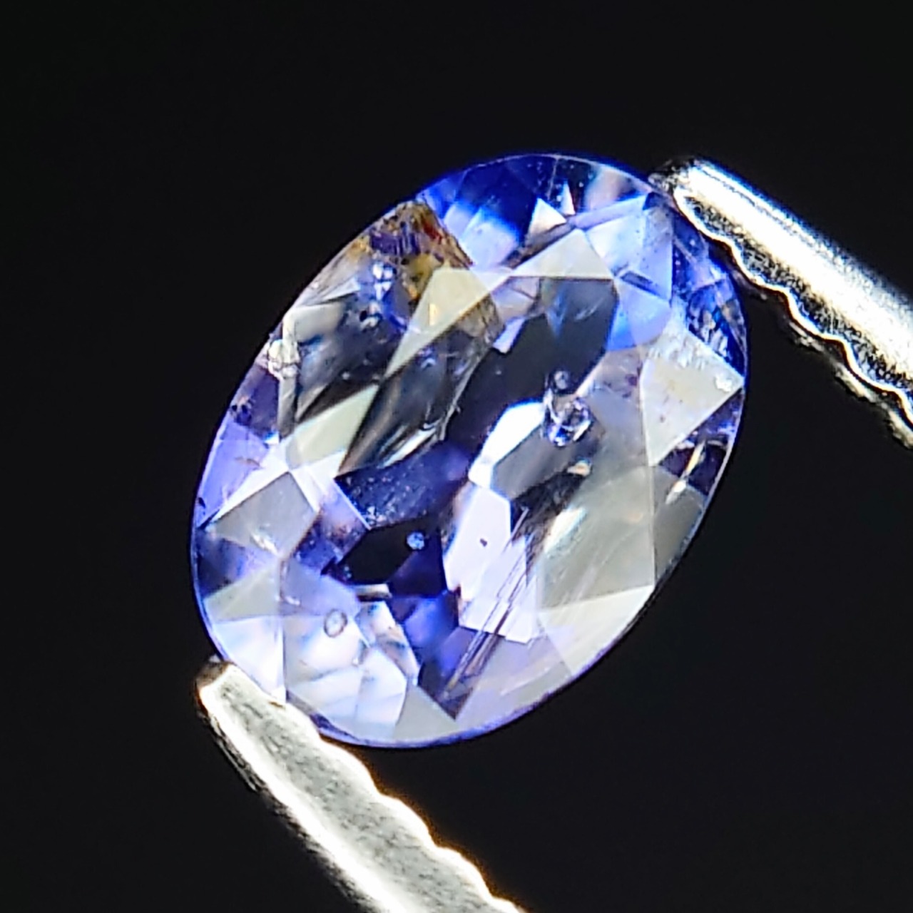 幻想的な紫青の煌めきが印象的な、ファセットカットのデュモルチェライト 0.182ct。