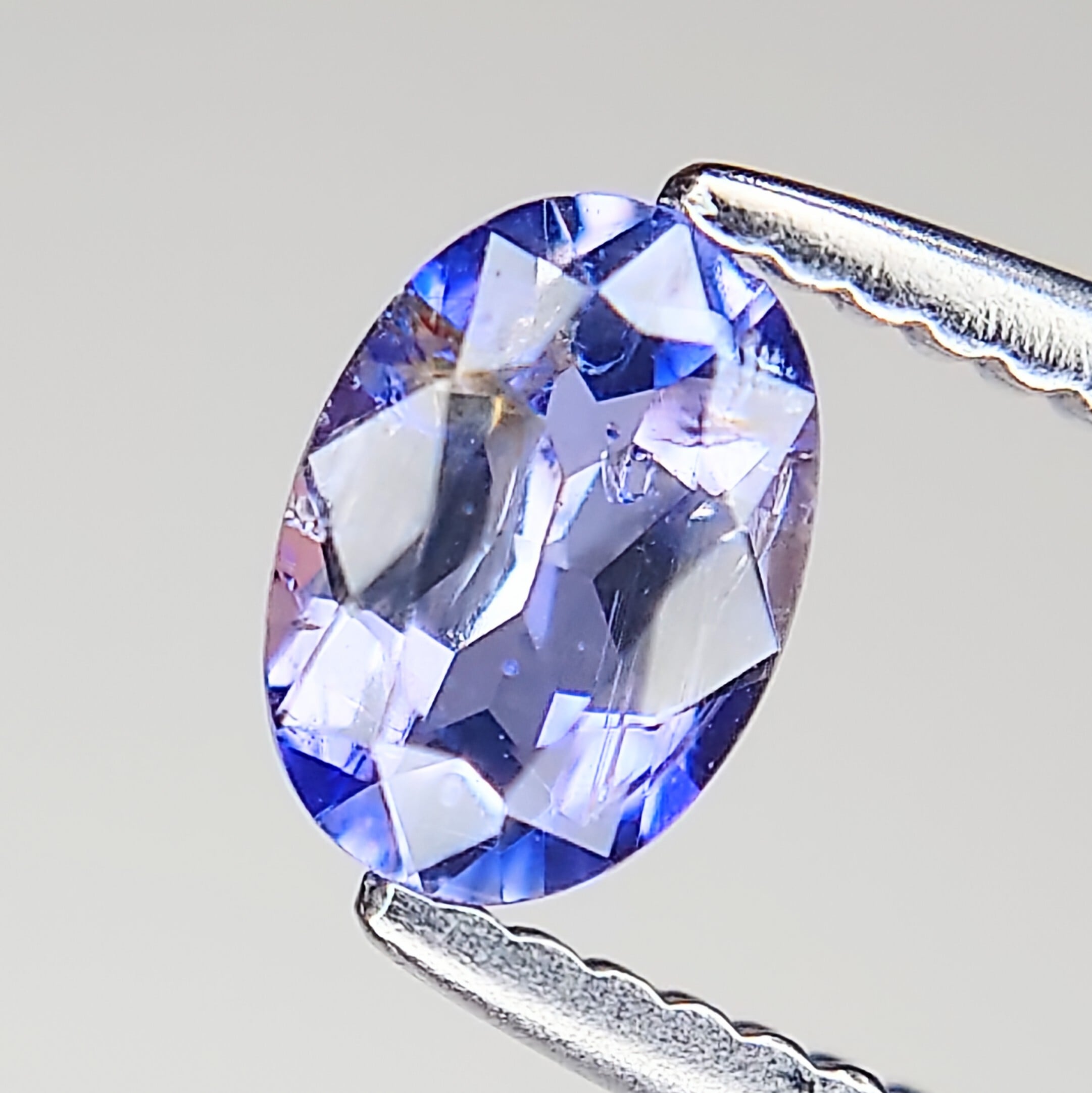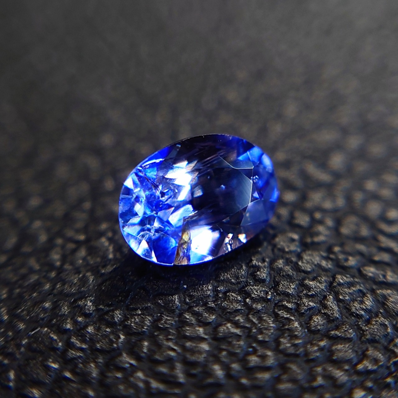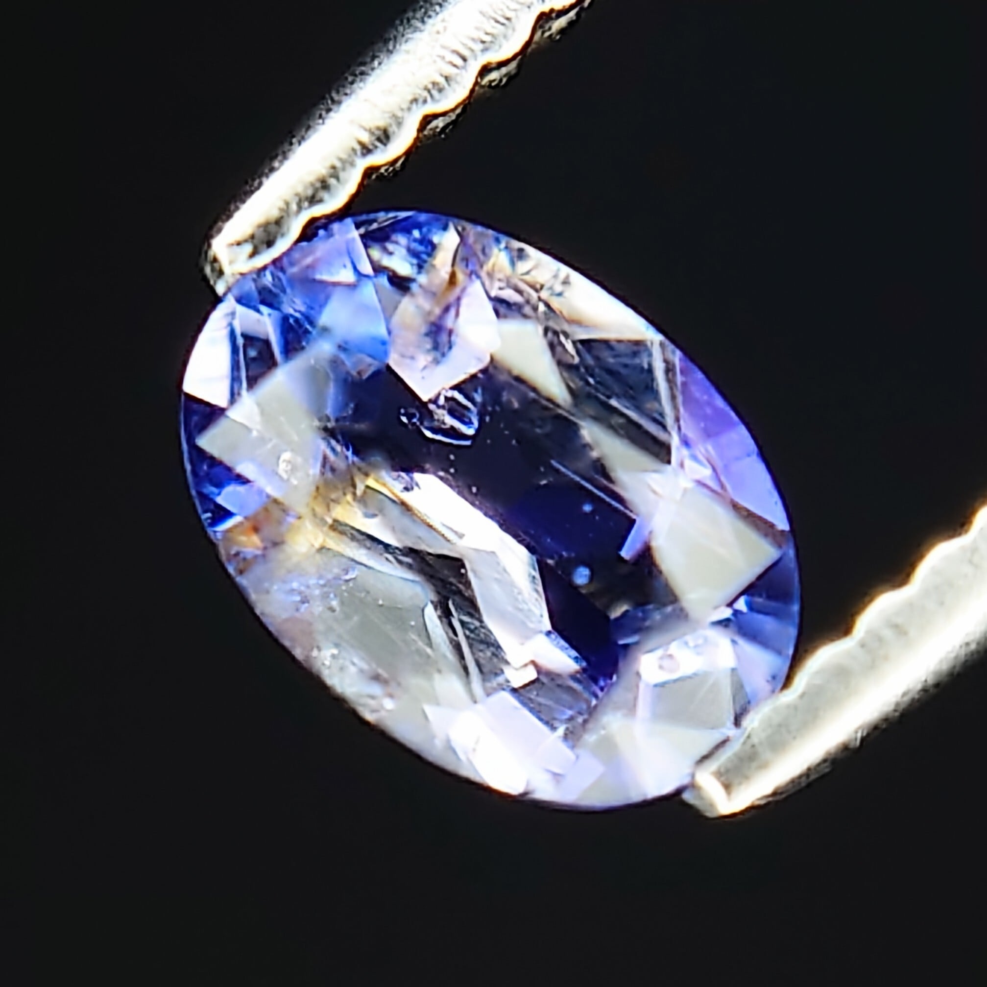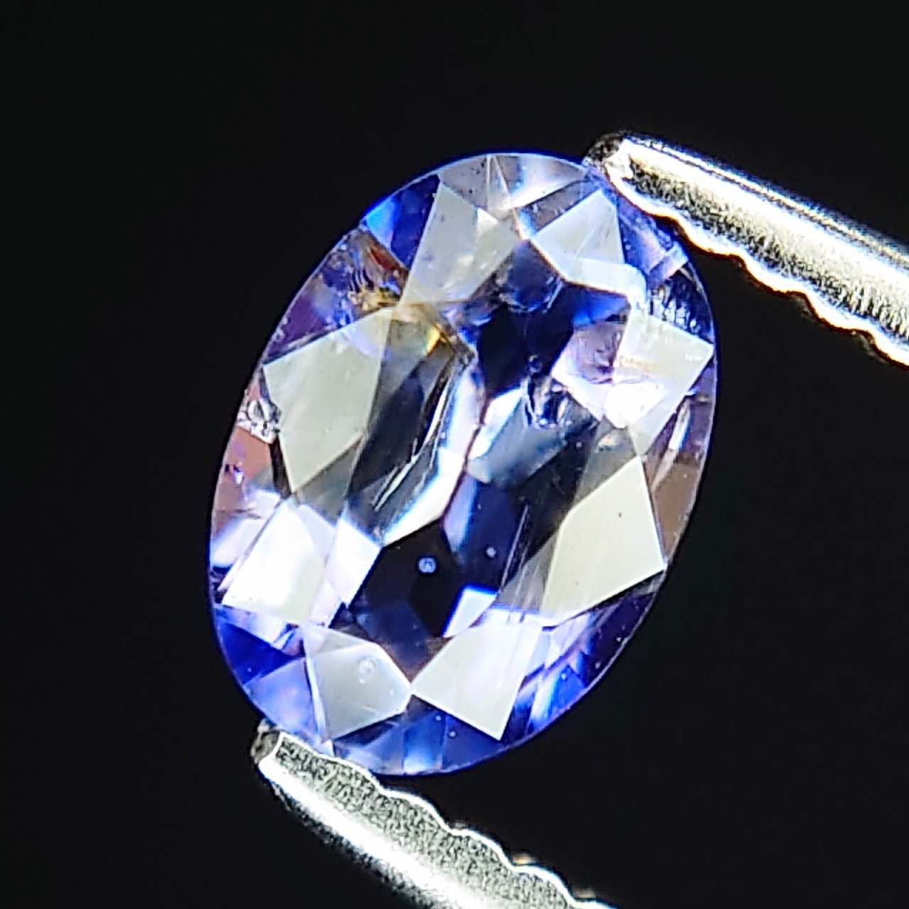 幻想的な紫青の煌めきが印象的な、ファセットカットのデュモルチェライト 0.182ct。