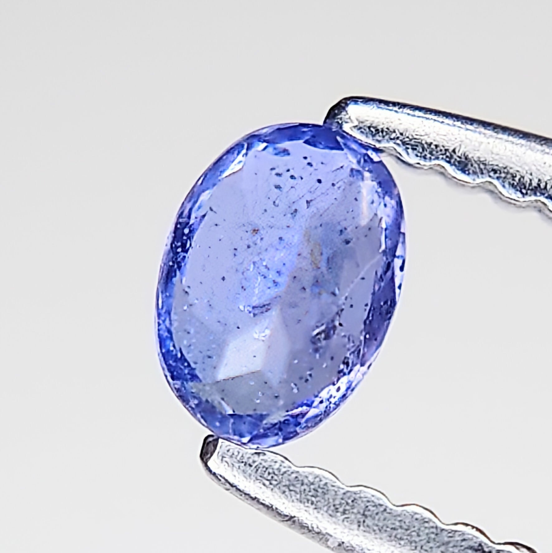 幻想的な紫青の煌めきが印象的な、ファセットカットのデュモルチェライト 0.094ct。