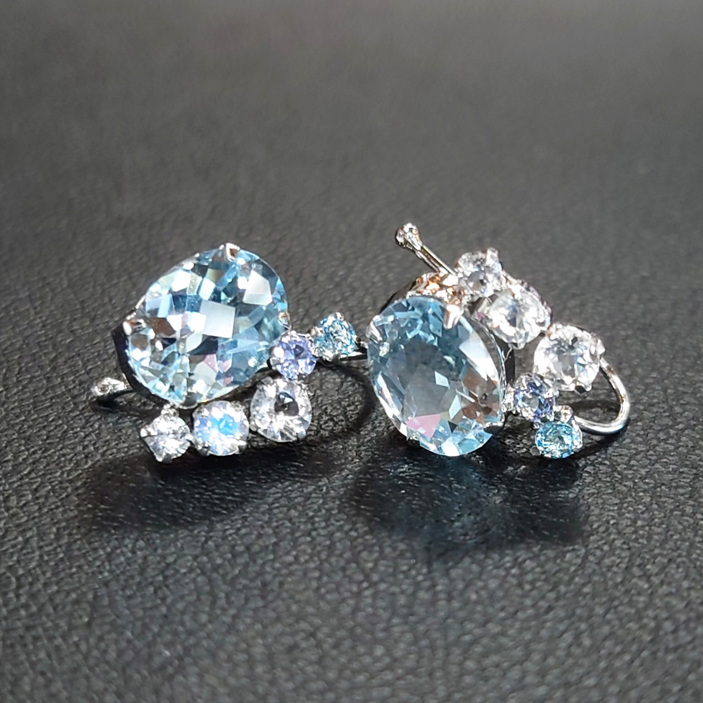 K14WG イヤーカフ/ピアス Blue Topaz/White Topaz/Tanzanite/Blue Moonstone☆