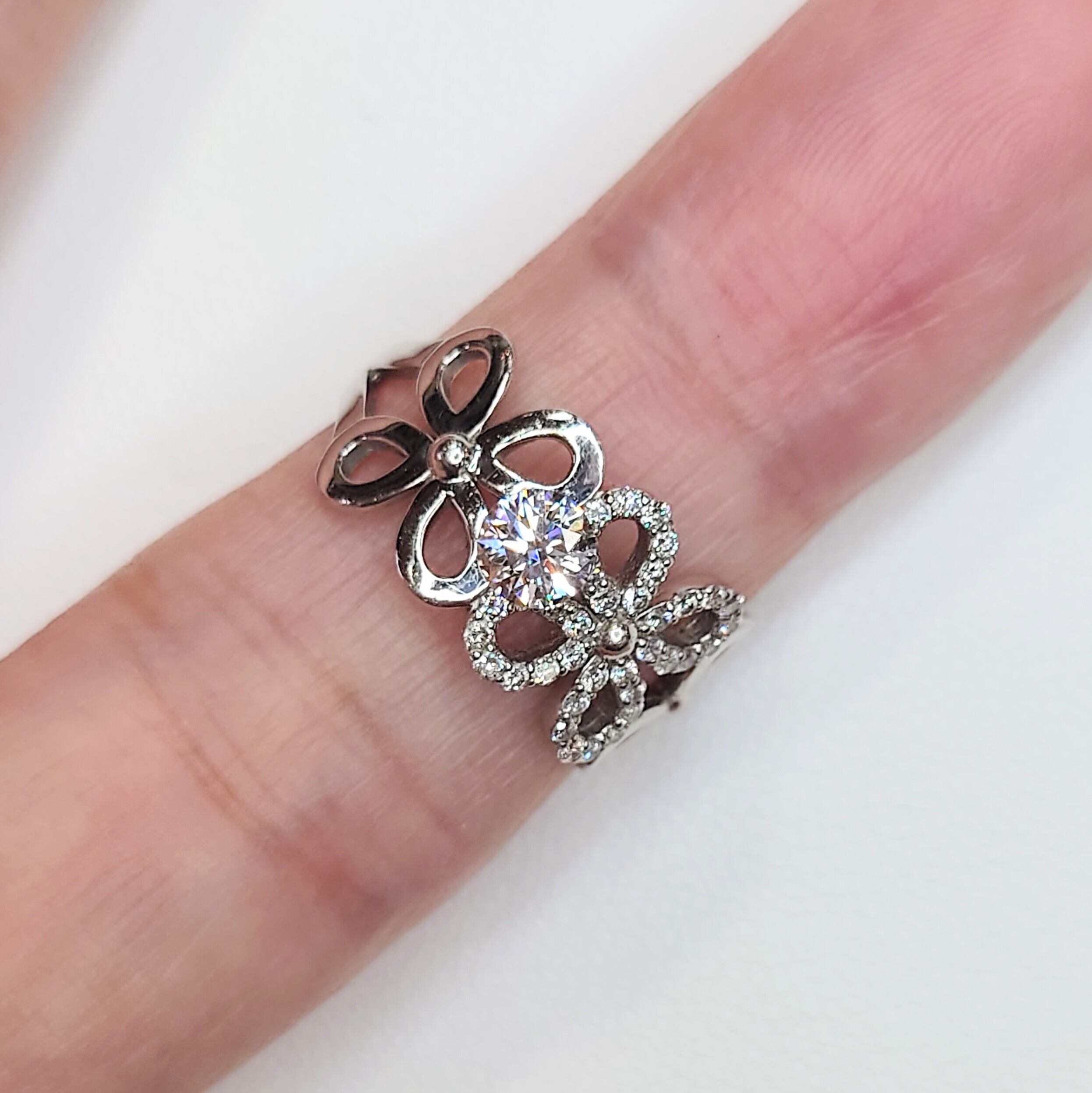 カラーは無色域の Eカラー、クラリティは極めて内包物の少ない VVS2。上位グレードならではの澄み切った輝きをお楽しみいただけます。