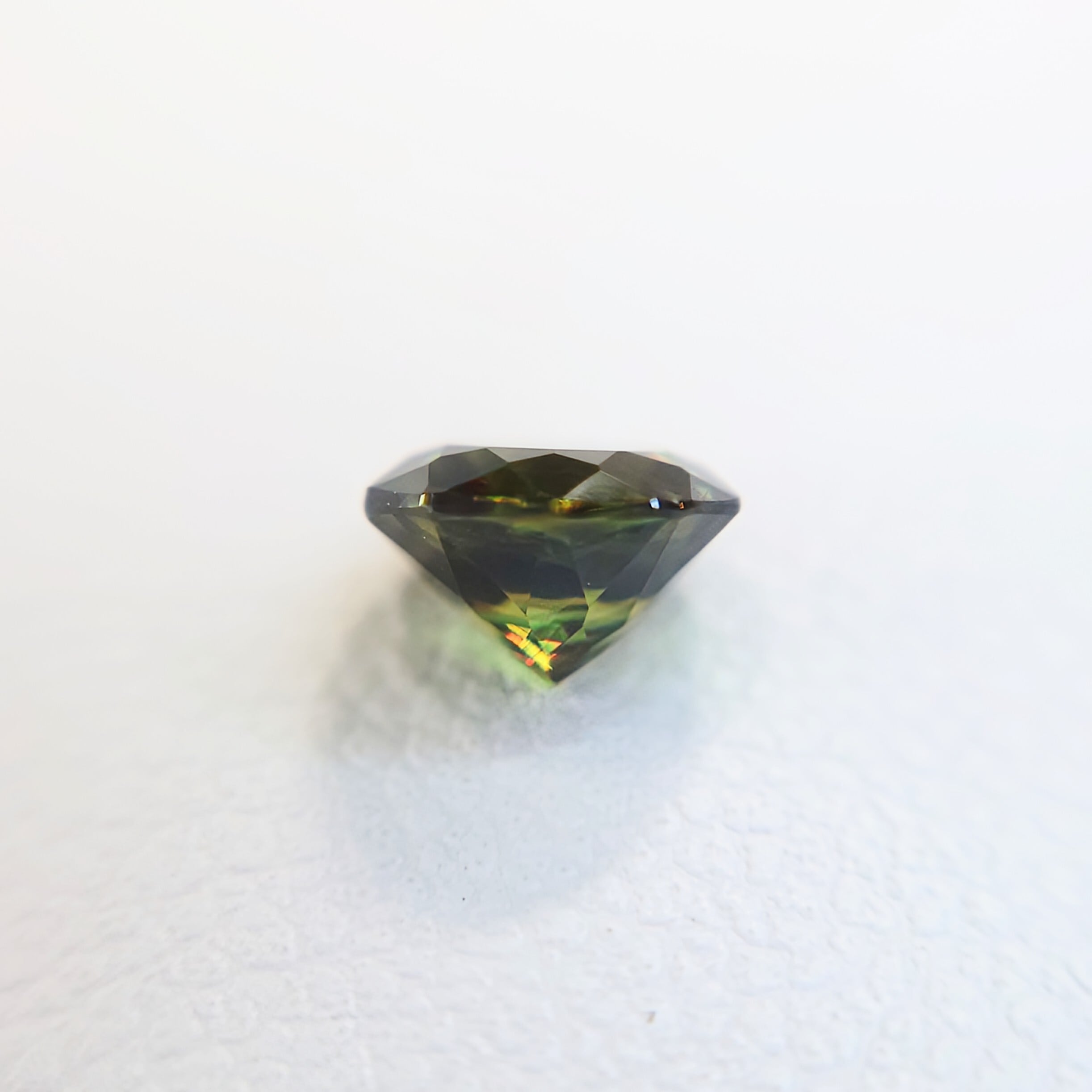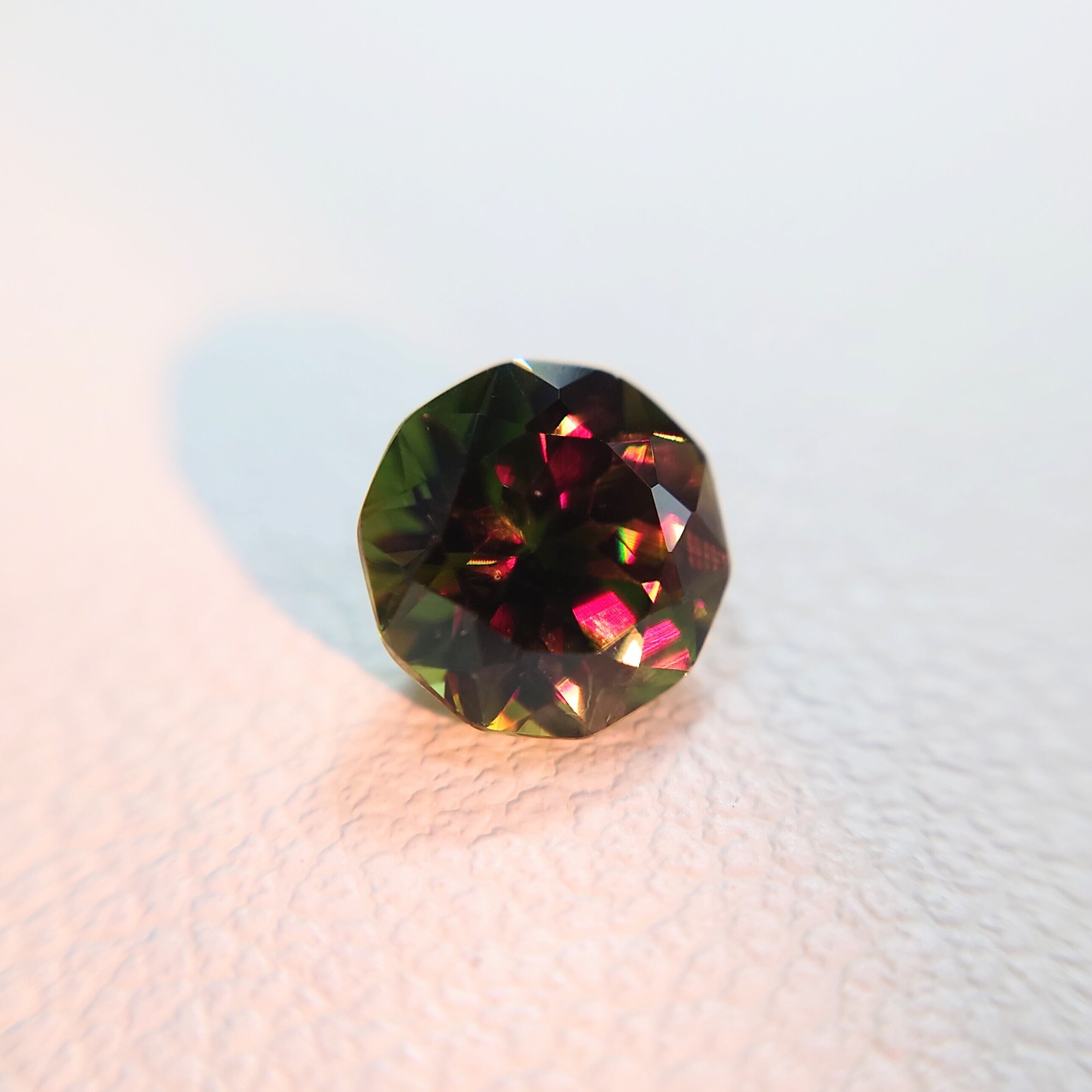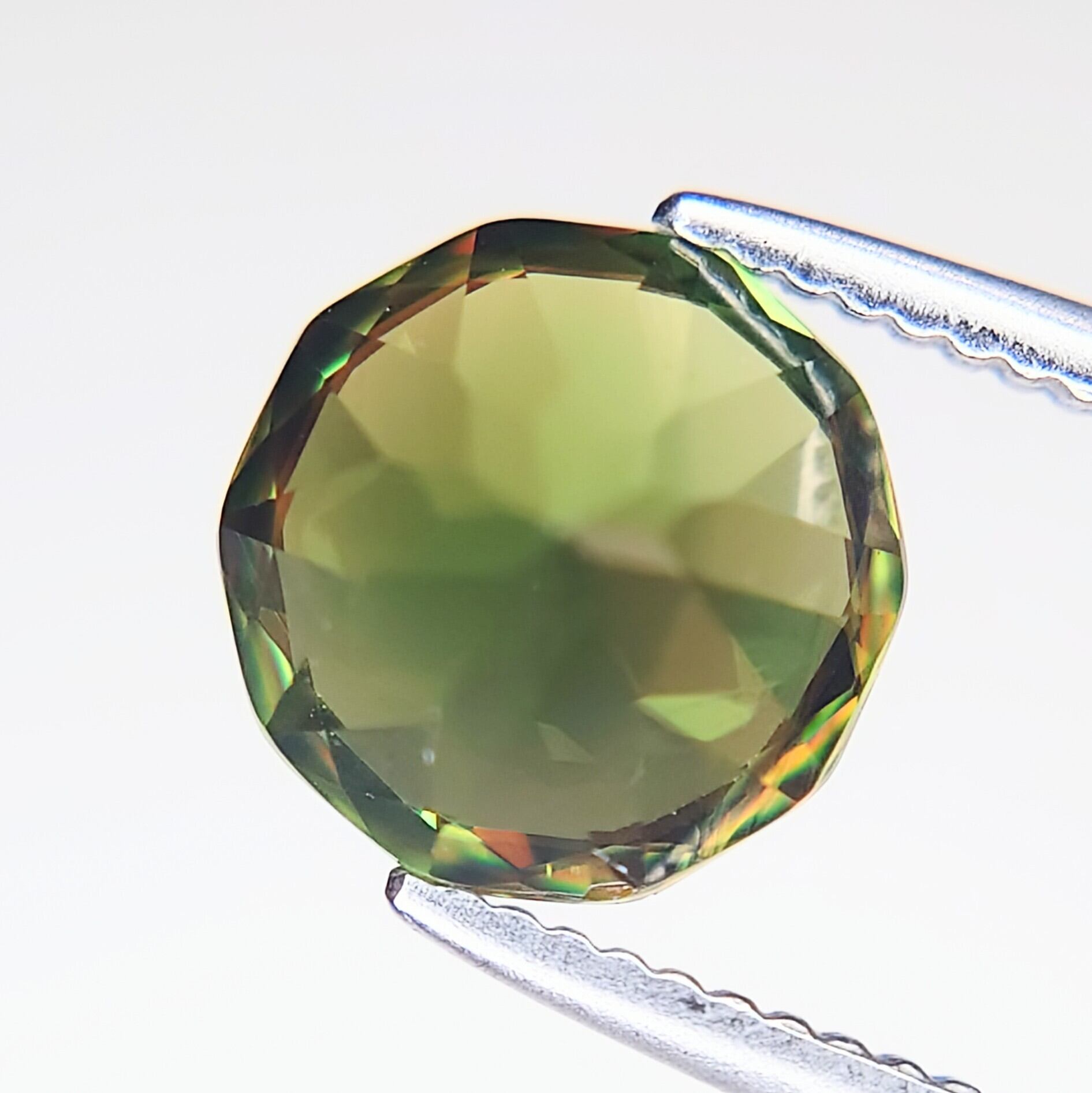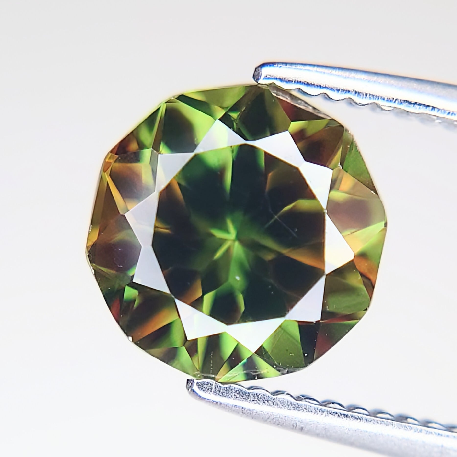 モディファイド ラウンド ブリリアント カットは、スフェーン特有の高い屈折率と分散を最大限に活かし、