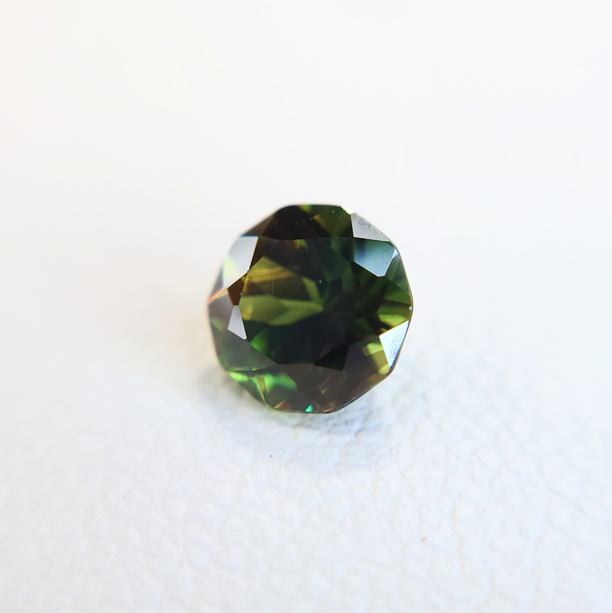 こちらの一石は、グリーン・ゴールド・ブロンズが鮮やかに揺らめき、白熱灯では赤いファイアが輝く、まさに宝石質と言えるハイクオリティです。